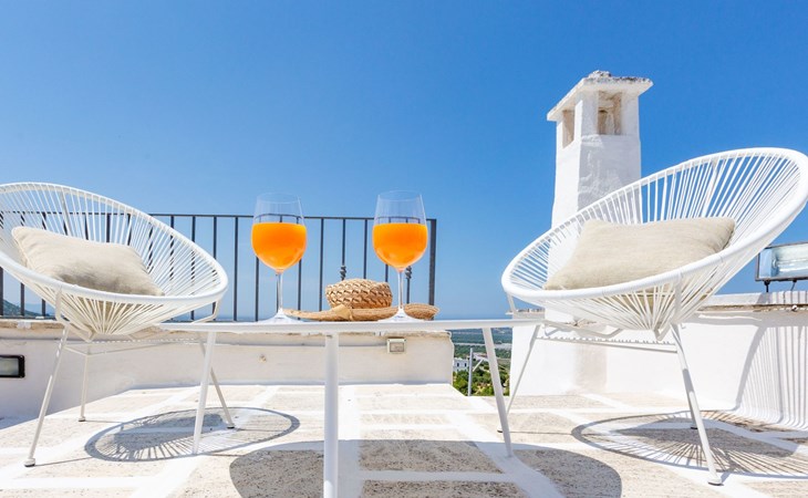 je bent 20 m van een bistro in de witte steegjes met uitzicht op zee;