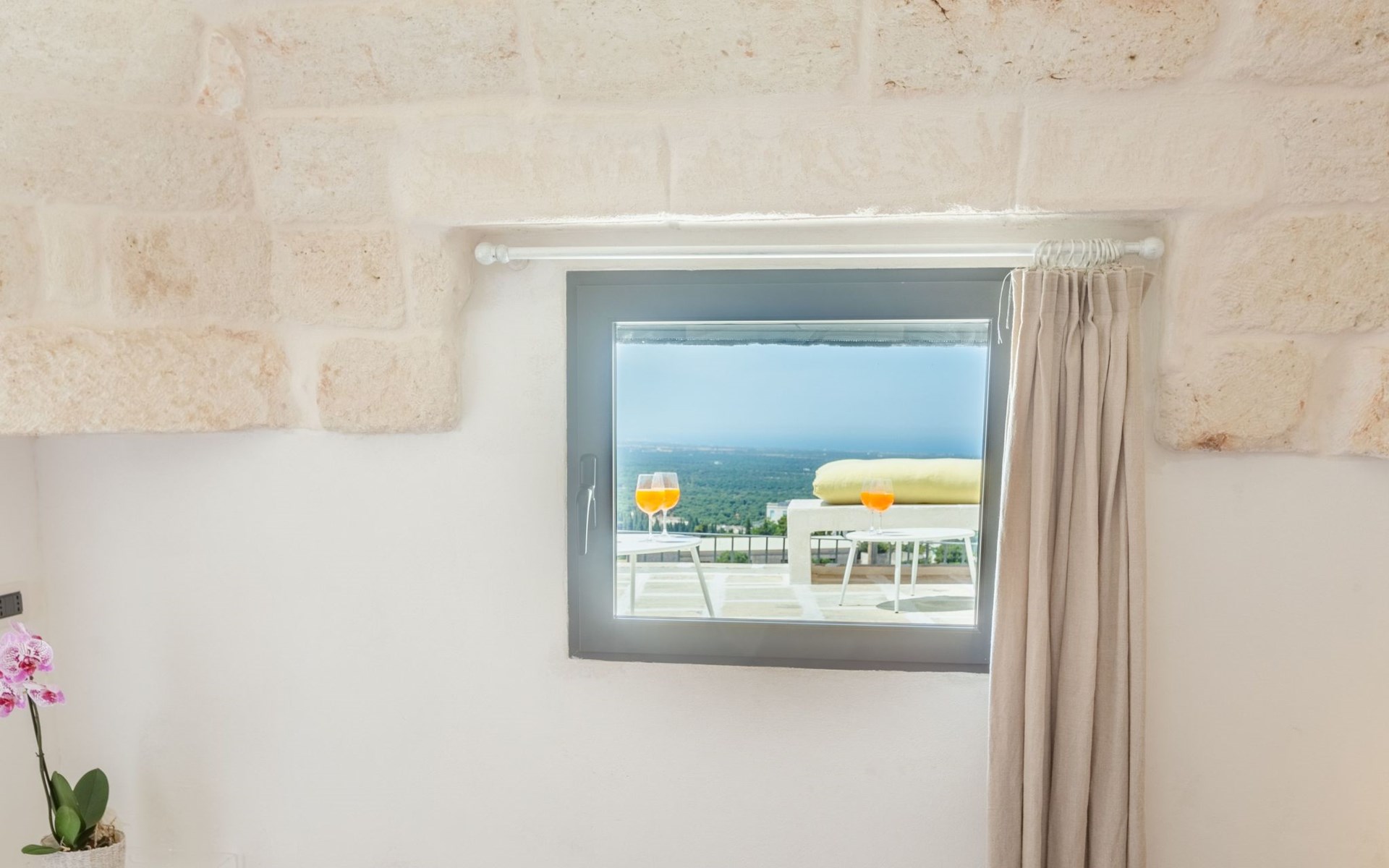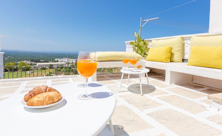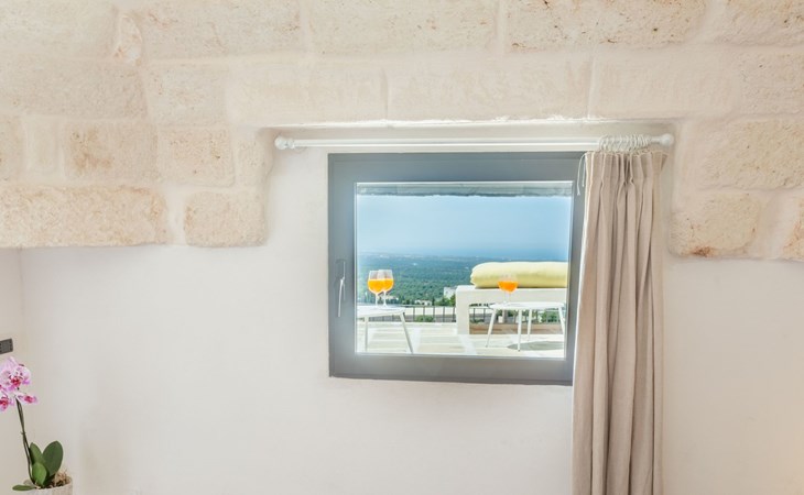 je hebt een privéterras met uitzicht op de Adriatische Zee en de olijfgaard;