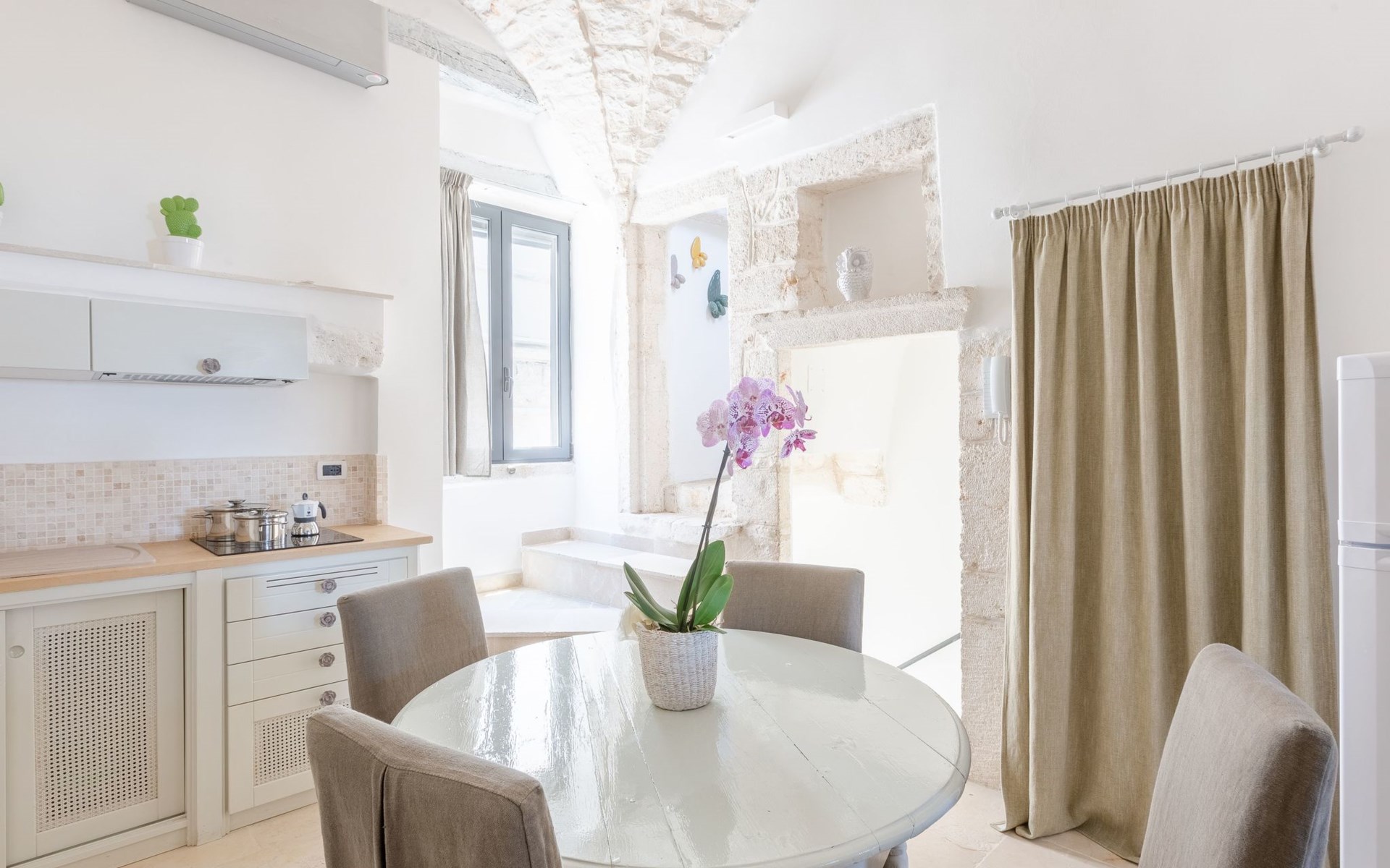 op 200 m afstand bevindt zich een kaasmakerij met de legendarische 'burrate' en een oude bakkerij met elke dag vers brood;