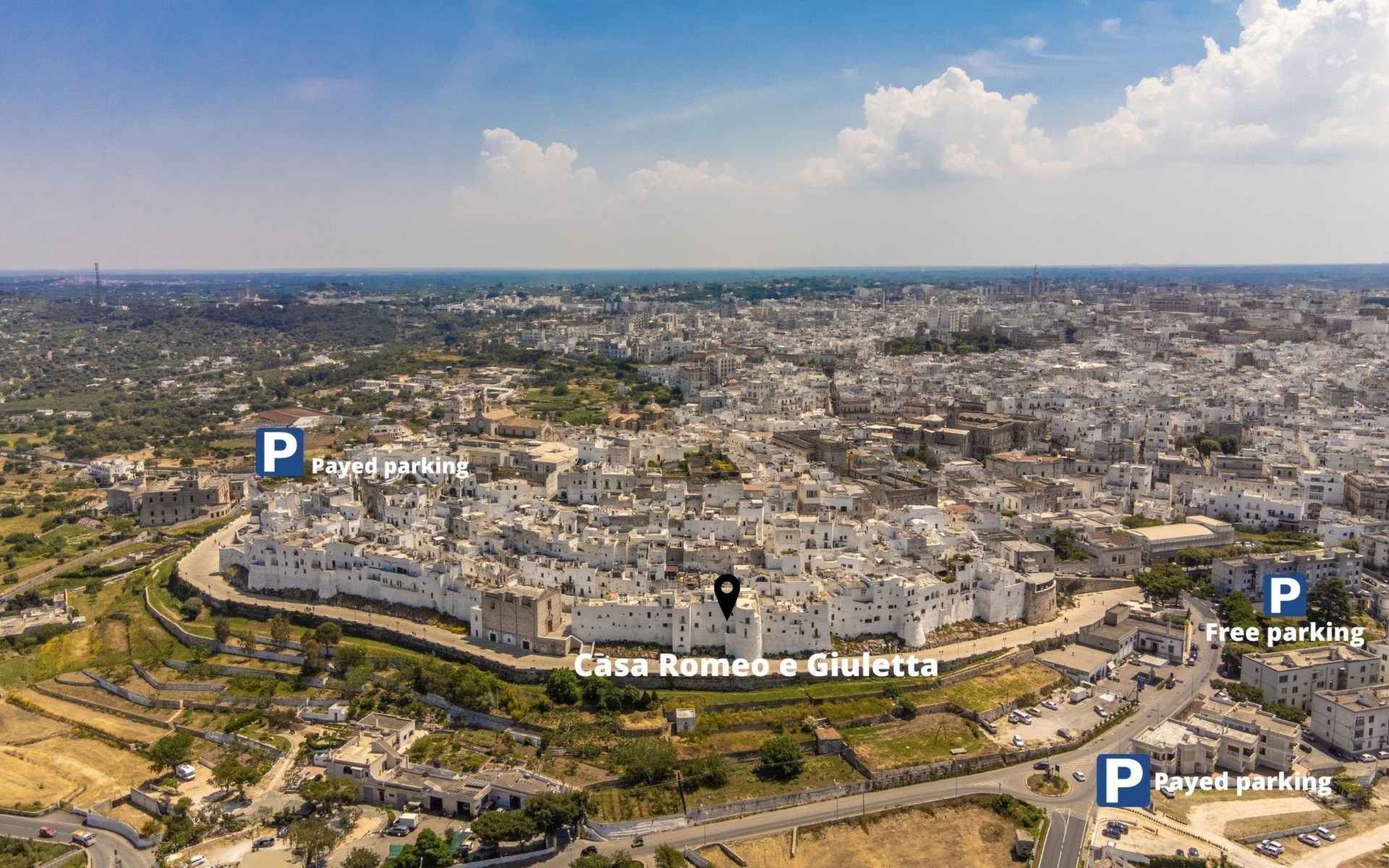 Voor wie tijdens de vakantie graag oude dorpjes en bekende steden in de buurt bezoekt, zijn hier onze aanbevelingen voor de populairste bestemmingen met afstanden (hemelsbreed) vanaf de woning: Ostuni 10 km, Brindisi 19 km, Ceglie Messapica 27 km, Cisternino 37 km, Martina Franca en Locorotondo 38 km, Fasano safari dierentuin 38 km, Lecce 57 km, Alberobello 47 km, Monopoli 48 km, Polignano a Mare 57 km.