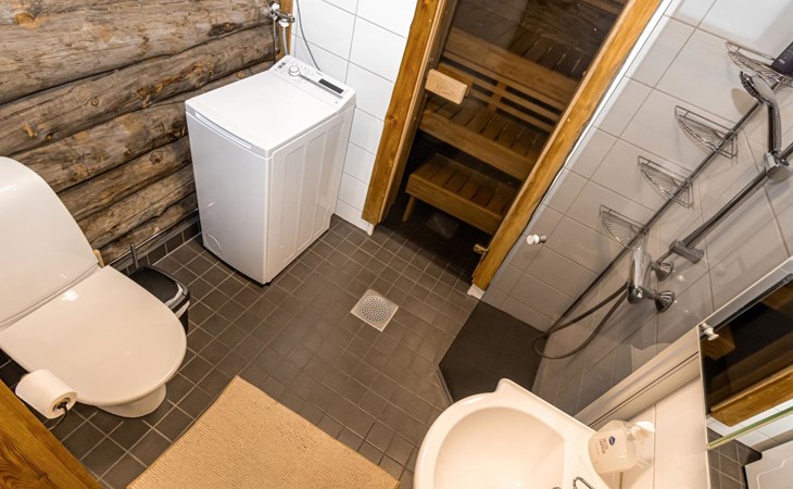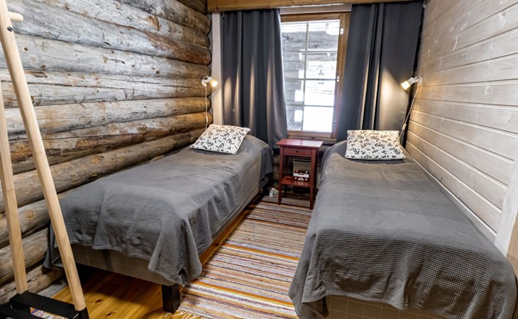 Kelo log-built three-apartment house, built in 1990, renovated later. Living room/kitchen, double bed in the bedroom, 2 single beds in another bedroom, 3 beds in the loft, the loft is low and there are steep stairs leading to it, sauna, washroom/WC, covered terrace and storage room (firewood shelter).