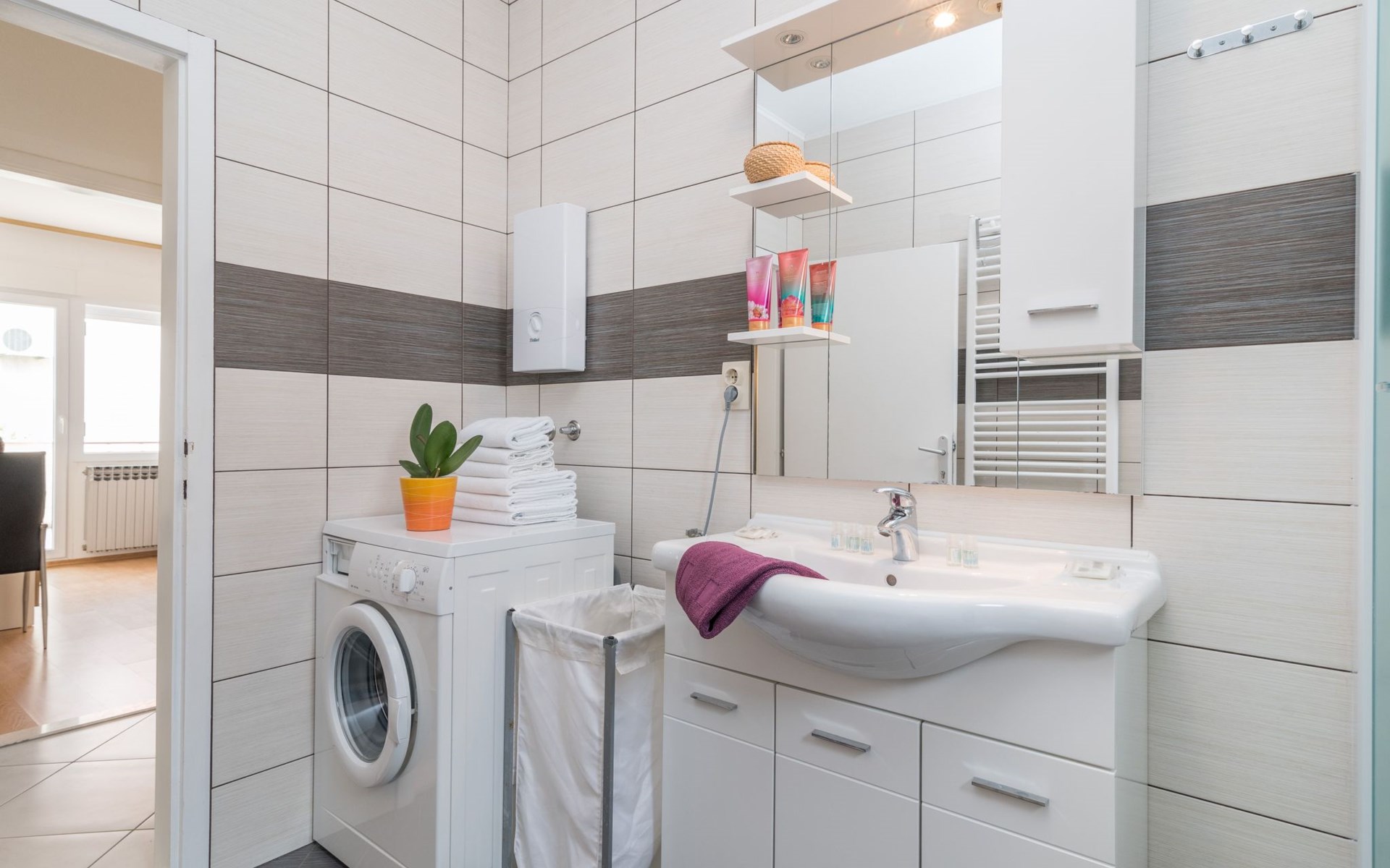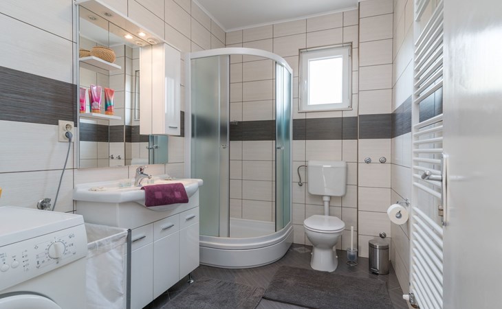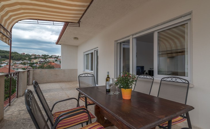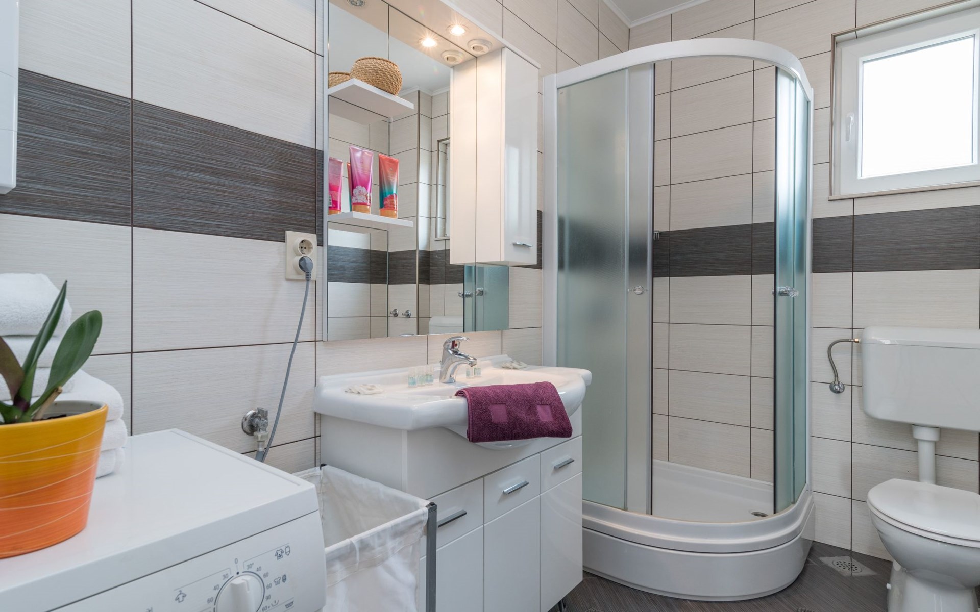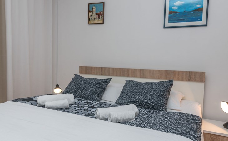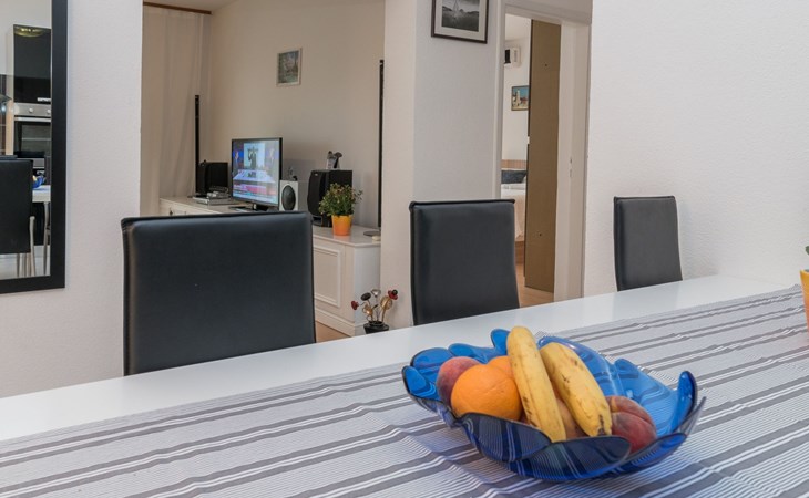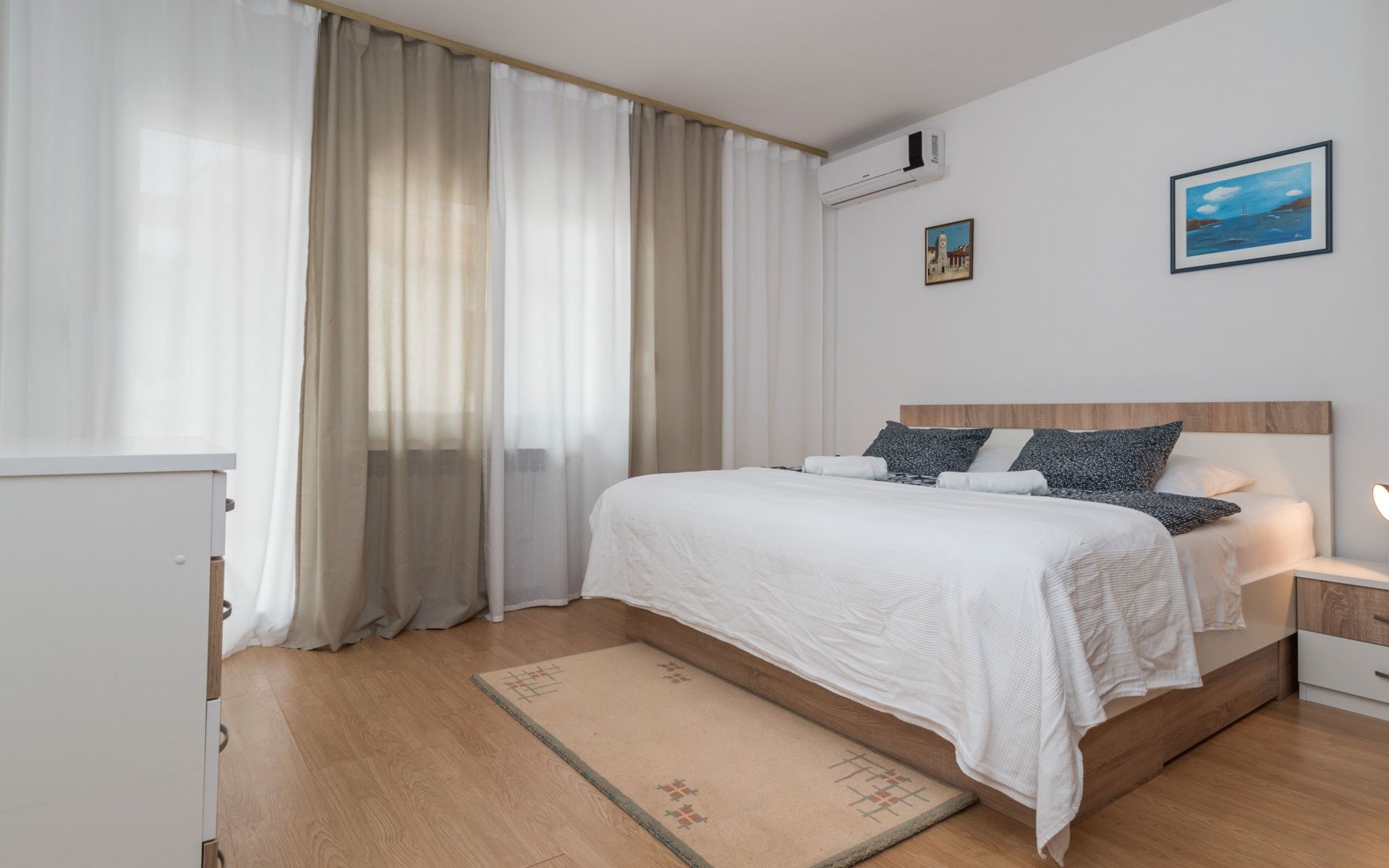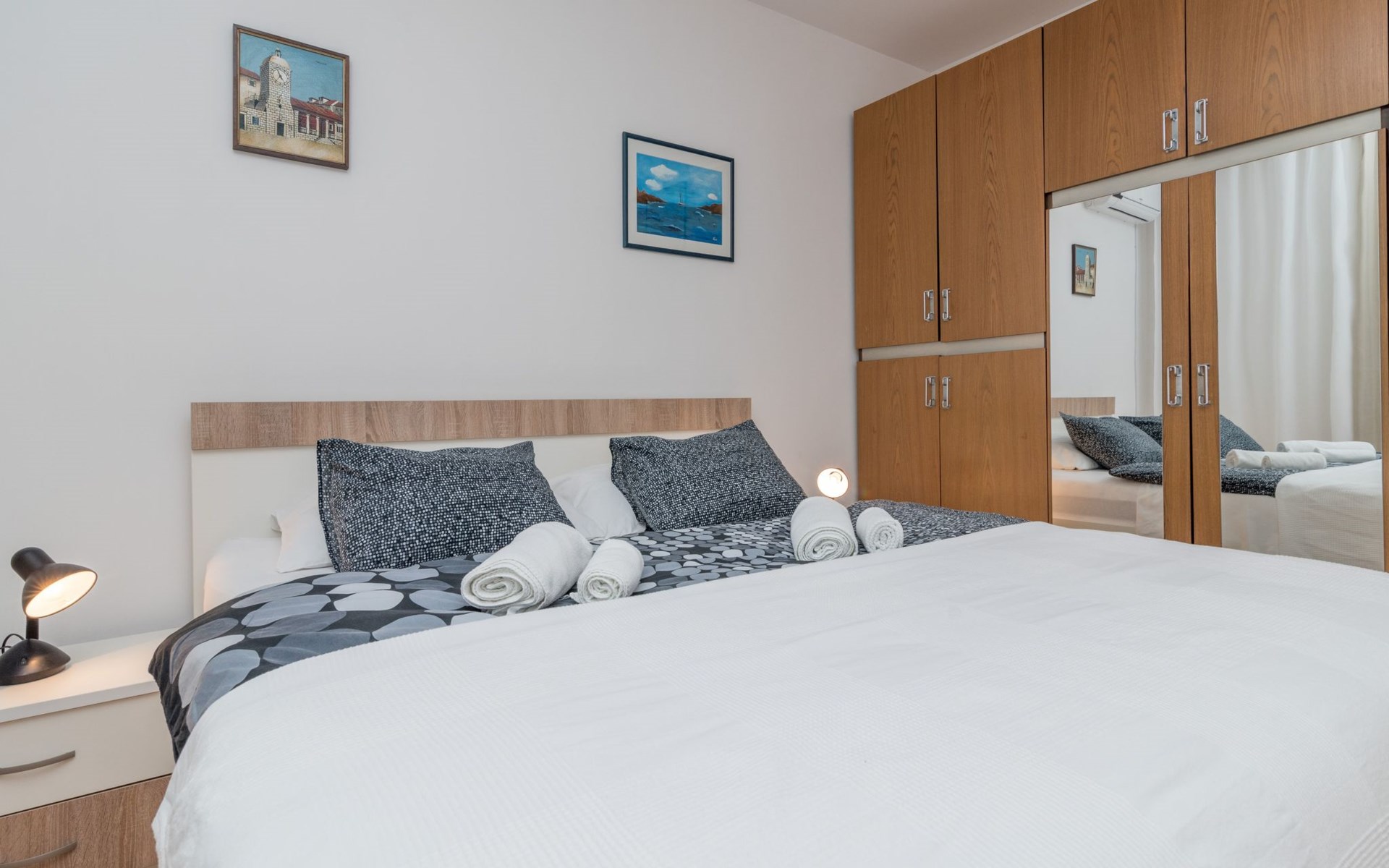 Bed linen, pillows, towels and toiletries are included in the price. Travel beds for babies and high chairs are available free of charge. There is a fully equipped shared laundry room on the ground floor of the building and its use is also free of charge. The building is completely covered with free wireless Internet.The main beach is 2 min walking distance from the property. Over there you can find many shops, restaurants, ATM's, car and bike rental services, water sports, etc. The beach is accessible via a ramp so that, e.g. prams and handcarts can be taken along. The town centre is approximately 2 km away and can be also reached by walking (20 minutes). There is also a taxi boat that stops just 70 meters away from the property that will take you to Trogir centre. Split is 30 km away. The nearest airport is Split Airport, 8 km from the property.The owners live in the house next door, and they are always available if you need any help. A security deposit is not required, but guests are asked to treat the apartment as their own home. City tax is included in the price.