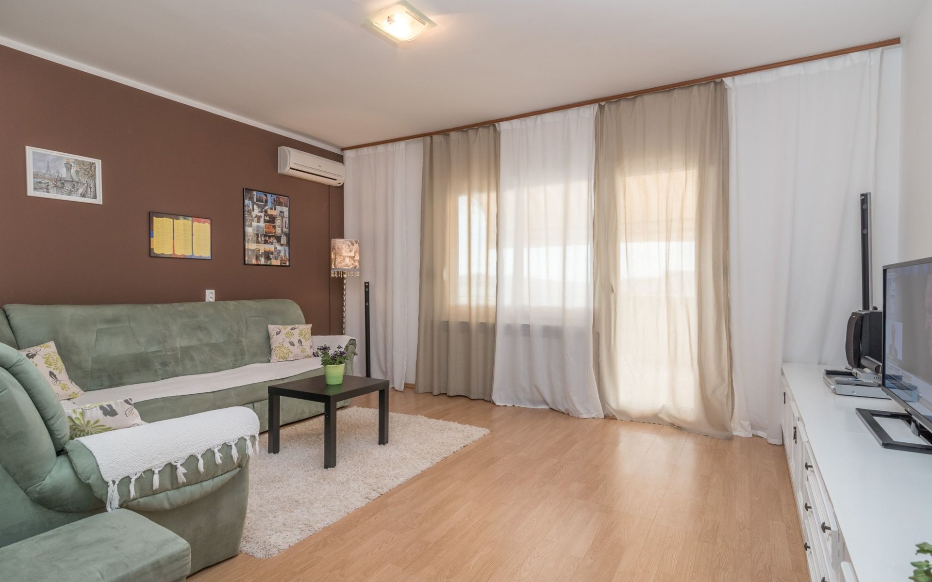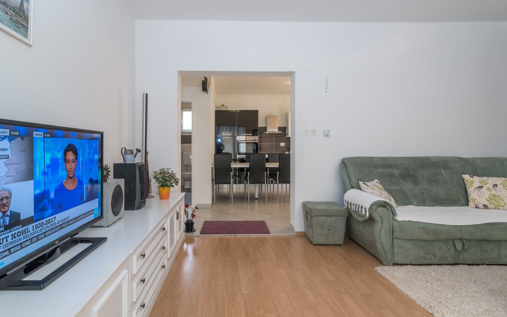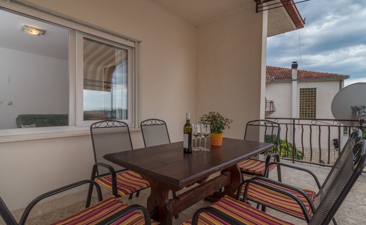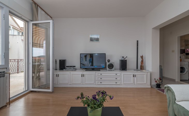 This holiday apartment is located in the Dalmatian coastal town of Okrug Gornji, only approximately a two-minute walk from the beach, shops, restaurants, a bakery, etc.The apartment has a private balcony. Downstairs in the garden, the shared terrace with garden furniture and sunshade, grill/barbecue is fully equipped. There is a gated parking lot on the property for more than 10 cars. Remotes are provided to open/close the gate.The, 78 m² air-conditioned apartment is in a three-storey apartment building that hosts another four holiday apartments.