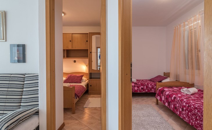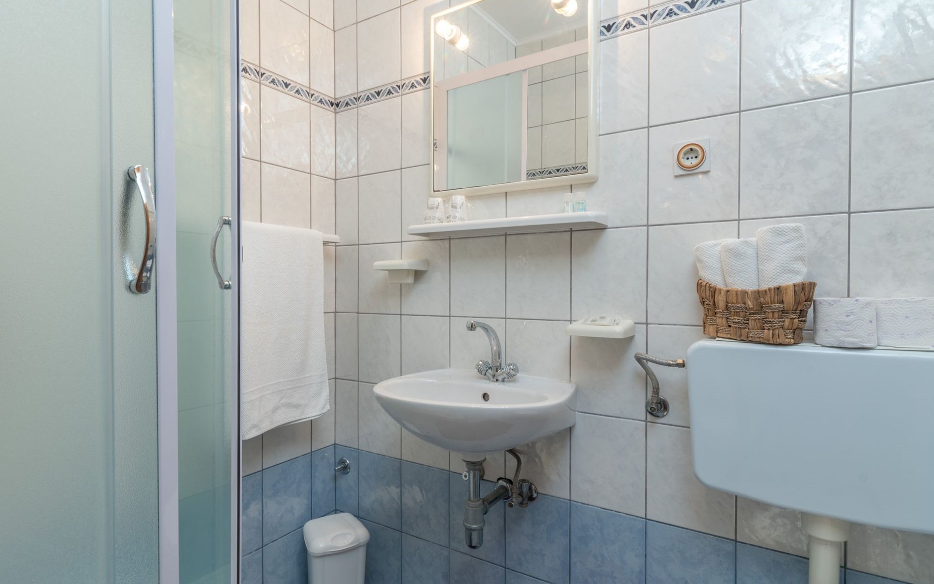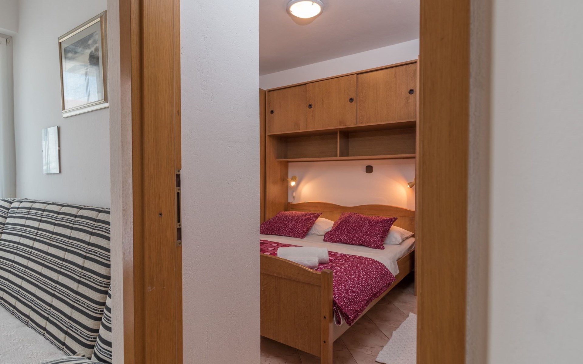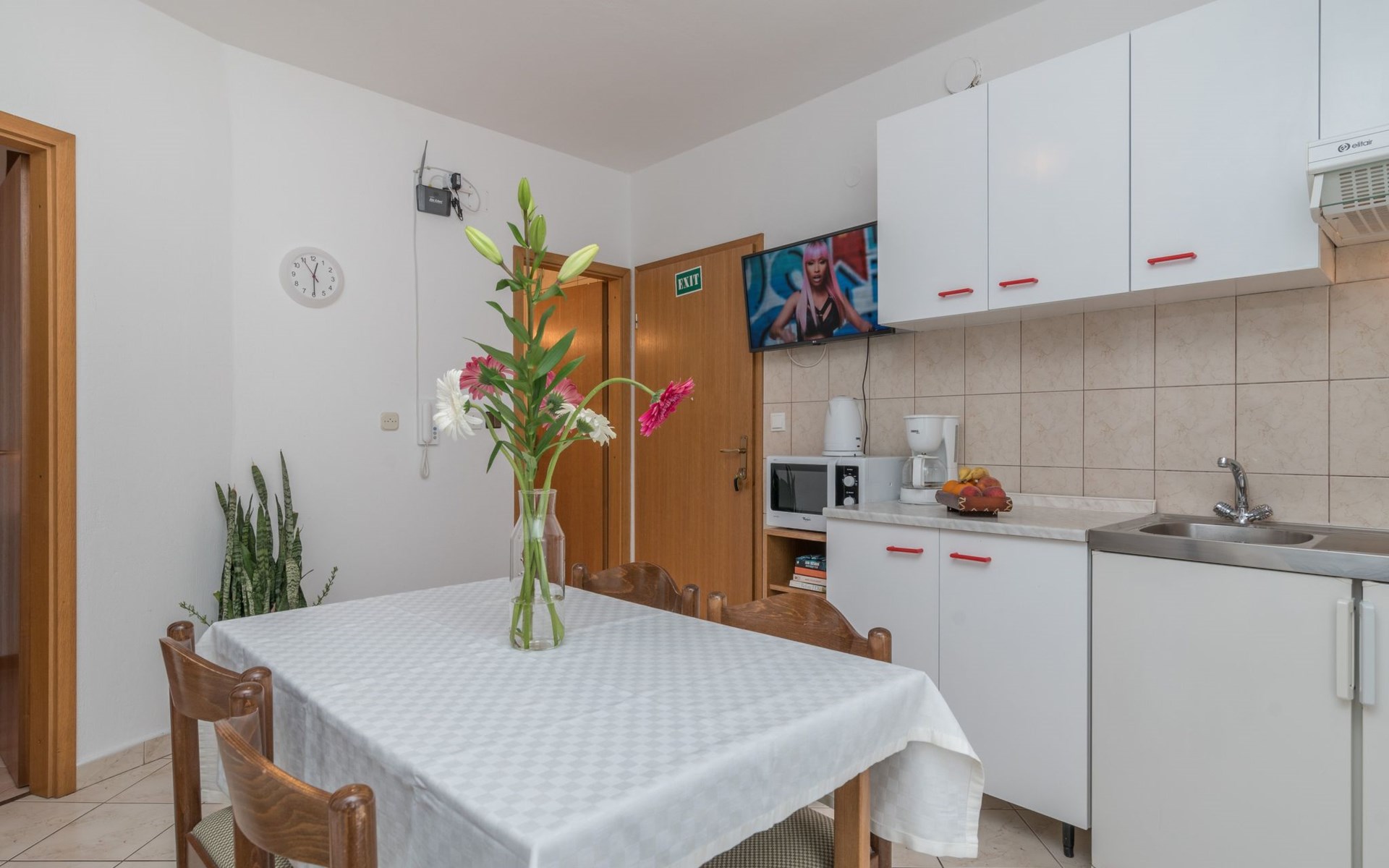 Het belangrijkste strand ligt op 2 minuten lopen van het pand. Daar vind je veel winkels, restaurants, geldautomaten, auto- en fietsverhuur, watersporten, enz. Het strand is toegankelijk via een helling, zodat bijvoorbeeld kinderwagens en handkarren kunnen worden meegenomen. Het stadscentrum ligt op ongeveer 2 km afstand en kan ook te voet worden bereikt (20 minuten). Er is ook een taxiboot die op slechts 70 meter van het pand stopt en die je naar het centrum van Trogir brengt. Split ligt op 30 km afstand. De dichtstbijzijnde luchthaven is de luchthaven Split, op 8 km van het pand.