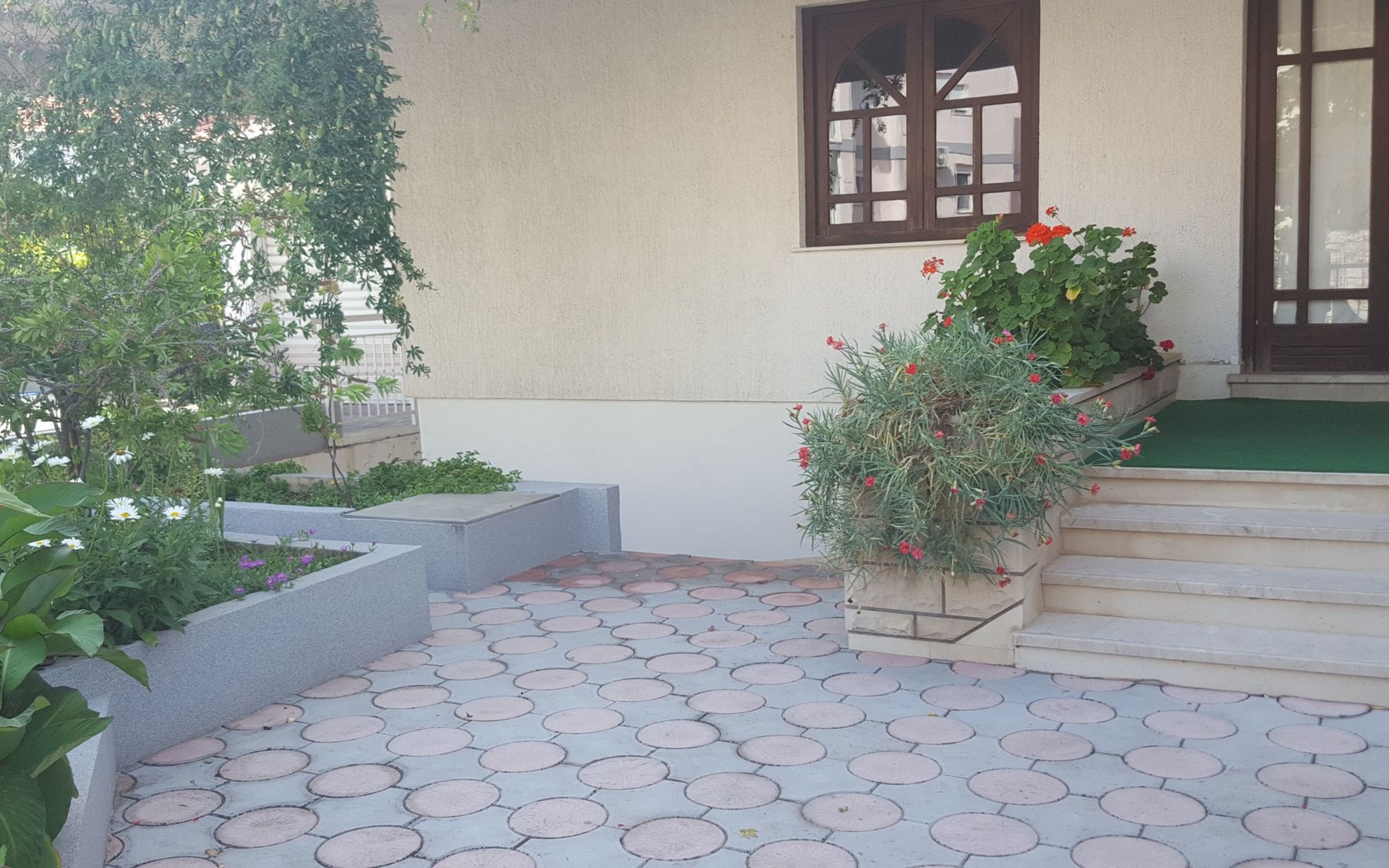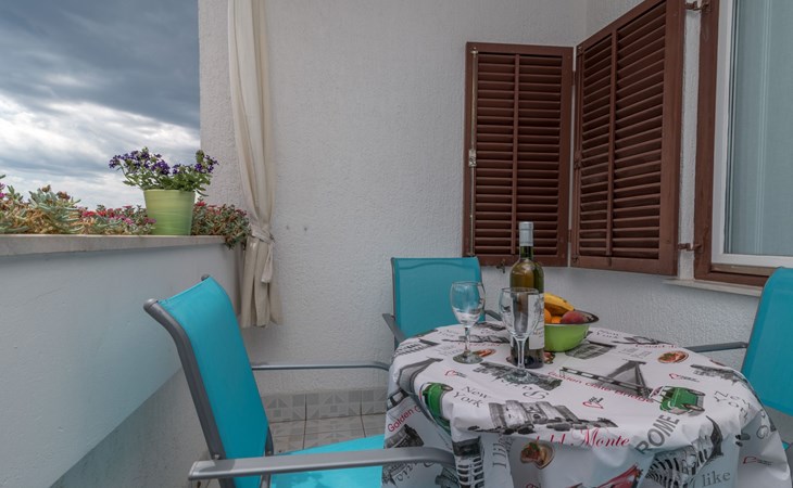 Het appartement heeft een eigen balkon. Beneden in de tuin is het gedeelde terras met tuinmeubilair en parasol, grill/barbecue van alle gemakken voorzien. Er is een afgesloten parkeerplaats op het terrein voor meer dan 10 auto's. Er zijn afstandsbedieningen om het hek te openen/sluiten.