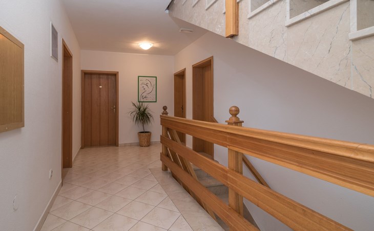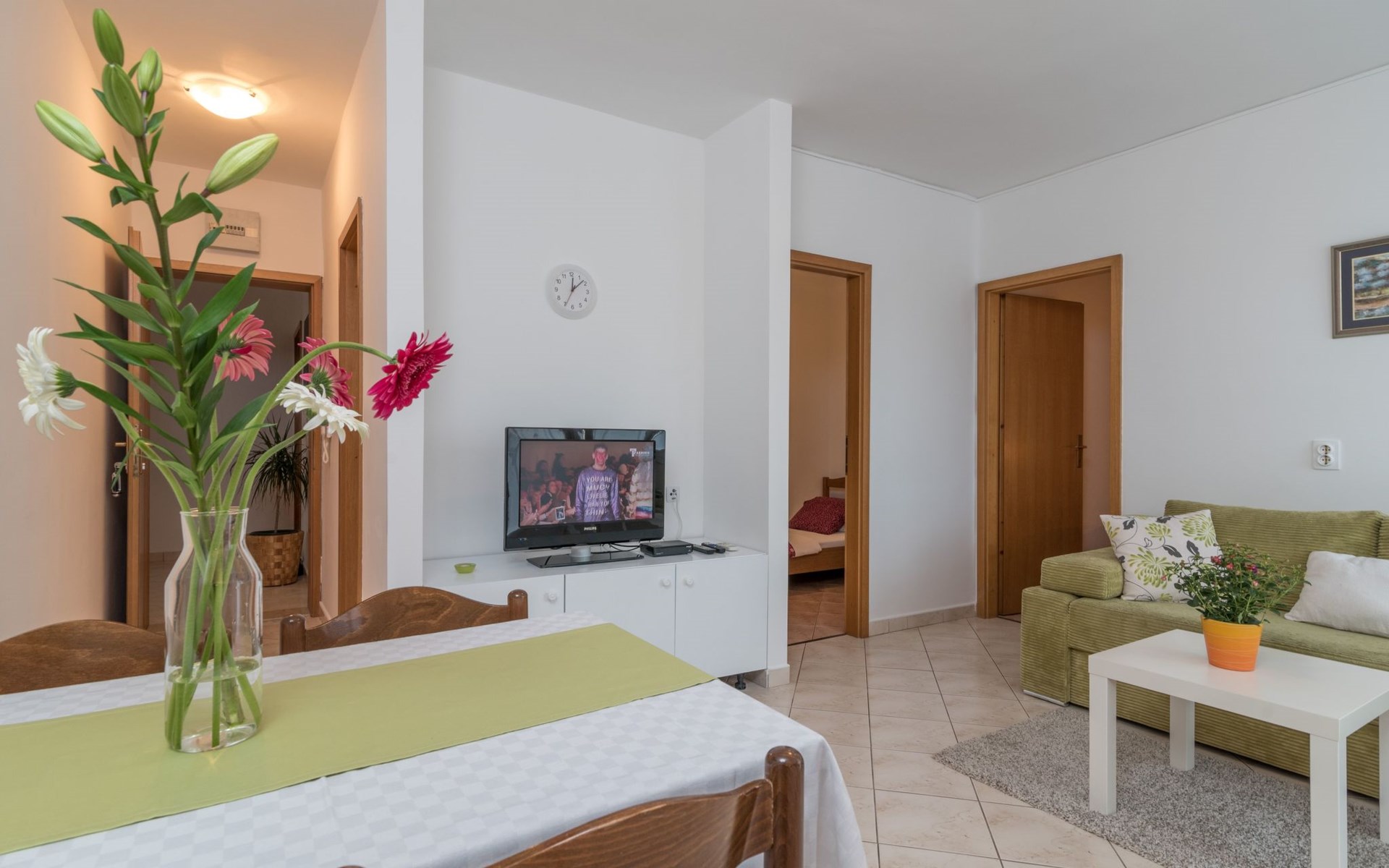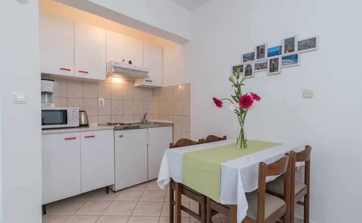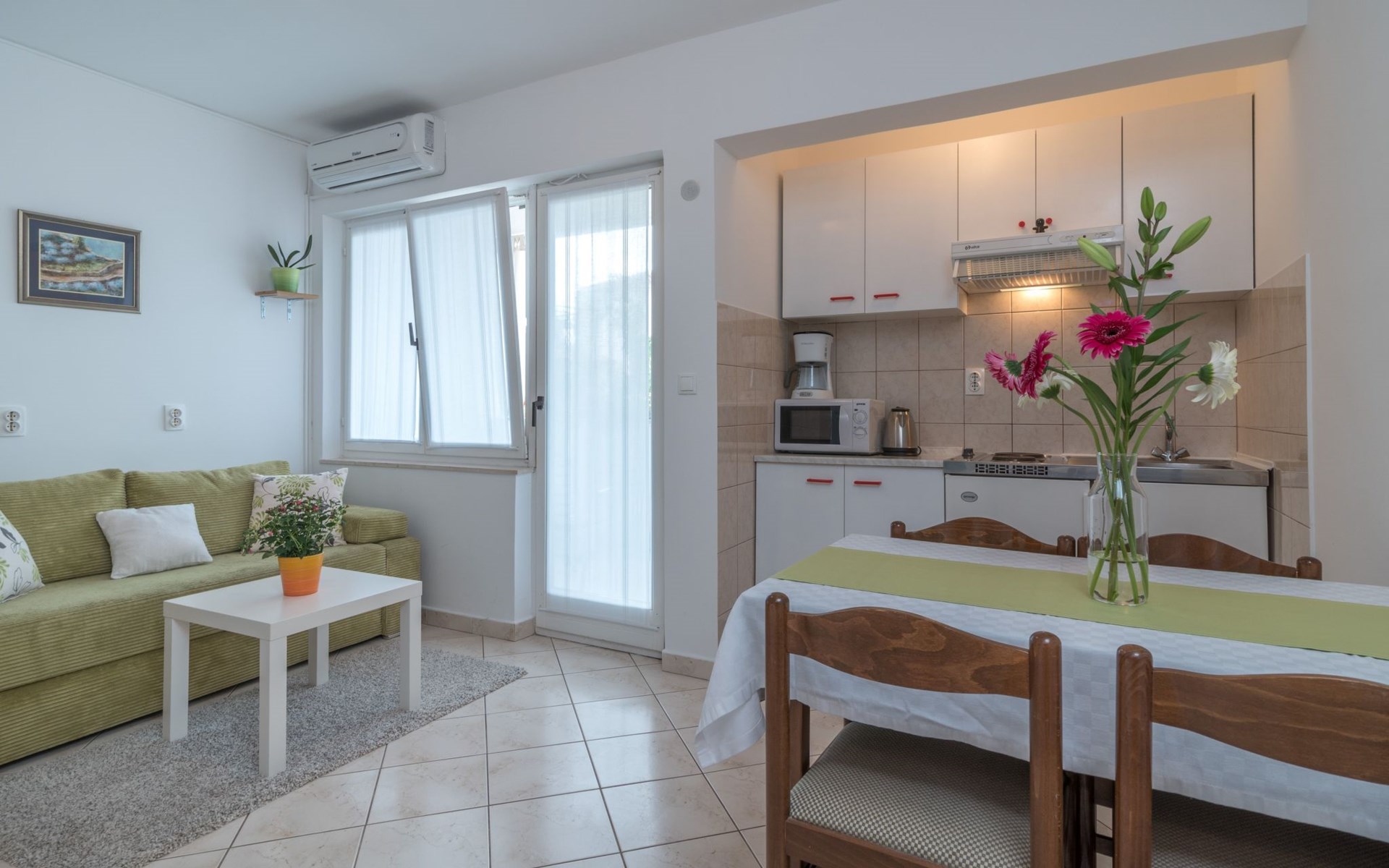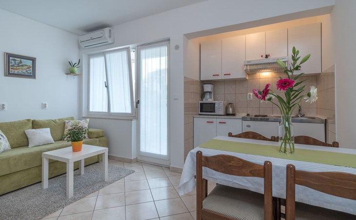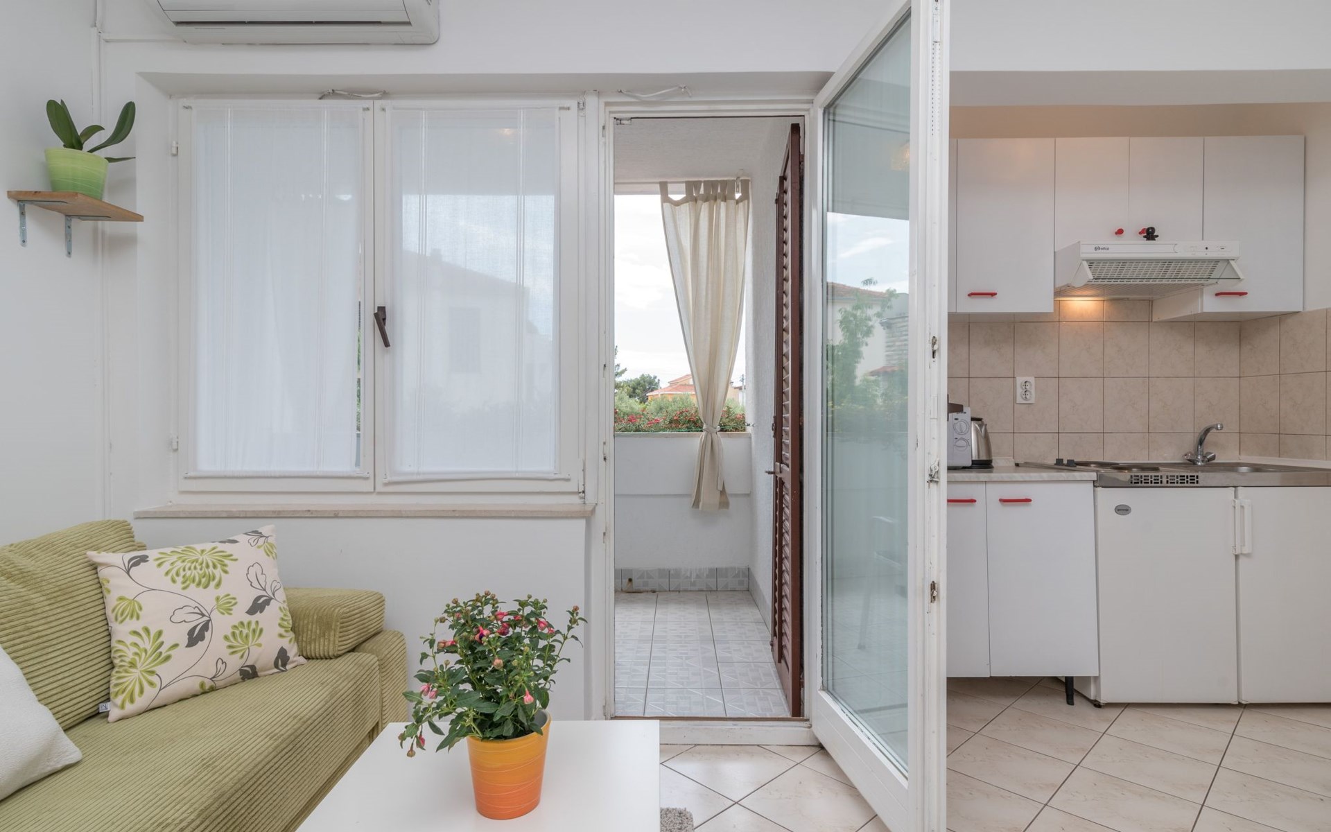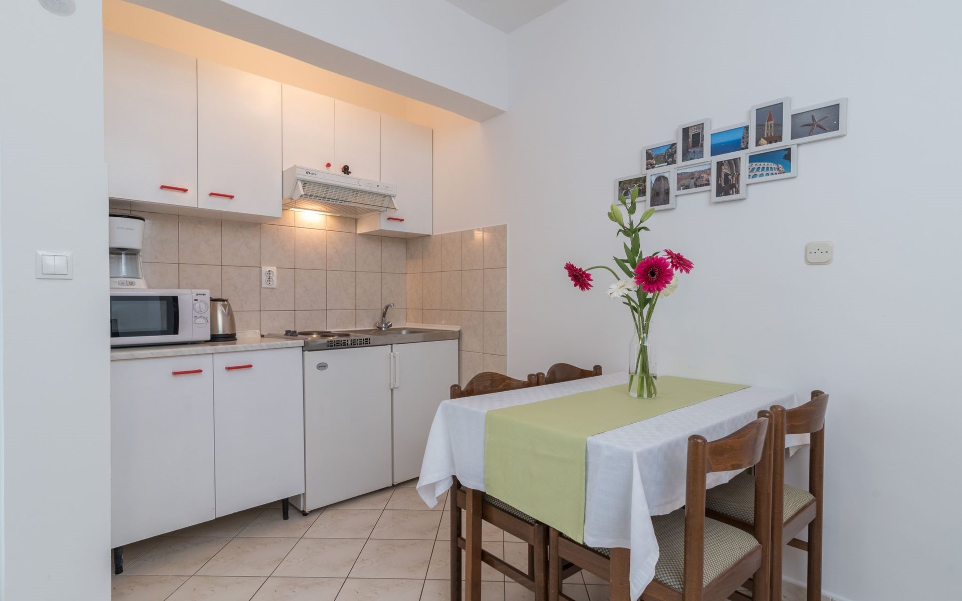 Het belangrijkste strand ligt op 2 minuten loopafstand van het pand. Daar vind je veel winkels, restaurants, geldautomaten, auto- en fietsverhuur, watersporten, enz. Het strand is toegankelijk via een helling, zodat bijvoorbeeld kinderwagens en handkarren kunnen worden meegenomen. Het stadscentrum ligt op ongeveer 2 km afstand en kan ook te voet worden bereikt (20 minuten). Er is ook een taxiboot die op slechts 70 meter van het pand stopt en die je naar het centrum van Trogir brengt. Split ligt op 30 km afstand. De dichtstbijzijnde luchthaven is de luchthaven Split, op 8 km van het pand.