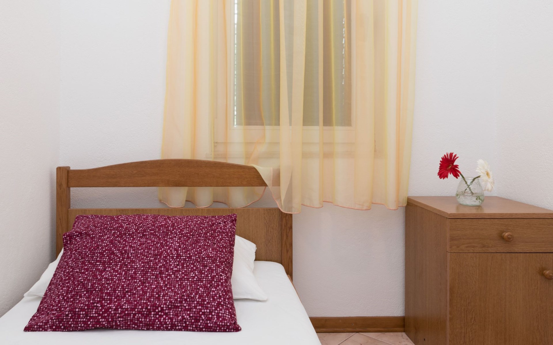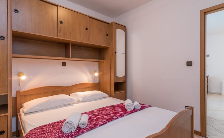 Dit appartement van 35 m² met airconditioning ligt in een appartementengebouw van drie verdiepingen met nog vier andere vakantieappartementen. Het beschikt over een zithoek met flatscreentelevisie, een keuken, slaapkamer met tweepersoonsbed, slaapkamer met eenpersoonsbed, badkamer met douche en een balkon met uitzicht op zee of op de tuin. We kunnen geen appartement met zeezicht garanderen, dit is afhankelijk van de beschikbaarheid. De slaapbank in de woonkamer is geschikt voor 1 kind. Keuken is volledig uitgerust: koelkast met vriesvak, kitchenette, fornuis, magnetron, waterkoker, filterkoffiezetapparaat, enz.