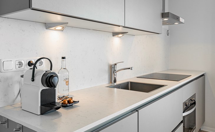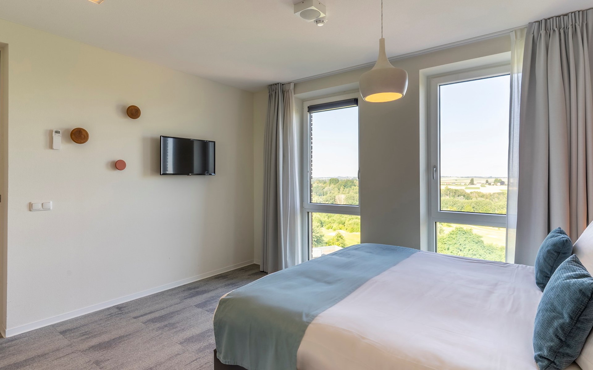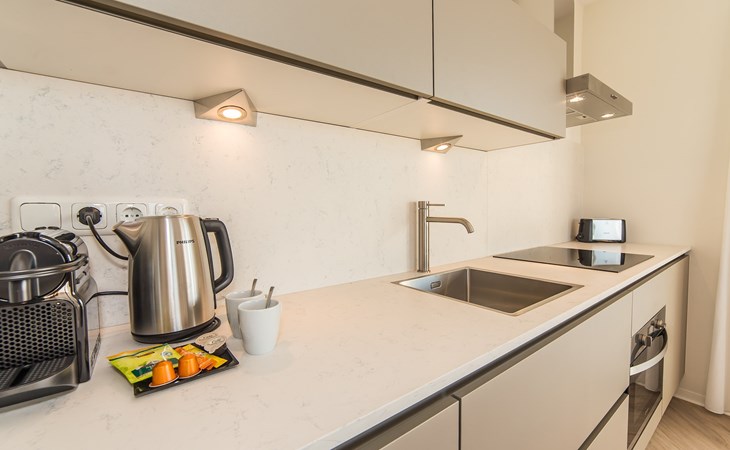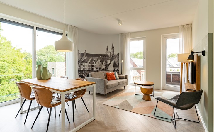 Verblijf in deze comfortabele 2-kamersuite voor 2 personen dichtbij het centrum van Maastricht. De hotelsuite heeft een royale woonkamer met televisie en een zit- en eethoek, 1 slaapkamer en 1 badkamer. De open keuken is voorzien van luxe keukenapparatuur, waaronder een vaatwasser en combi-oven. Vanuit de woonkamer heb je toegang tot een ruim, gemeubileerd balkon.