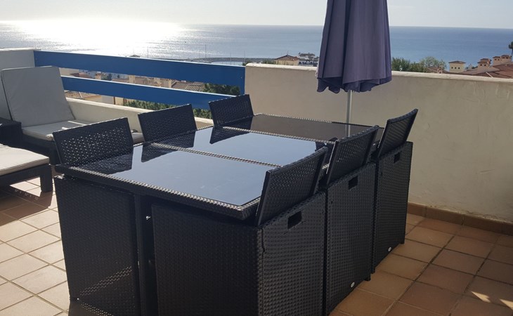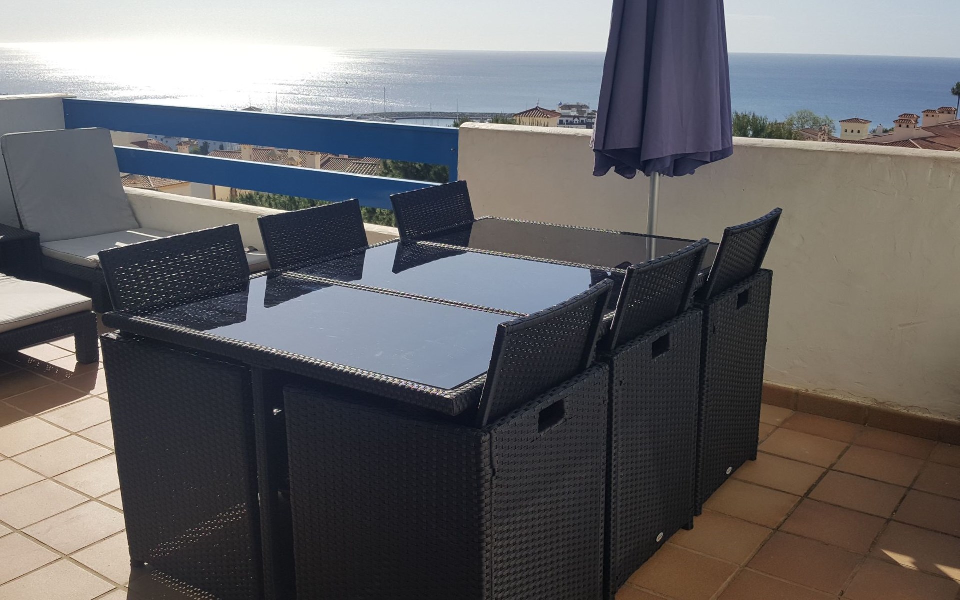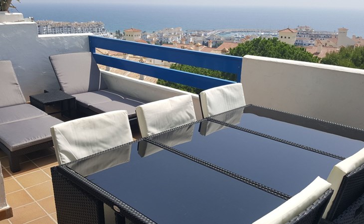 Superb 5-person flat with magnificent sea views in a fully fenced and secure estate, access to which is scrupulously controlled by a 24-hour security guard. In the heart of the Golf de la Duquesa, the property boasts vast and sumptuous gardens covering 20.000m2, ponds, three swimming pools (freshwater, 2 OF WHICH ARE EQUIPPED WITH HYDRAULIC SEAT FOR DISABLED PERSONS AND WHEELCHAIR ACCESS) with sun loungers and showers, with lifeguards on duty (in high season), a paddle court, a mini-soccer pitch, a petanque pitch, a barbecue area and a playground for children Apartment: 98m2, Hall, Living room - dining room - kitchen - laundry room - night hall - two full bathrooms (1 en suite with whirlpool bath, 1 with shower) - 20m2 terrace - garageCOMPLEX COMPLETELY RENOVATED IN 2023The 98 m2 flat has two bedrooms, two bathrooms, a large 20 m2 terrace and all the comforts of home: One double bedroom with built-in wardrobes and a full en suite bathroom with hydro-massage bath and hairdryer One bedroom with 1 single bed (90 cm) and 2 bunk beds (90 cm) with built-in wardrobes A second full bathroom with shower cubicle Living-dining room with LCD TV (films can be played via HDMI or USB), bluray player, multimedia hard drive with numerous films in French and English and radio/CD/MP3 handset (USB socket and memory card reader), battery charger. NEW: 50" SKY/SATELLITE TV, NUMEROUS CHANNELS AND FILMS (GB, F, D, NL, B, E, I, USA, UK ....) in living room and master bedroom. Fully-equipped kitchen (ceramic hob, fridge with freezer, microwave, Senseo coffee machine, dishwasher), laundry room with washing machine Furnished terrace (6-person table, chairs, 2 armchairs and 2 sun loungers) Central air conditioning (hot/cold) throughout the flat Safe Garage Remote control for all automated access to the estate and garageExtensive tropical gardens 20,000m2, ponds, 3 swimming pools, children's games, tennis, mini football, barbecue area, pétanque, table tennis FREE... 24-hour securityThis 2-bedroom flat has the best sea and harbour views in the whole complex from its private 20m2 terrace. ESFCTU0000290400002306130000000000000000VUT/MA/11