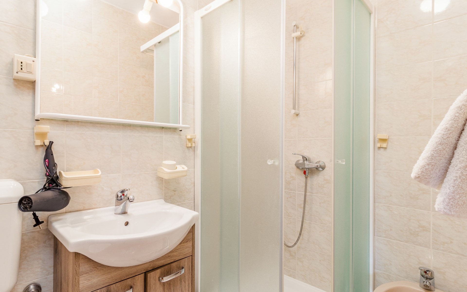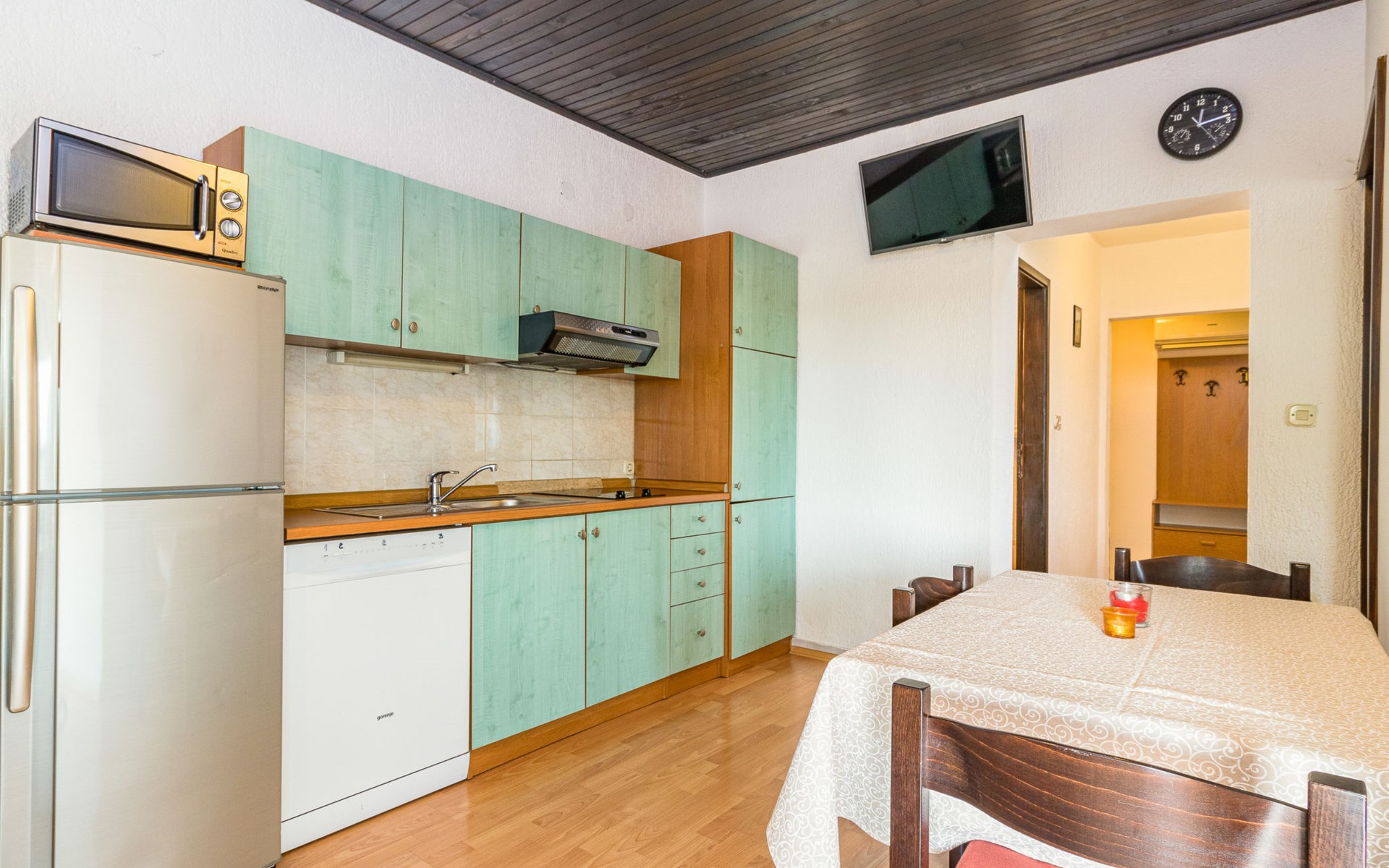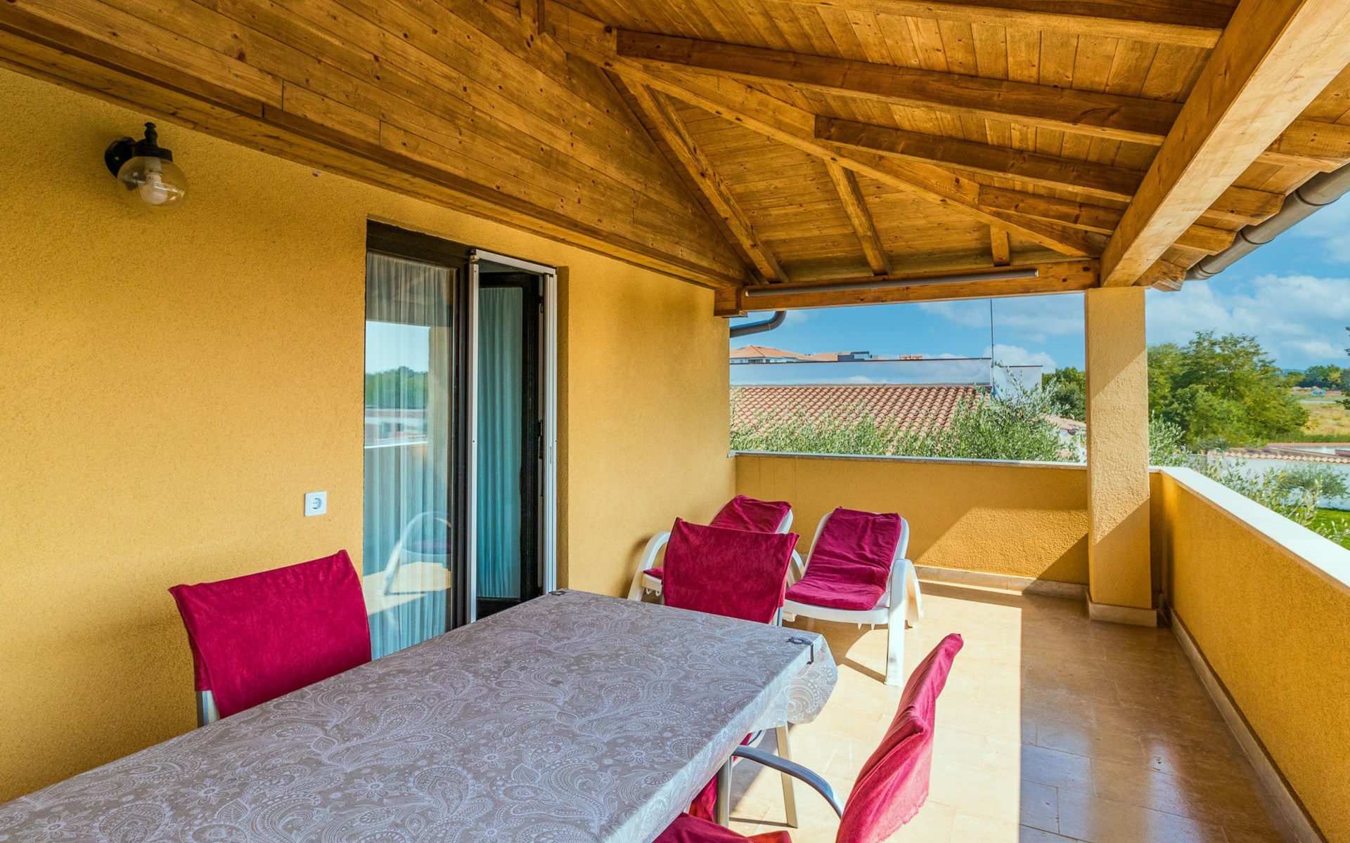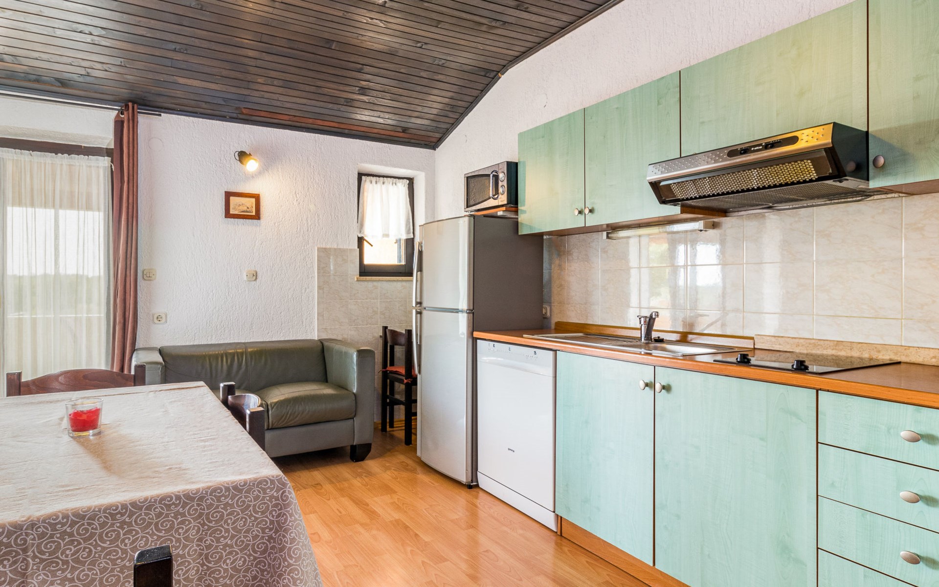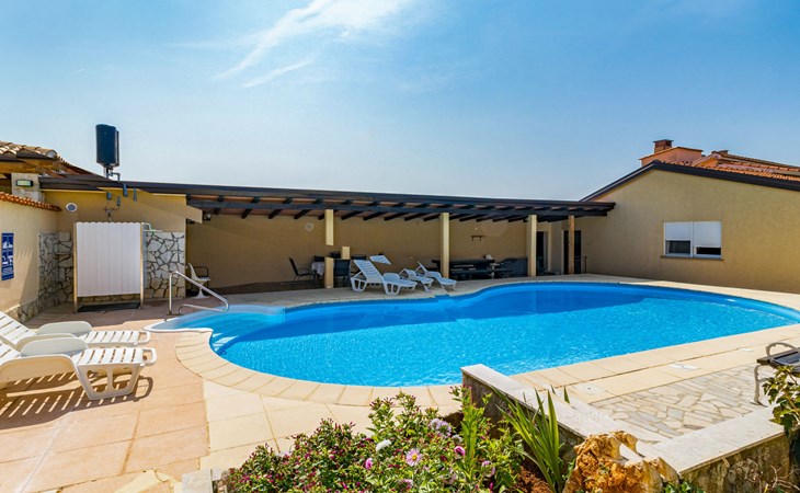 Žbandaj: Huis met 3 woningen "Dika". 300 m van het centrum van Žbandaj, 8 km van het centrum van Poreč, 8 km van zee. Voor medegebruik: terrein 1.000 m2 (omheind) met planten en bomen, openluchtzwembad (12 x 6 m, 100 - 160 cm diepte, seizoensgebonden beschikbaarheid: 01.Jun. - 30.Sep.) met trap. Buitendouche, tuinmeubelen, barbecue, onderhoud zwembad door de eigenaar/tuinman. In het huis: wasmachine (voor medegebruik, extra). Parkeerplaats bij het huis op het terrein. Winkel 300 m, supermarkt 1 km, restaurant 200 m, bushalte 8 km, treinstation 24 km, kiezelstrand 8 km.