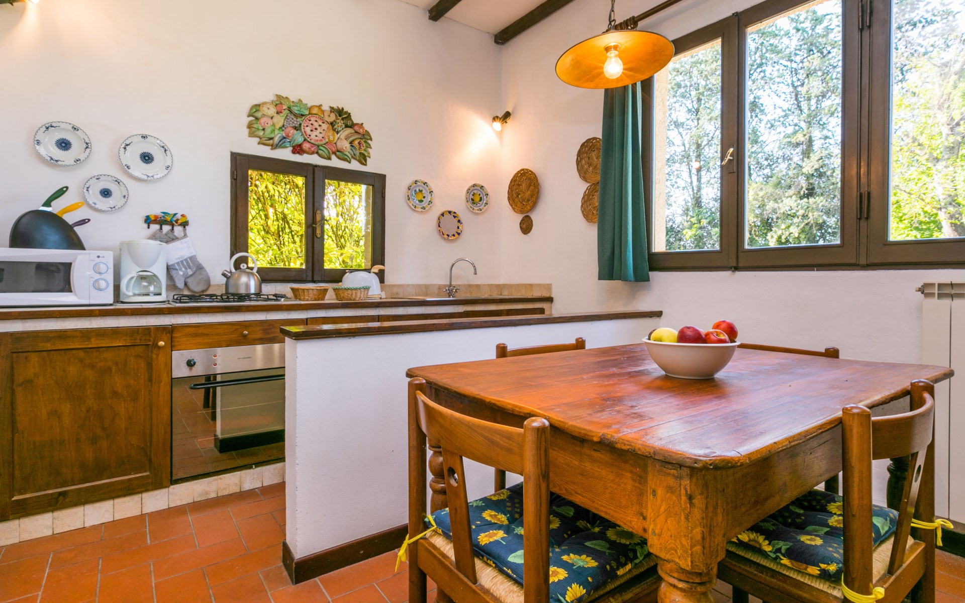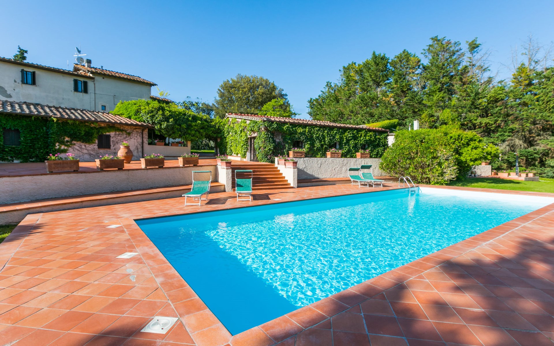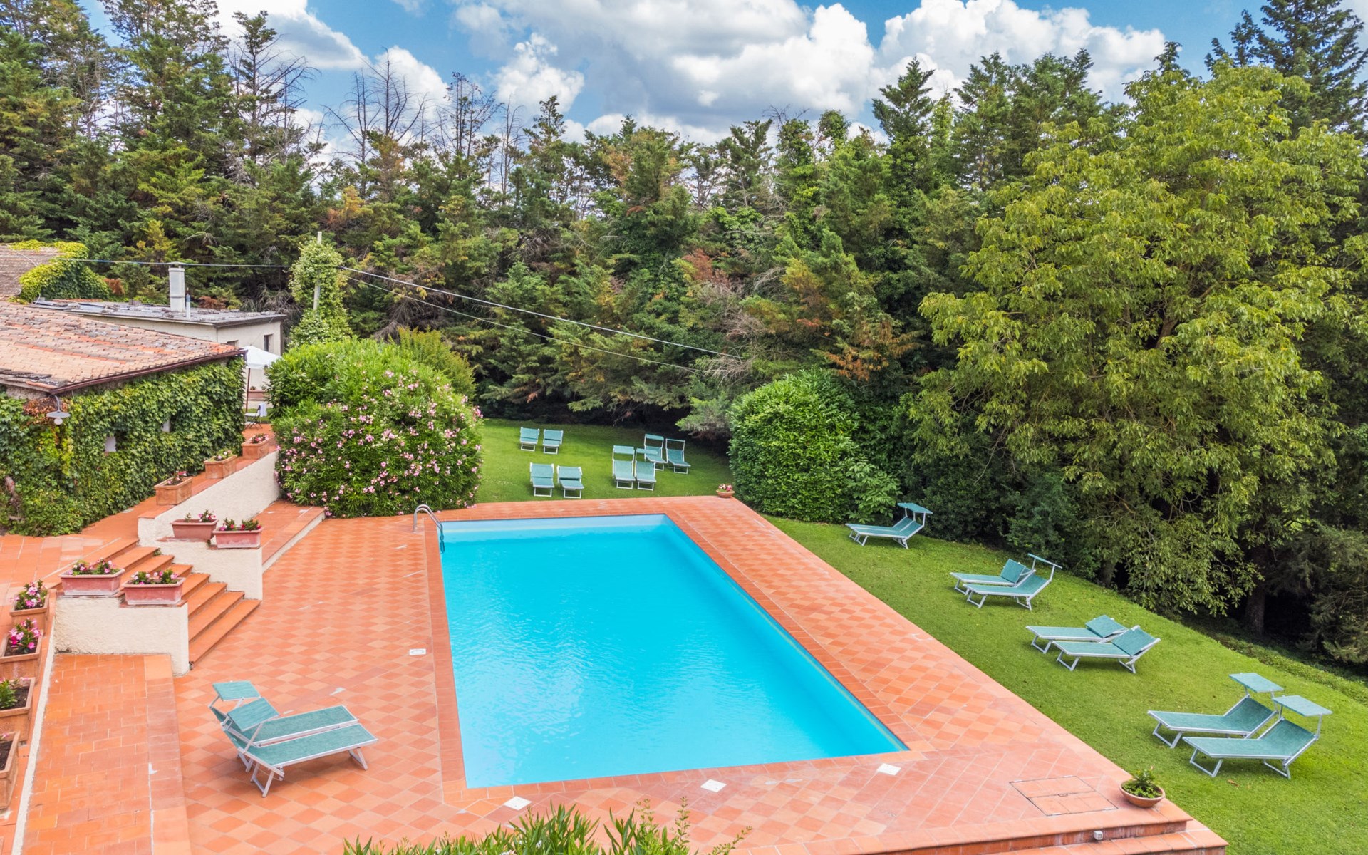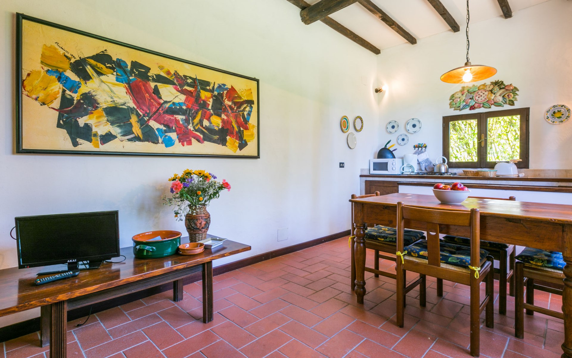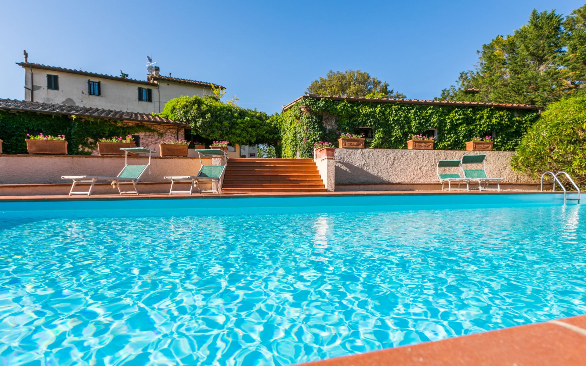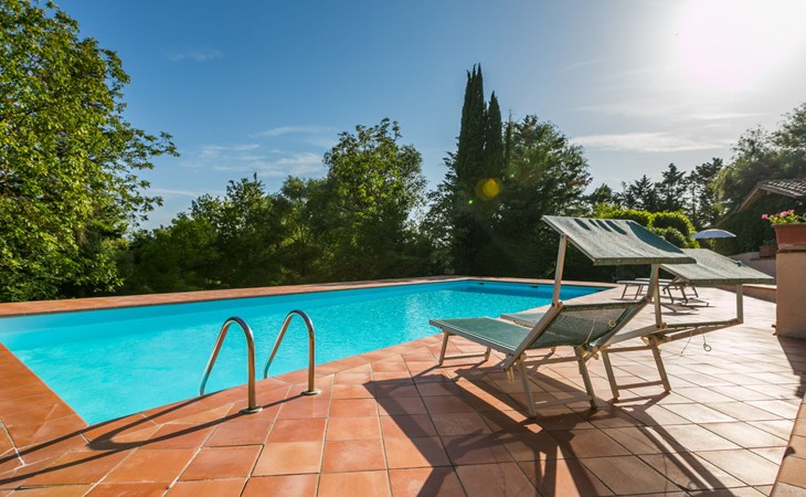 Agriturismo "Bardeggiano", van 2 verdiepingen, omgeven door bomen en velden. 5 huizen in de woning. 9 appartementen in de woning. 4 km van het centrum van Colle di Val d'Elsa, 8.5 km van het centrum van Monteriggioni, 26 km van het centrum van Siena, centrale, geïsoleerde ligging, 70 km van zee, te midden van groen. Voor medegebruik: verzorgde tuin 12 ha (omheind) met planten en bomen, openluchtzwembad (15 x 6 m, 150 cm diepte, seizoensgebonden beschikbaarheid: 13.Mei. - 04.Nov.). Buitendouche, terras, barbecue, onderhoud zwembad door de eigenaar/tuinman. In het complex: Internet (WiFi), wasmachine (voor medegebruik, extra). Wissel van linnengoed (extra wissel te betalen). Wissel van handdoeken (extra wissel te betalen). Overdekte parkeerplaats op het terrein. Levensmiddelenwinkel 1 km, supermarkt 4 km, restaurant 4 km, bakkerij 1 km, bushalte 2 km, treinstation "Colle di Val d'Elsa" 4 km, zandstrand "Follonica" 88 km. Attracties in de buurt: San Gimignano 20 km, Firenze 52 km, Volterra 55 km. Baby uitrusting (incl.). Gesloten residentie met een elektrische deur. De eigenaar woont op hetzelfde terrein. De woningen kunnen onderling van inrichting verschillen.