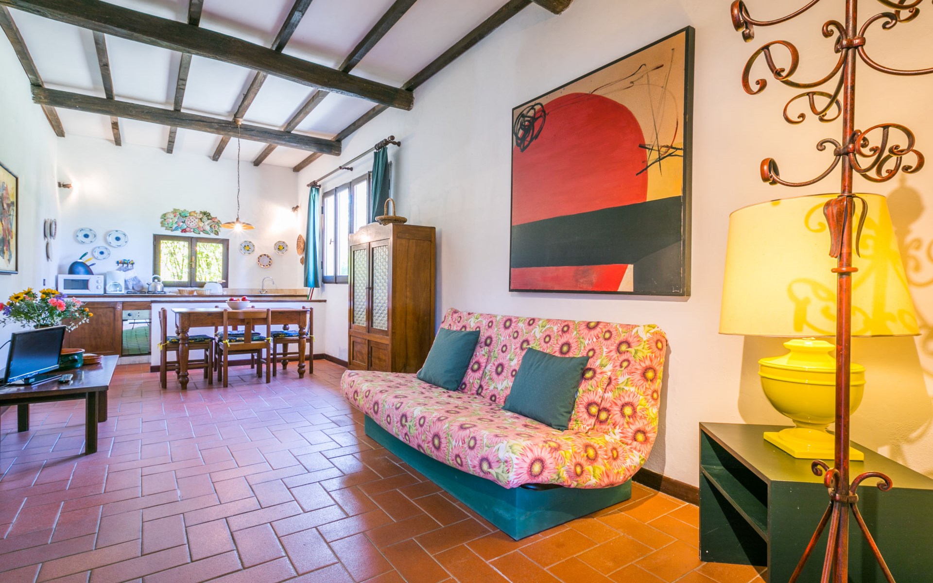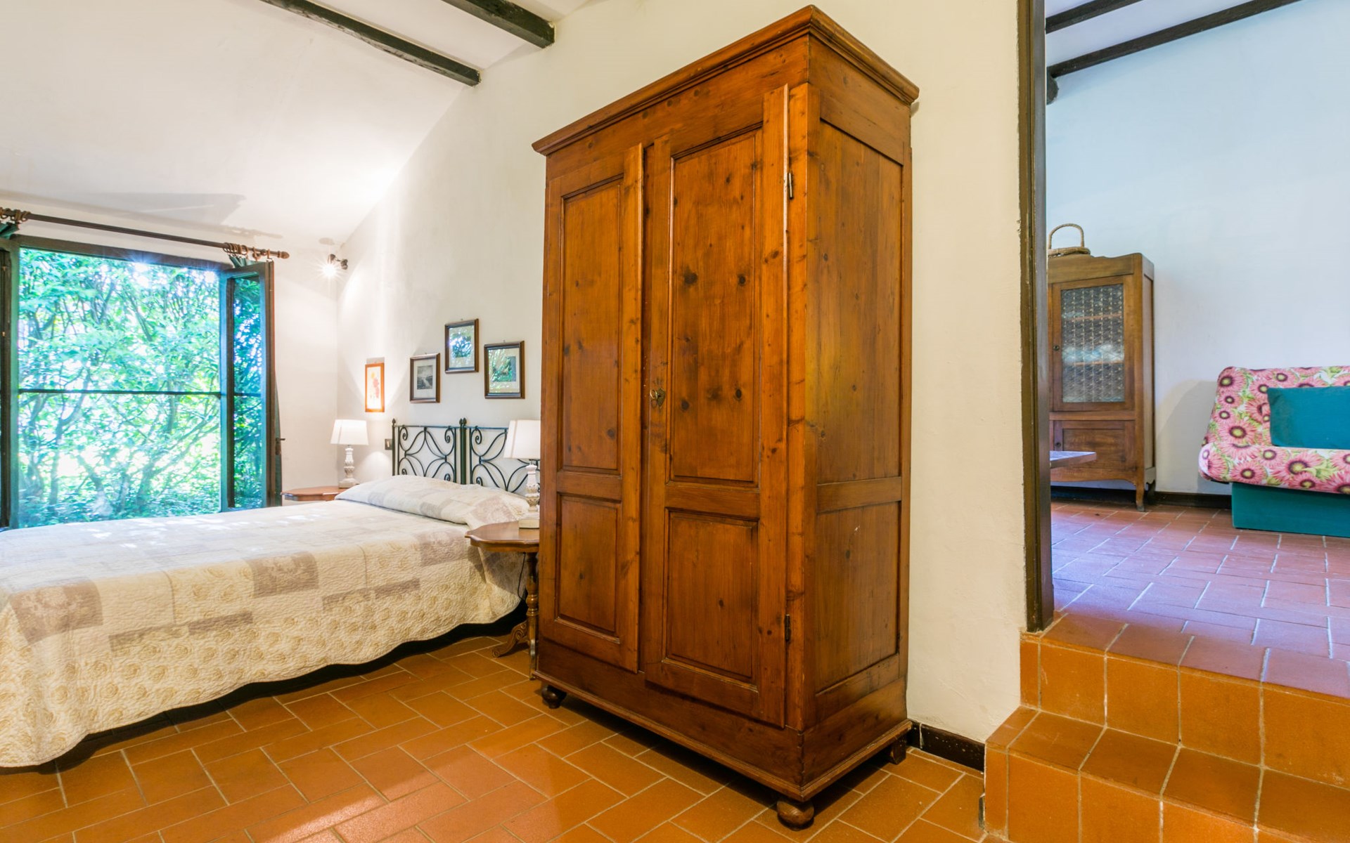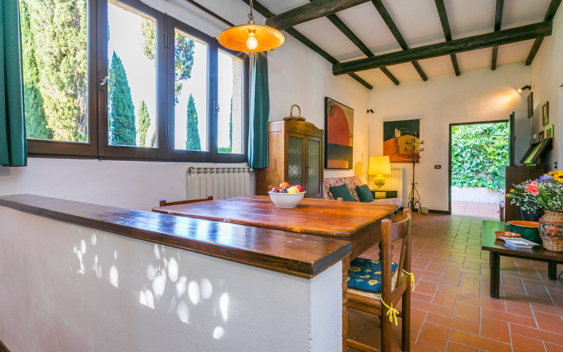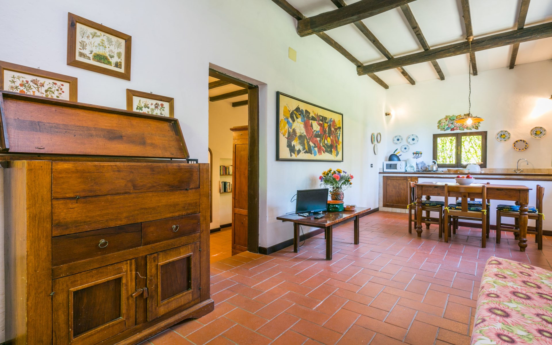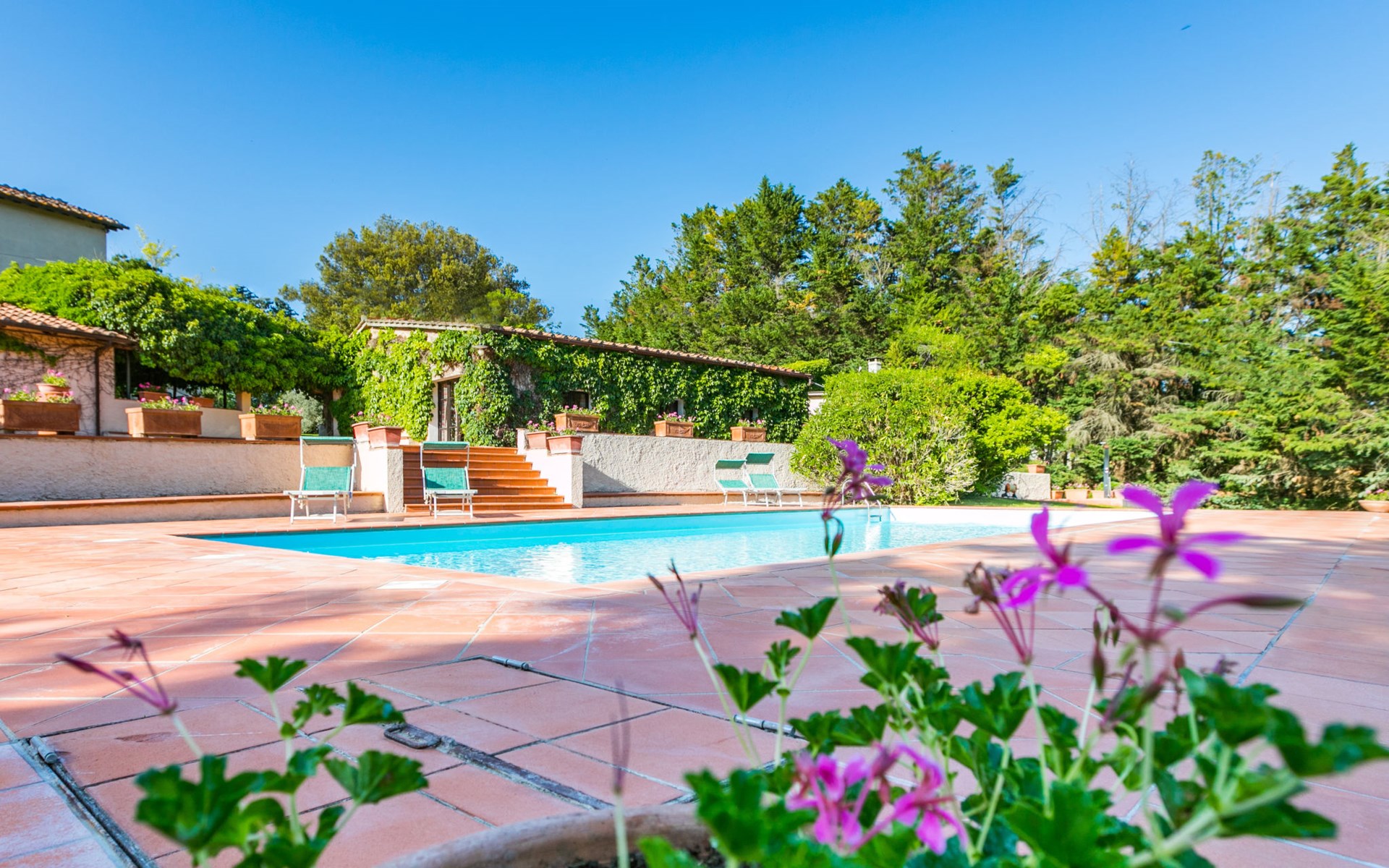 Agriturismo "Bardeggiano", van 2 verdiepingen, omgeven door bomen en velden. 5 huizen in de woning. 9 appartementen in de woning. 4 km van het centrum van Colle di Val d'Elsa, 8.5 km van het centrum van Monteriggioni, 26 km van het centrum van Siena, centrale, geïsoleerde ligging, 70 km van zee, te midden van groen. Voor medegebruik: verzorgde tuin 12 ha (omheind) met planten en bomen, openluchtzwembad (15 x 6 m, 150 cm diepte, seizoensgebonden beschikbaarheid: 13.Mei. - 04.Nov.). Buitendouche, terras, barbecue, onderhoud zwembad door de eigenaar/tuinman. In het complex: Internet (WiFi), wasmachine (voor medegebruik, extra). Wissel van linnengoed (extra wissel te betalen). Wissel van handdoeken (extra wissel te betalen). Overdekte parkeerplaats op het terrein. Levensmiddelenwinkel 1 km, supermarkt 4 km, restaurant 4 km, bakkerij 1 km, bushalte 2 km, treinstation "Colle di Val d'Elsa" 4 km, zandstrand "Follonica" 88 km. Attracties in de buurt: San Gimignano 20 km, Firenze 52 km, Volterra 55 km. Baby uitrusting (incl.). Gesloten residentie met een elektrische deur. De eigenaar woont op hetzelfde terrein. De woningen kunnen onderling van inrichting verschillen.