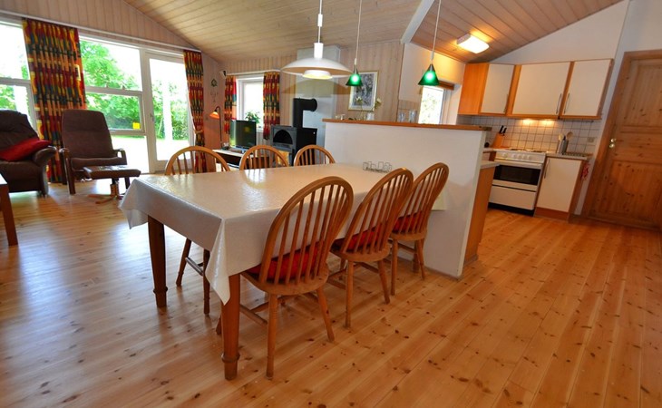 Eengezinswoning, bouwjaar 1997. 1.2 km van zee. Voor alleengebruik: terrein 1.540 m2, verzorgde tuin. Terras (58 m2), kinderspeelplaats (schommel). In het huis: sauna, wasmachine, droger. Parkeerplaats bij het huis. Levensmiddelenwinkel 900 m. De eigenaar accepteert geen jeugdgroepen.