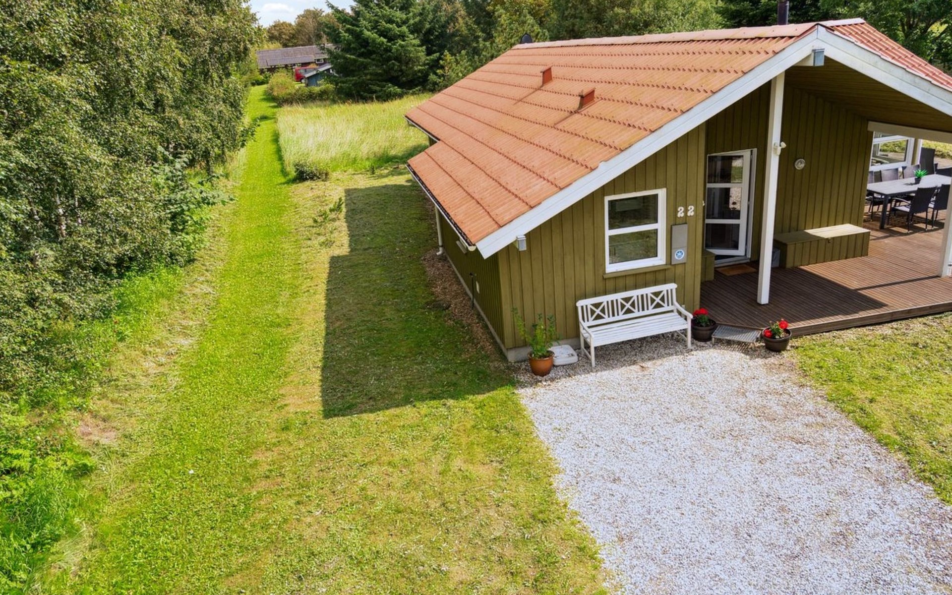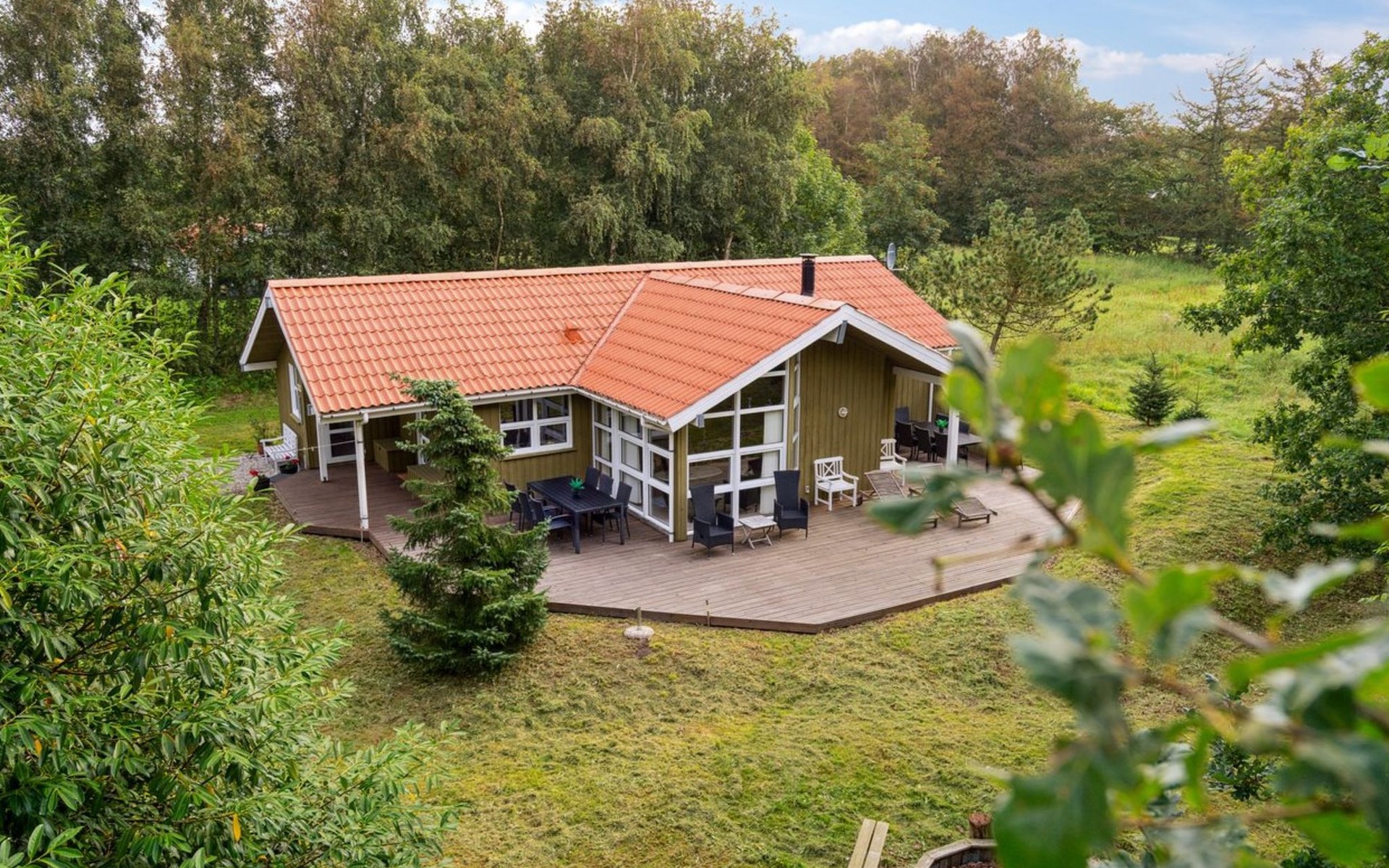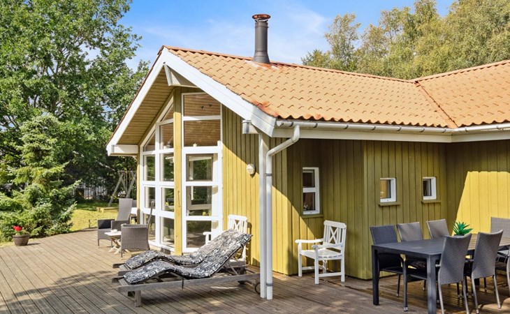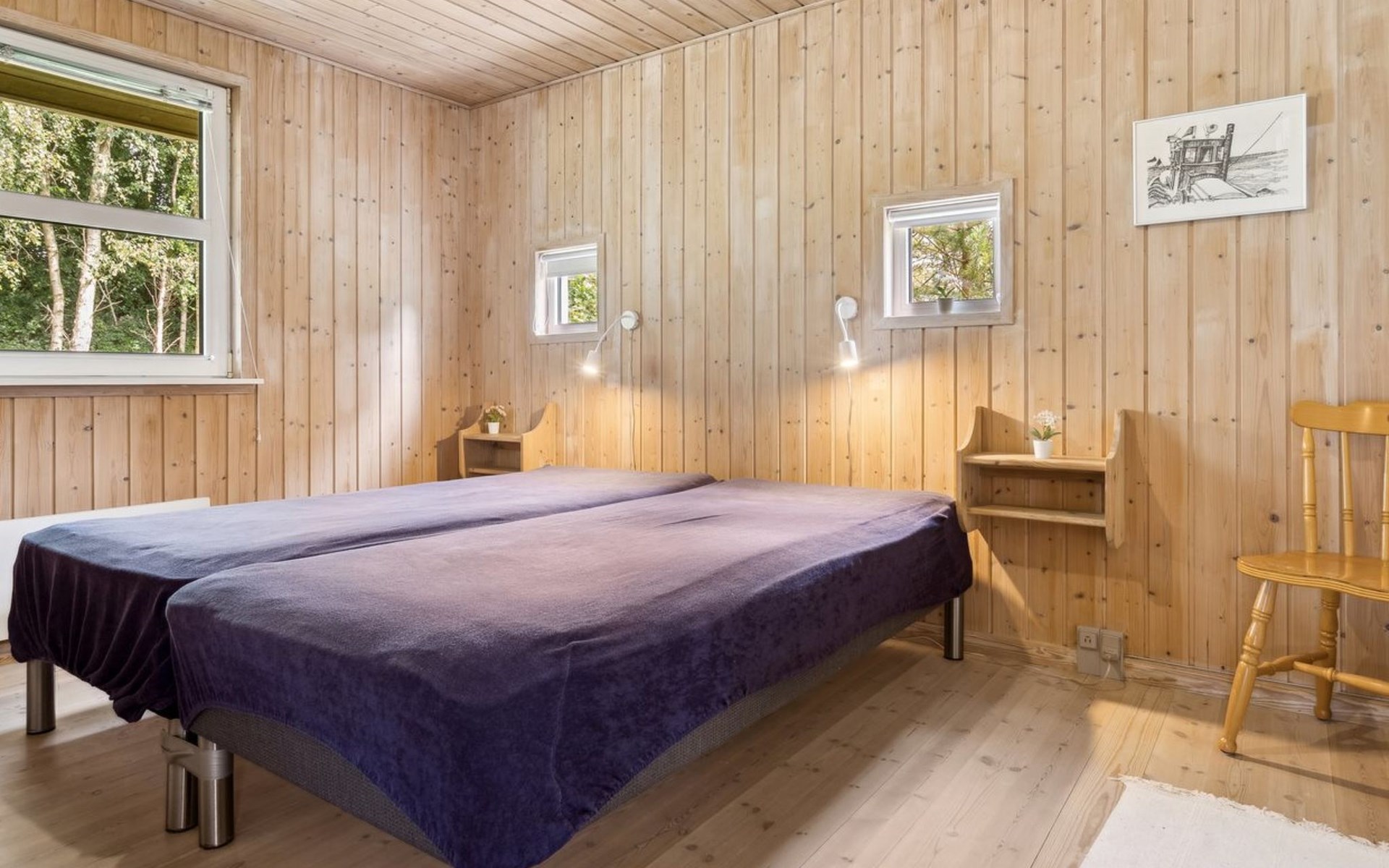 Eengezinswoning, bouwjaar 1994. 5 km van zee. Voor alleengebruik: wild terrein 1.200 m2. Terras (23 m2), kinderspeelplaats (schommel). In het huis: sauna, wasmachine, droger. Parkeerplaats bij het huis. Levensmiddelenwinkel 2 km. De eigenaar accepteert geen jeugdgroepen.