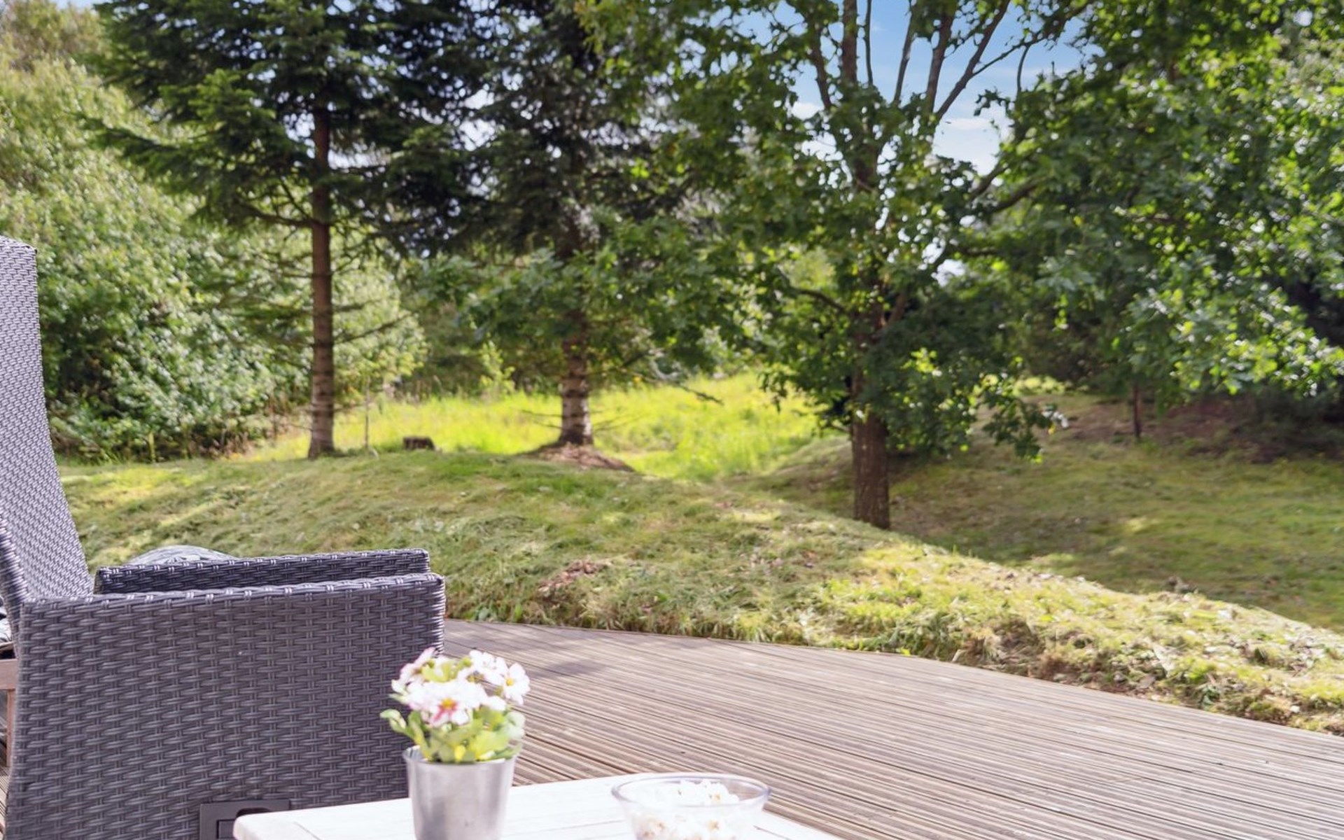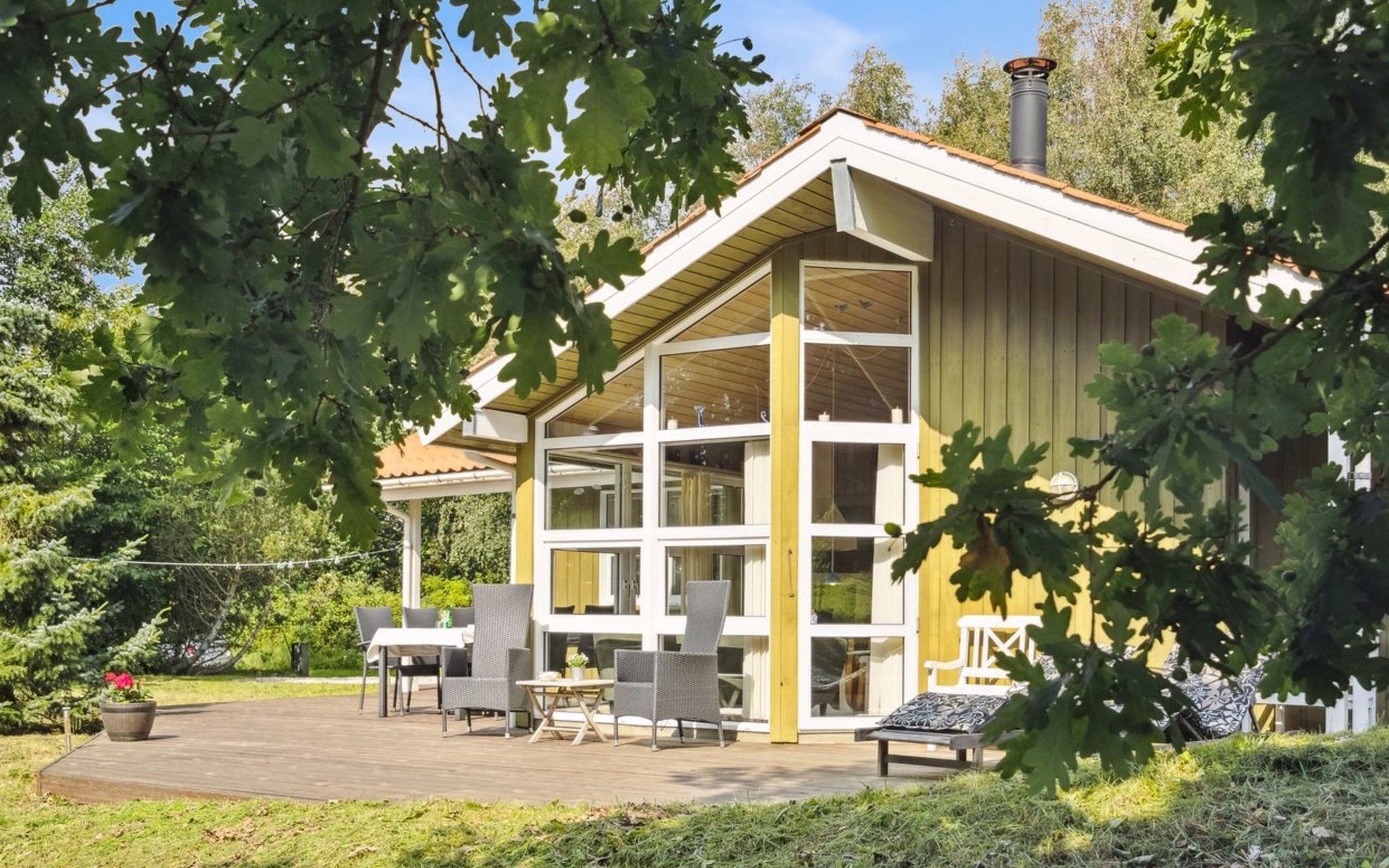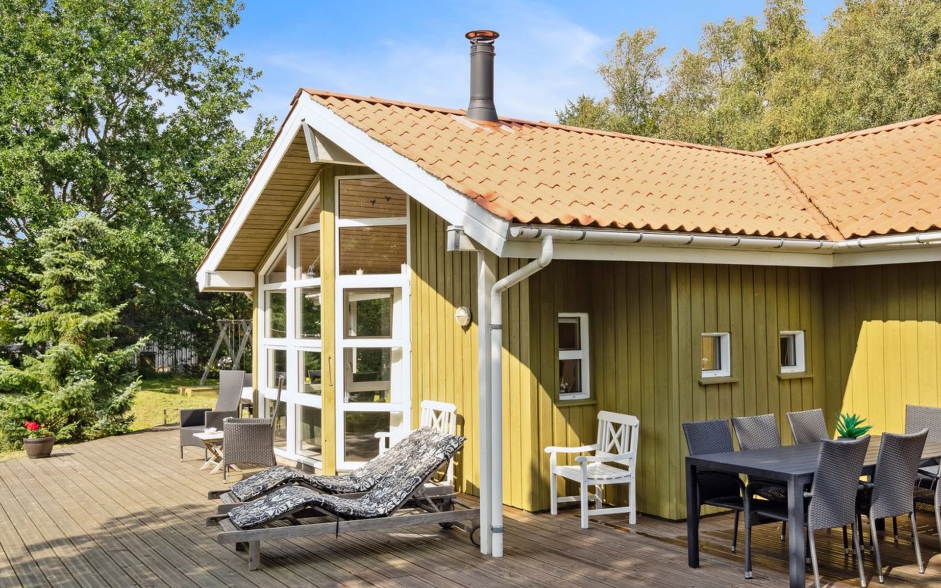 Eengezinswoning, bouwjaar 1994. 5 km van zee. Voor alleengebruik: wild terrein 1.200 m2. Terras (23 m2), kinderspeelplaats (schommel). In het huis: sauna, wasmachine, droger. Parkeerplaats bij het huis. Levensmiddelenwinkel 2 km. De eigenaar accepteert geen jeugdgroepen.