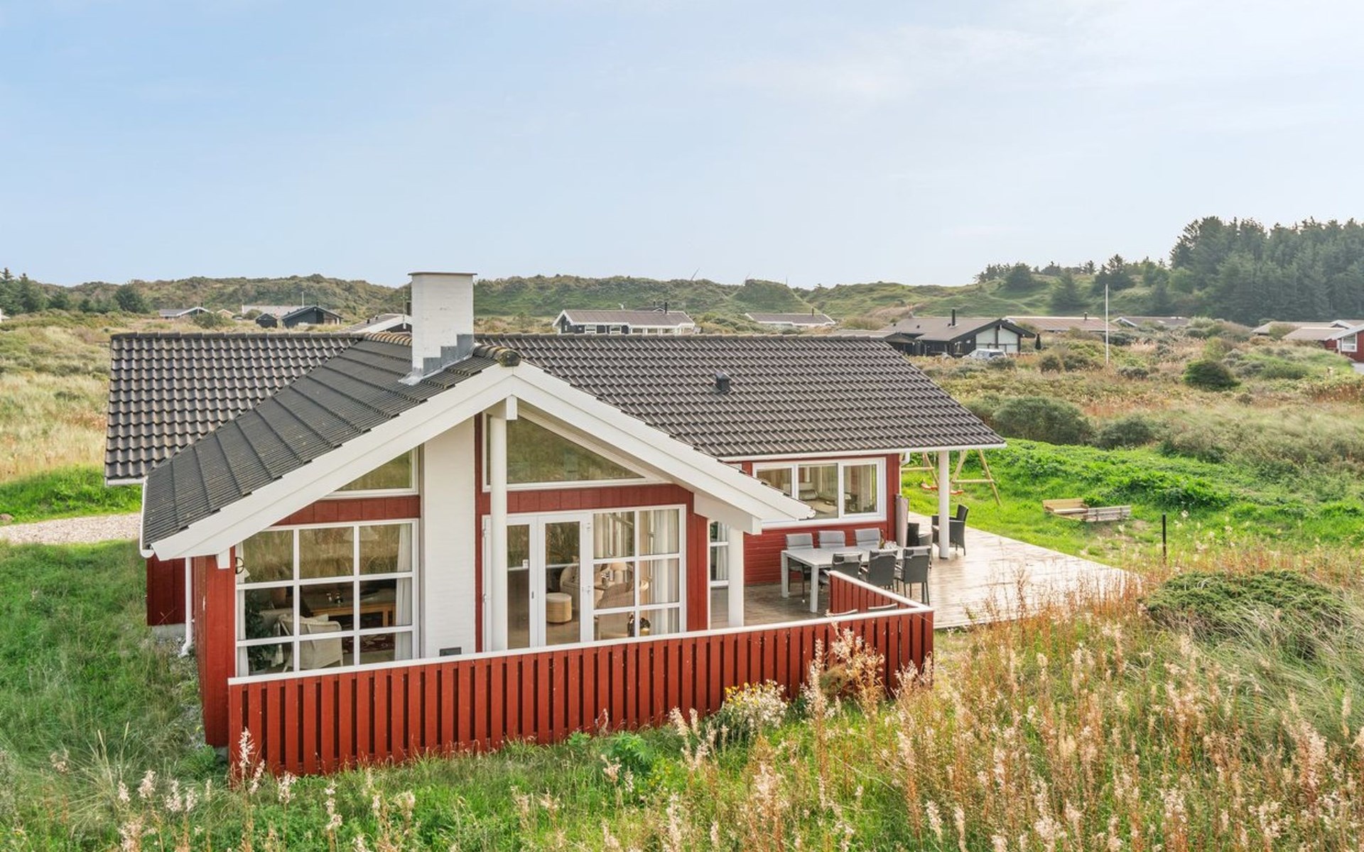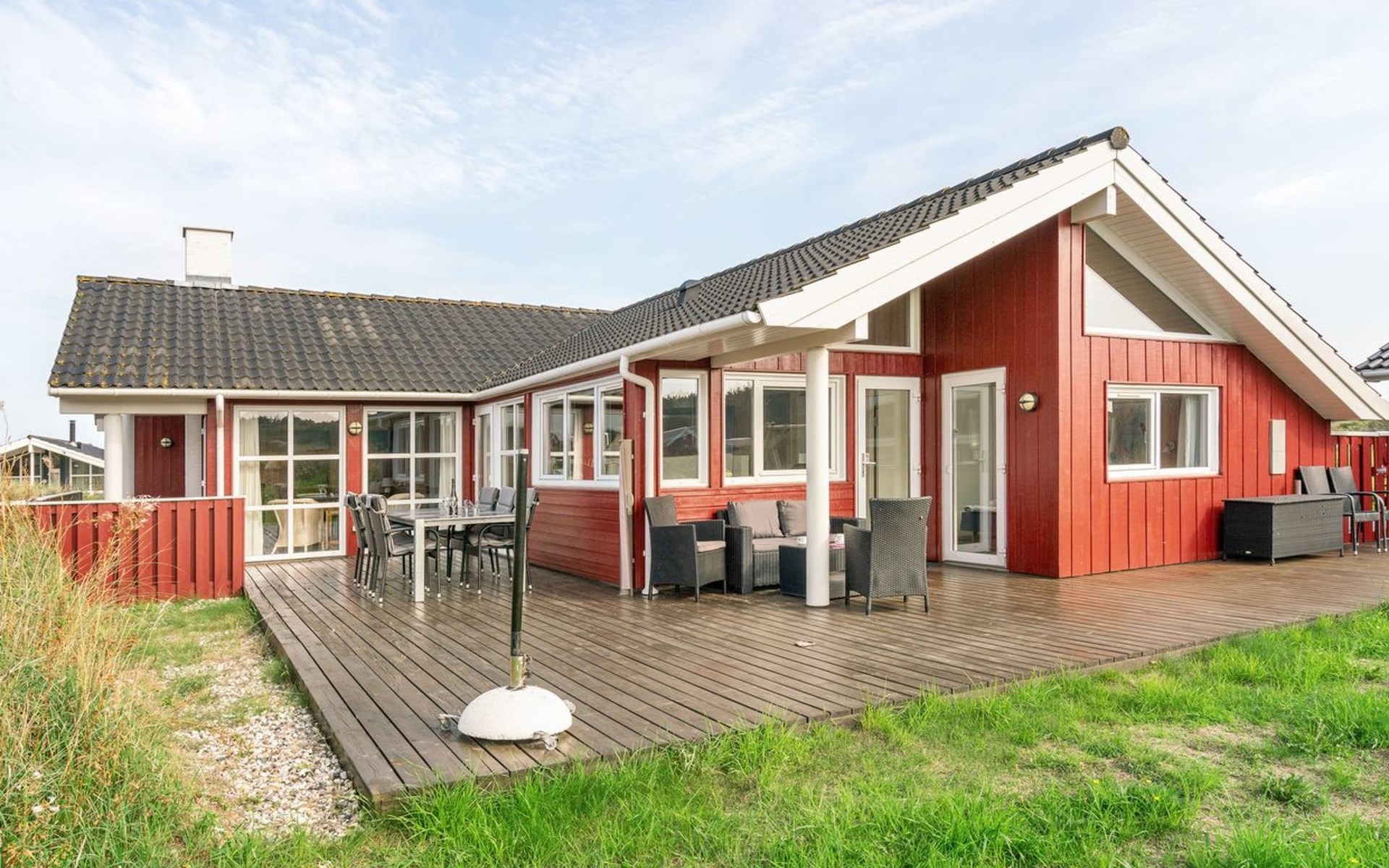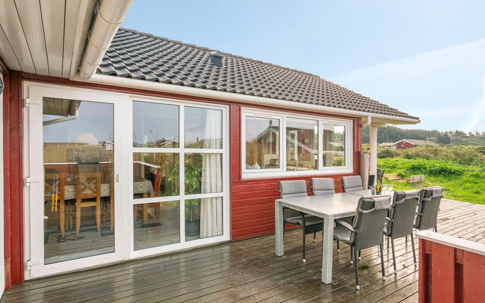 Eengezinswoning, bouwjaar 2003. 400 m van zee. Voor alleengebruik: terrein 1.400 m2. Terras (70 m2), kinderspeelplaats (schommel). In het huis: sauna, wasmachine, droger. Parkeerplaats bij het huis. Oplaadstation. Levensmiddelenwinkel 1.5 km. De eigenaar accepteert geen jeugdgroepen.