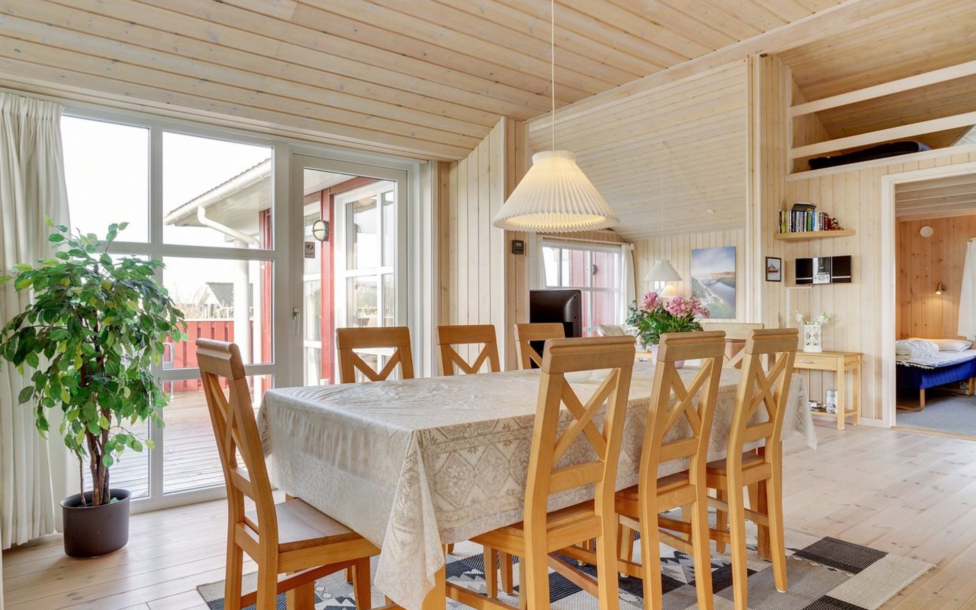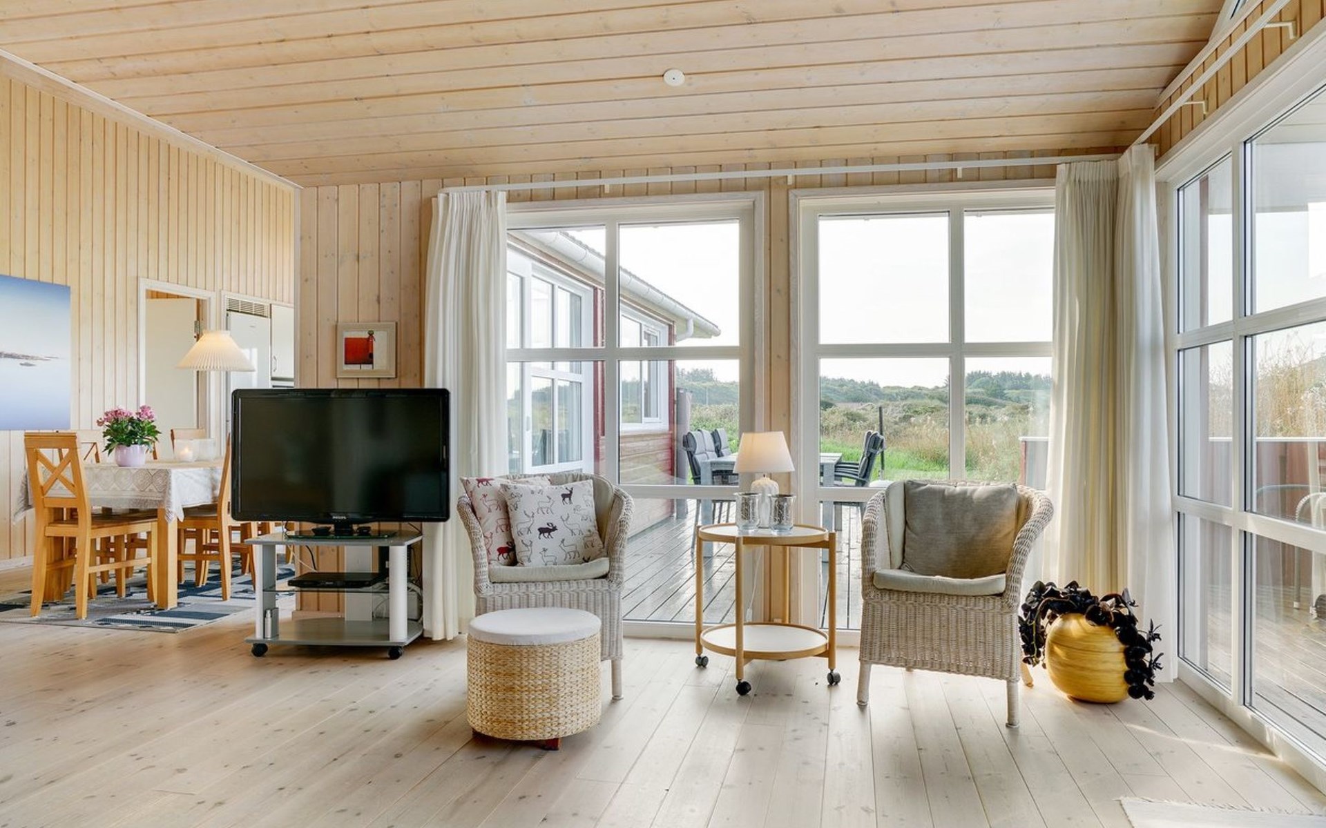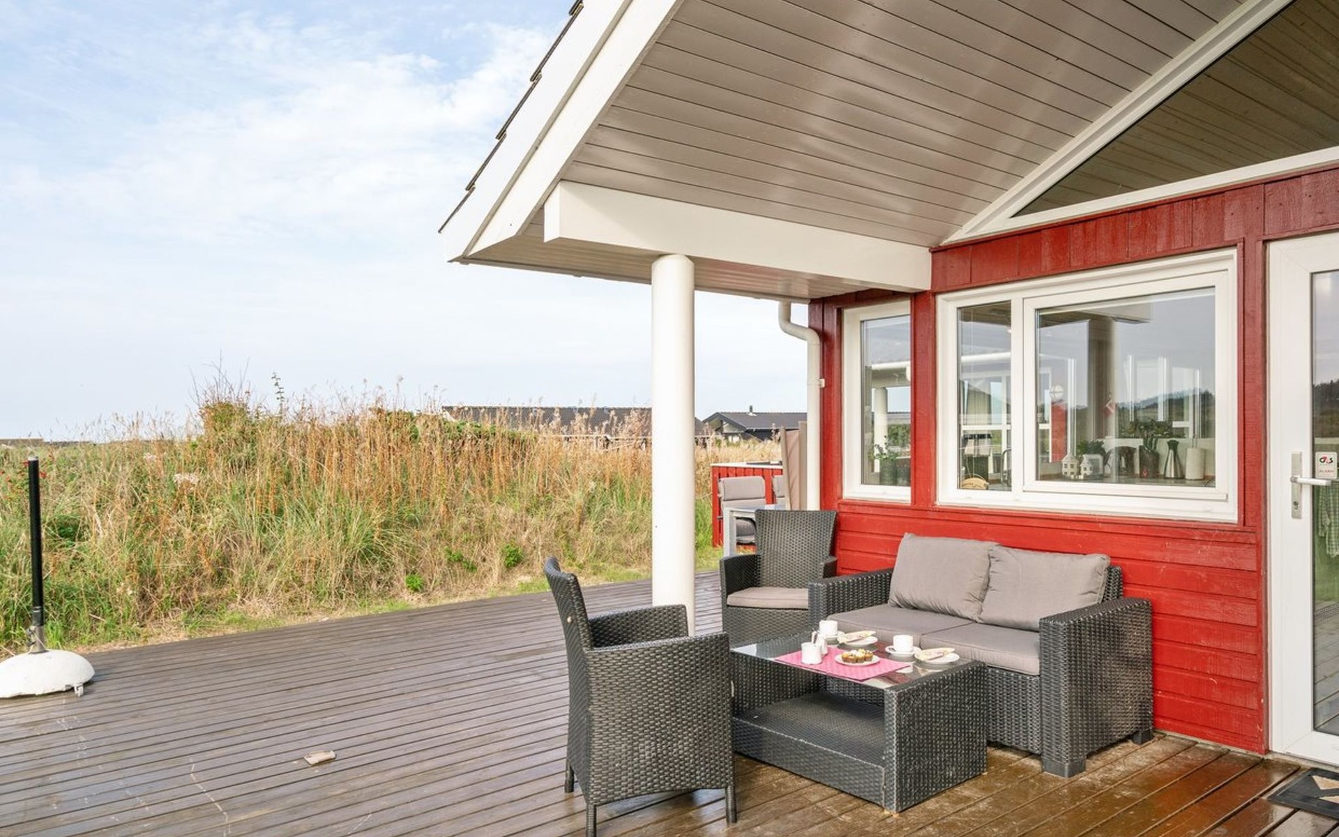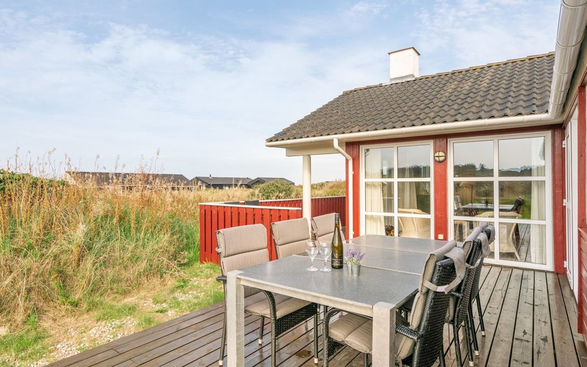 Eengezinswoning, bouwjaar 2003. 400 m van zee. Voor alleengebruik: terrein 1.400 m2. Terras (70 m2), kinderspeelplaats (schommel). In het huis: sauna, wasmachine, droger. Parkeerplaats bij het huis. Oplaadstation. Levensmiddelenwinkel 1.5 km. De eigenaar accepteert geen jeugdgroepen.