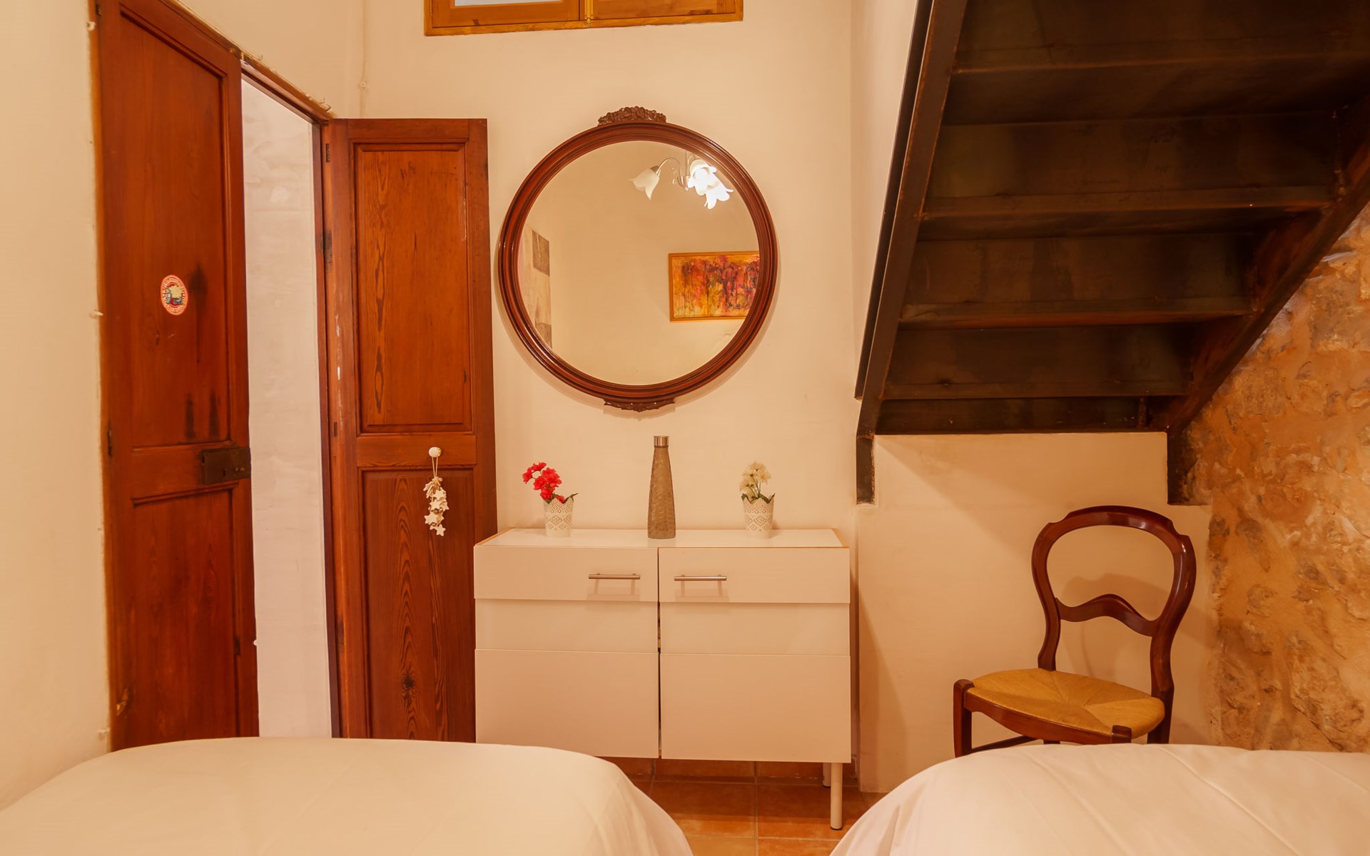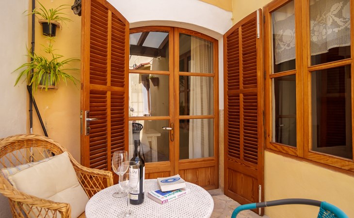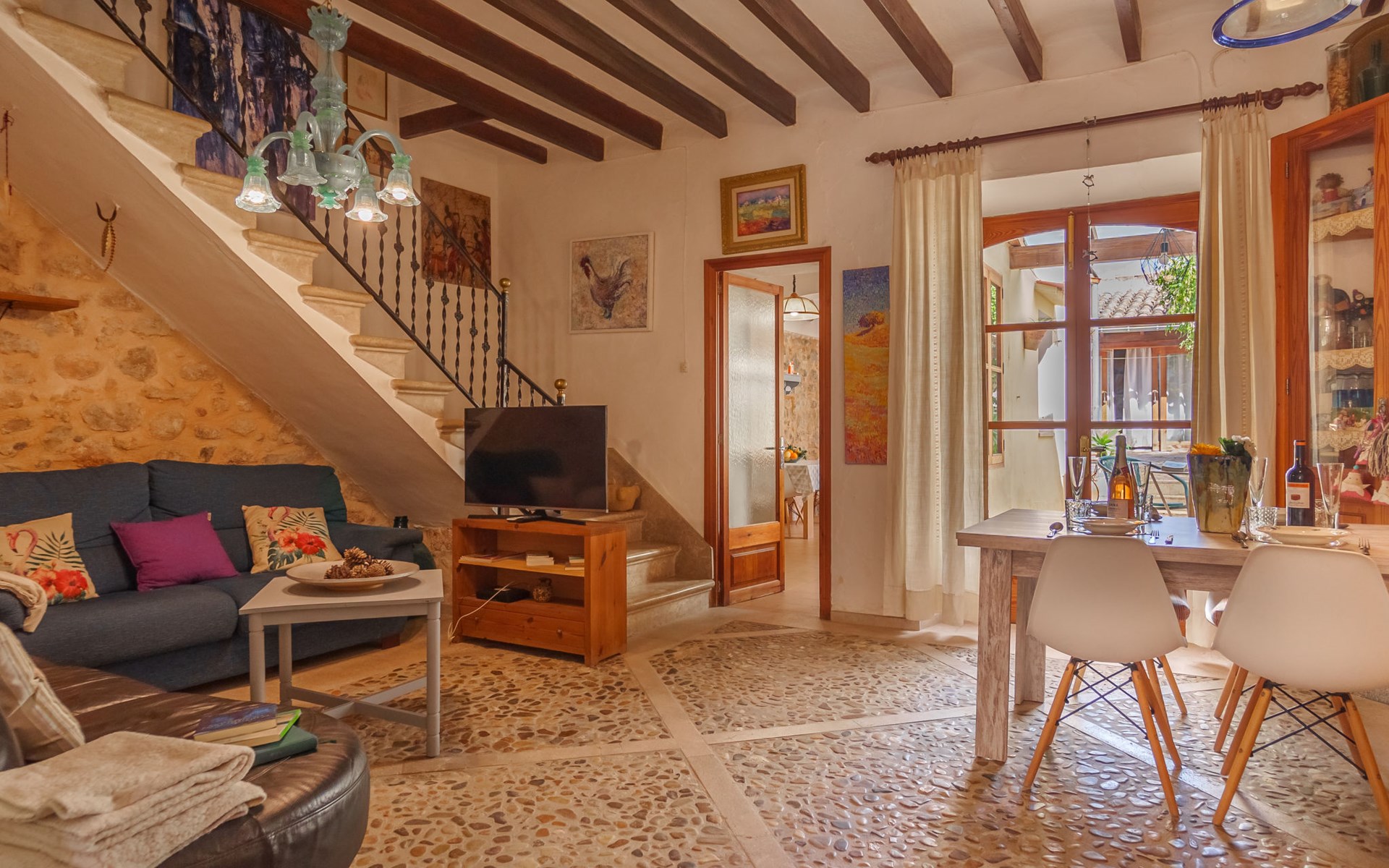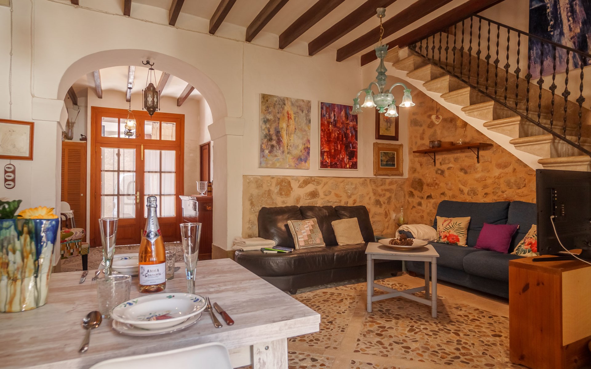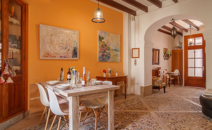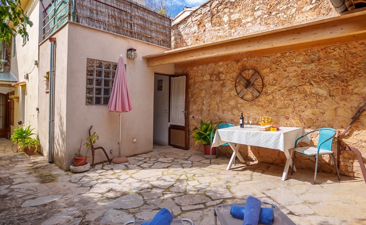 Gezellig, rustieke, historisch Huis met 2 woningen "Can Salom", bouwjaar 1940, gerenoveerd. In het centrum van Binissalem, perfecte locatie: in het centrum en toch rustig gelegen, 3 km van de bosrand, 33 km van zee, 33 km van het strand. Voor alleengebruik: binnenplaats. Buitendouche, patio (40 m2), Openbare parkeergarage, openbare parkeerplaatsen in de straat. Levensmiddelenwinkel 400 m, supermarkt 700 m, restaurant 150 m, bar 130 m, bakkerij 200 m, centrum te voet bereikbaar in 4 minuten, bushalte "Binissalem" 600 m, treinstation "de Binissalem" 900 m, veerboot "Port Alcúdia" 34 km, zandstrand "Port d'Alcúdia" 33 km. Jachthaven 33 km, golfterrein (18 holes) 18 km, manege 16 km, wandelroutes 1.5 km vanaf het huis, fietspad 900 m, kinderspeelplaats 500 m. Attracties in de buurt: Bodegas y Viñedos D.O. Binissalem, Mercado Local (Viernes, 9.00-13.30h). 250 m, Centro Comercial, ocio y cinemas 13 km, Ciudad de Inca 7 km, Pueblos de Alaró, Consell, Santa María. Wandelgebied Serra de Tramuntana. Geschikt voor senioren. Het objekt is geschikt voor 4 volwassenen. De eigenaar accepteert geen jeugdgroepen.