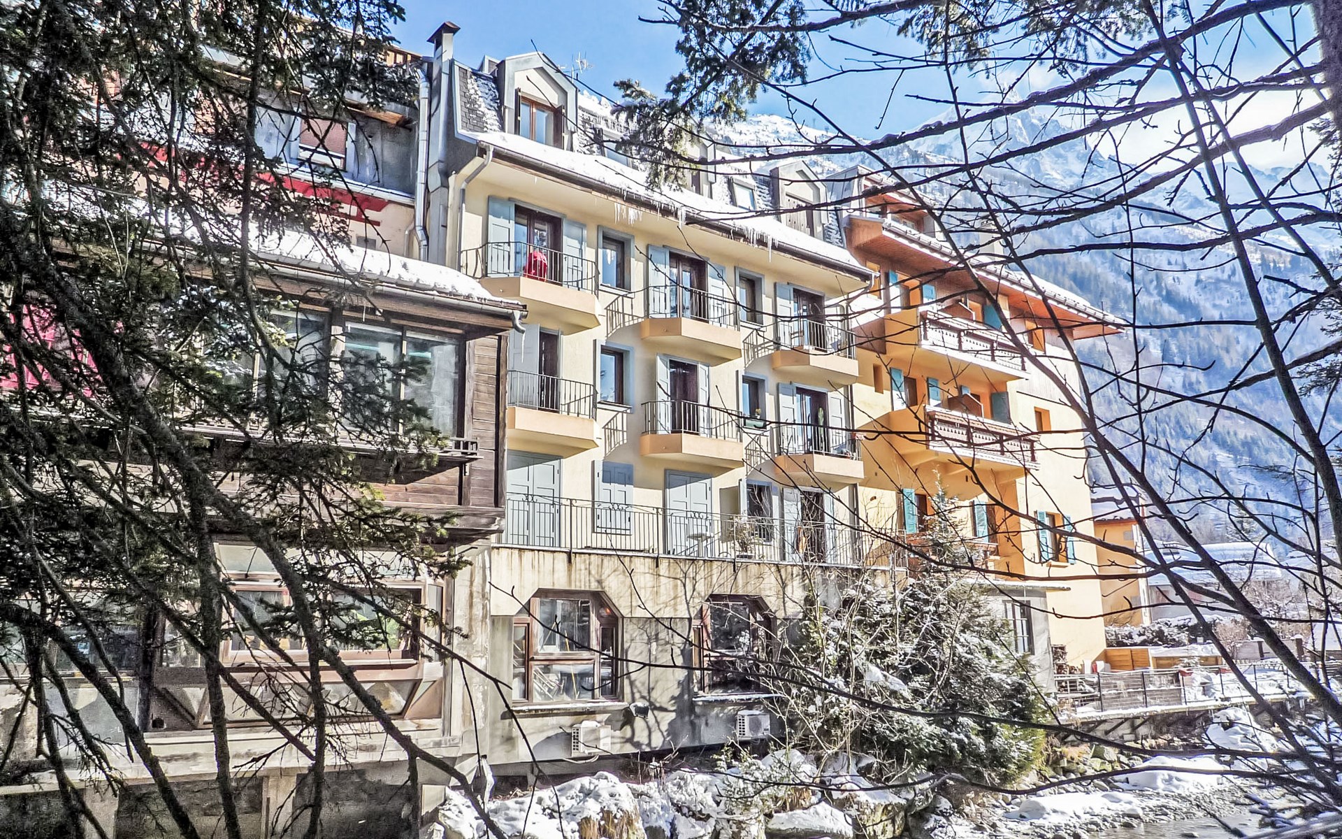 Chamonix: Residentie "l'Armancette", van 4 verdiepingen. 100 m van het centrum. In het complex: lift. Winkel 50 m, levensmiddelenwinkel 100 m, restaurant 20 m, bushalte 450 m, station "Chamonix Mont-Blanc" 450 m. Golfterrein (18 holes) 3 km, sportcentrum 1 km, ski faciliteiten 700 m, skischool 400 m, langlaufloipe 1 km. Attracties in de buurt: Téléphérique de l'Aiguille du Midi 450 m, Train du Montenvers Mer de Glace 500 m.