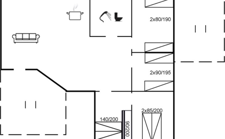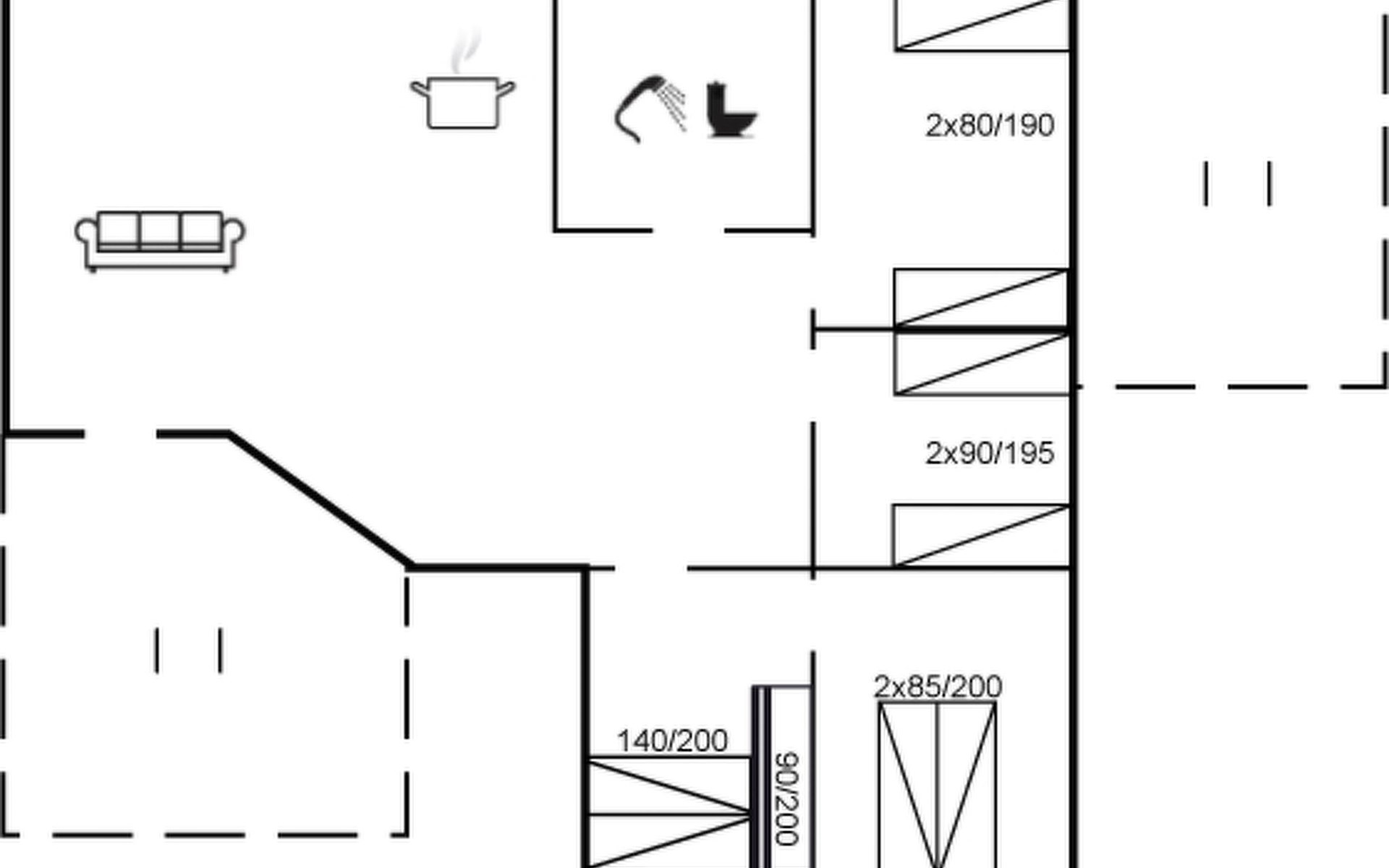 Eengezinswoning, bouwjaar 1972. 75 m van zee. Voor alleengebruik: wild terrein 2.500 m2. Terras (40 m2), kinderspeelplaats (schommel), parkeerplaats bij het huis. Levensmiddelenwinkel 1.5 km.
