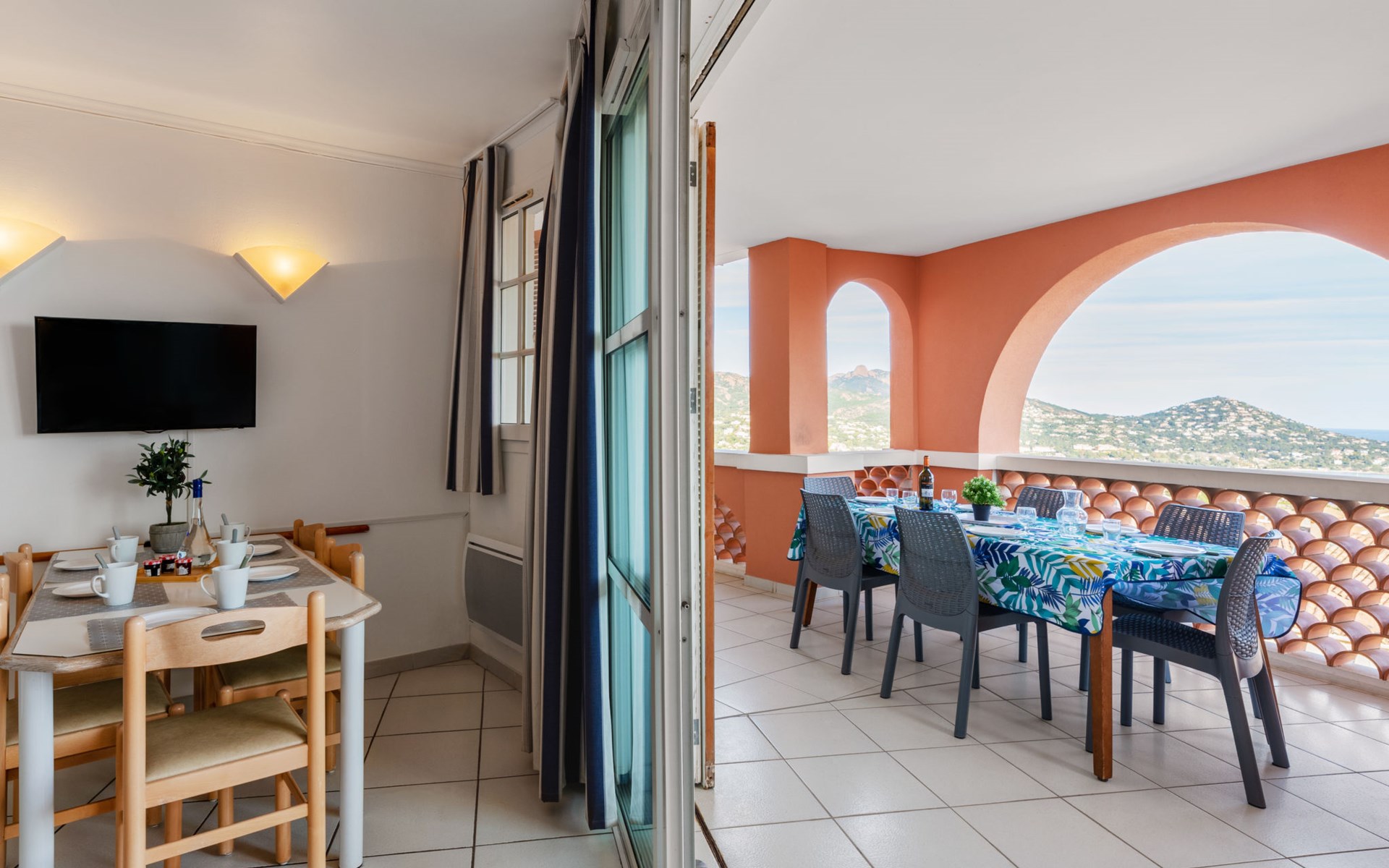 Groot vakantiecomplex "Village Cap Estérel - Les Bastides". Aan de rand van de plaats, 2 km van het centrum van Agay, tegen een helling, in een woonwijk, 900 m van zee, 1.8 km van het strand, de straat oversteken, aan de golfbaan, in een voetgangerszone. Voor medegebruik: park 210 ha, 5 zwembaden (seizoensgebonden beschikbaarheid: 06.Apr. - 03.Nov.). Kinderzwembad, jeu de boules, kinderspeelplaats (glijbaan, schommel). In het complex: spa centrum (extra), winkel, wasserette (extra). Oplaadstation. Winkel 500 m, levensmiddelenwinkel, supermarkt 6 km, restaurant 500 m, bakkerij 500 m, bushalte "Ligne 21" 300 m, station "Saint-Raphaël-Valescure TGV" 9 km, zandstrand "Tiki Plage" 900 m. Jachthaven 1 km, golfterrein (9 holes), tennis 500 m. Attracties in de buurt: Anthéor 8 km, Saint-Raphaël 9 km, Fréjus 13 km, Cannes 33 km, Saint-Tropez 50 km, Nice 76 km. Bekende meren kunnen gemakkelijk worden bereikt: Lac Saint-Cassien. Wandelgebied Massif de l'Estérel. Autovrij vakantiepark, geen lift. Animatie in het hoogseizoen. Geschikt voor families, kinderopvang mogelijk in het hoogseizoen (extra). Bewaakt vakantiecomplex. Vergelijkbare accommodaties kunnen worden geboekt.