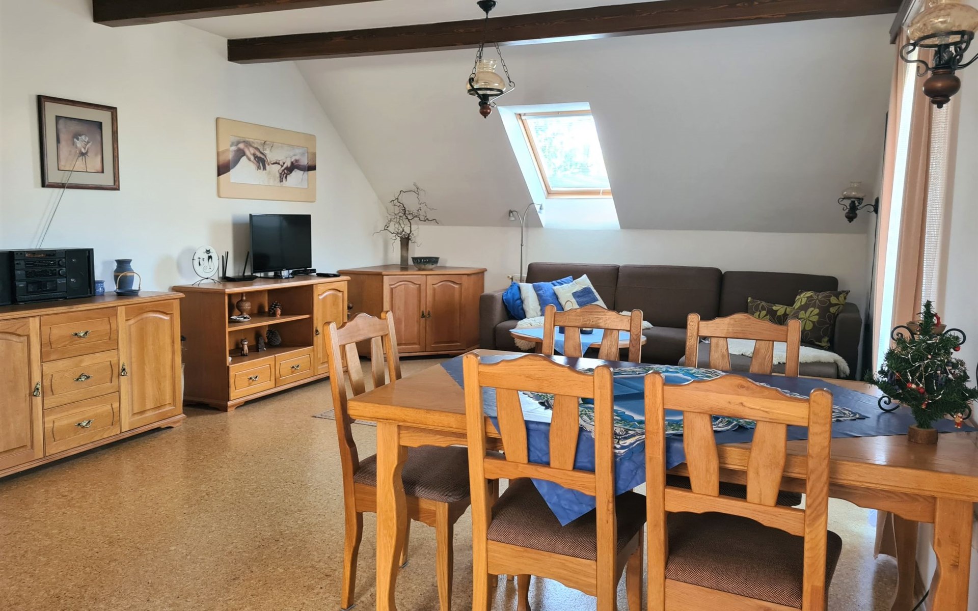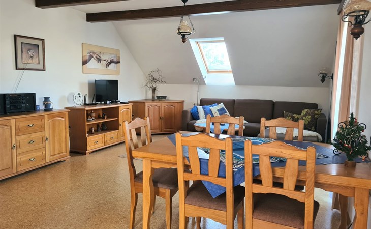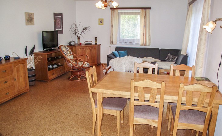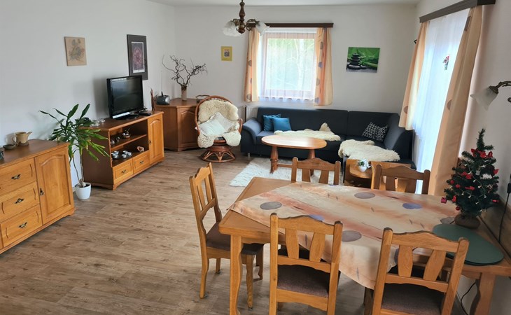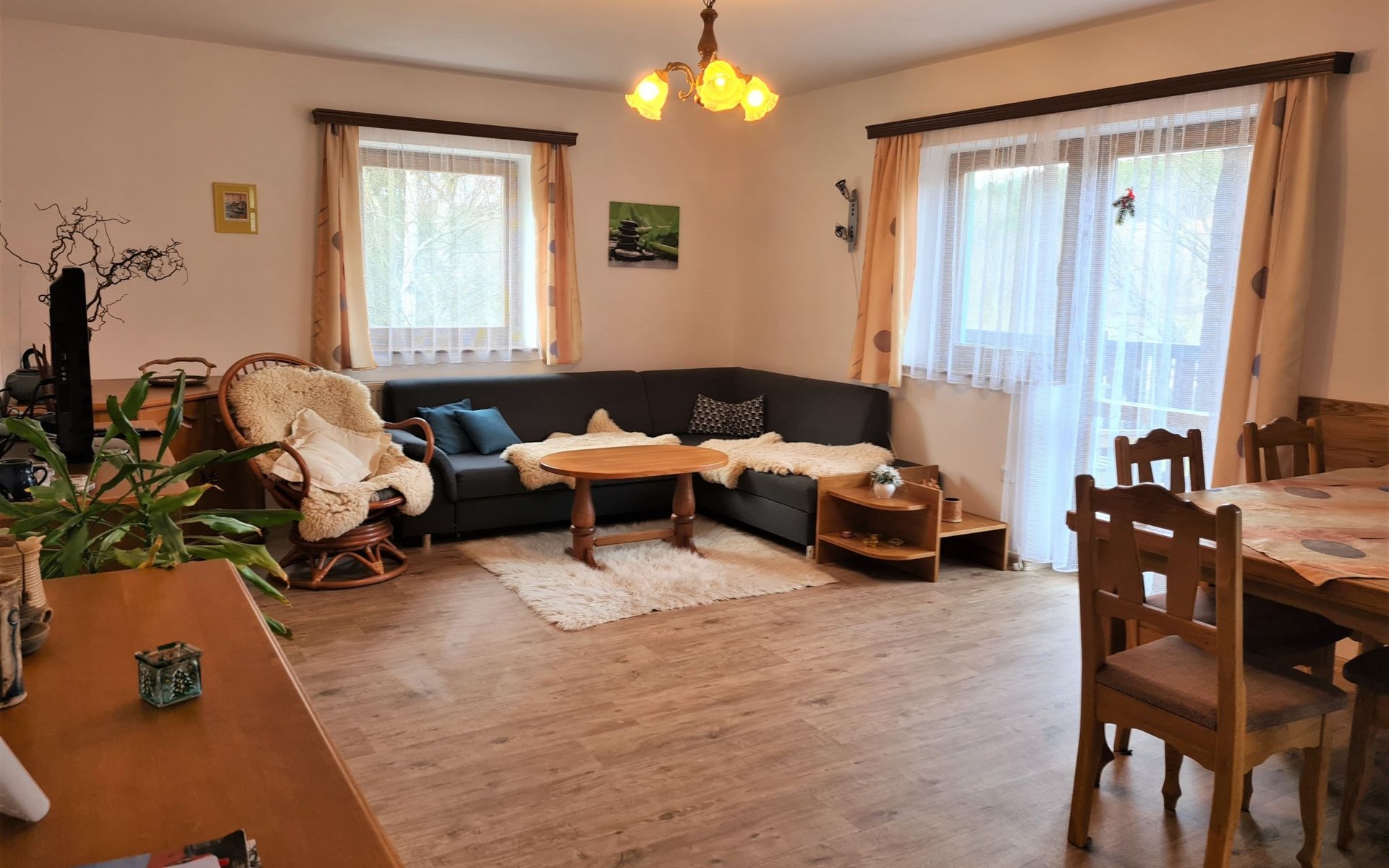 Kralovice 8 km van Prachatice: Zeer mooi twee onder één kap woning "Kralovice", van 2 verdiepingen, bouwjaar 2002. In de plaats, rustige, zonnige ligging, 700 m van het meer. Voor alleengebruik: terrein 600 m2 met gazon, vijver. Terras, tuinmeubelen, barbecue, grill, kinderspeelplaats (schommel). In het complex: Internet (WiFi), sauna (extra). Hot tub (extra). Parkeerplaats (voor 2 auto's) bij het huis. Winkel 4 km, levensmiddelenwinkel 4 km, supermarkt 10 km, restaurant 6 km, café 8 km, bushalte "Nebahovy, Šandův mlýn" 1.8 km, station "Prachatice" 9 km, grasstrand 700 m, overdekt zwembad 10 km. Jachthaven 50 km, zeilschool 50 km, tennis 10 km, tennishal 10 km, sportcentrum 10 km, wandelroutes 200 m vanaf het huis, fietspad 3 km, skilift 16 km, stoeltjeslift 48 km, skipisten 16 km, langlaufloipe 16 km. Attracties in de buurt: Prachatice 10 km, Husinec 16 km, Netolice, archeopark 18 km, zámek Kratochvíle 21 km, zámek Hluboká nad Vltavou, Český Krumlov, České Budějovice 40 km. Bekende skigebieden kunnen gemakkelijk worden bereikt: Libín 16 km, Zadov-Churáňov 48 km. Bekende meren kunnen gemakkelijk worden bereikt: Lipno 50 km. Wandelgebied Boubínský prales, Šumava 30 km. Groepen jongeren uitsluitend op aanvraag.