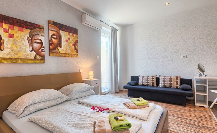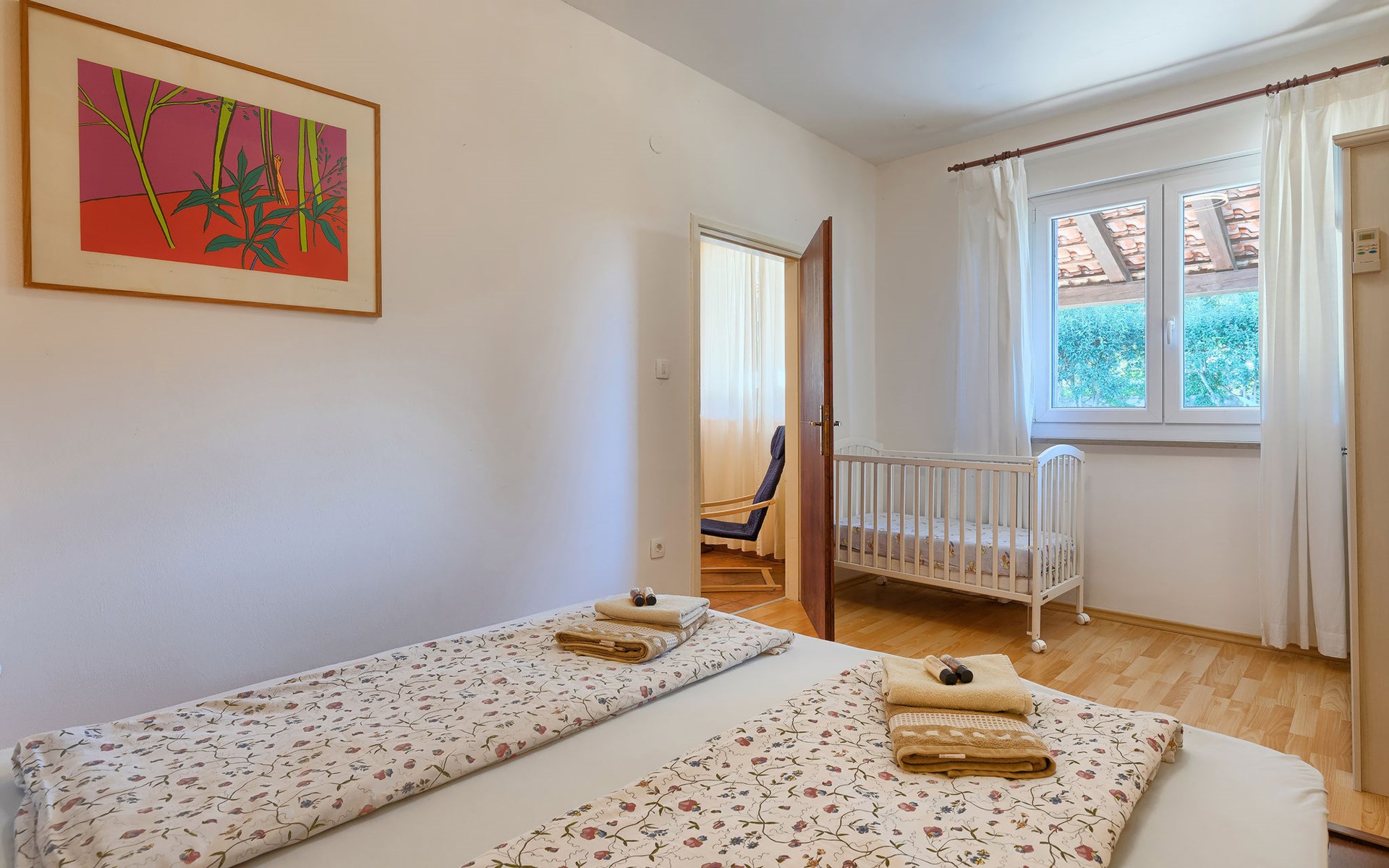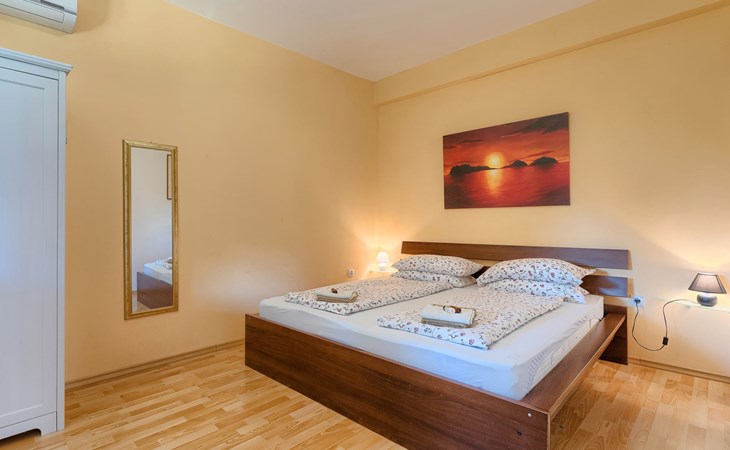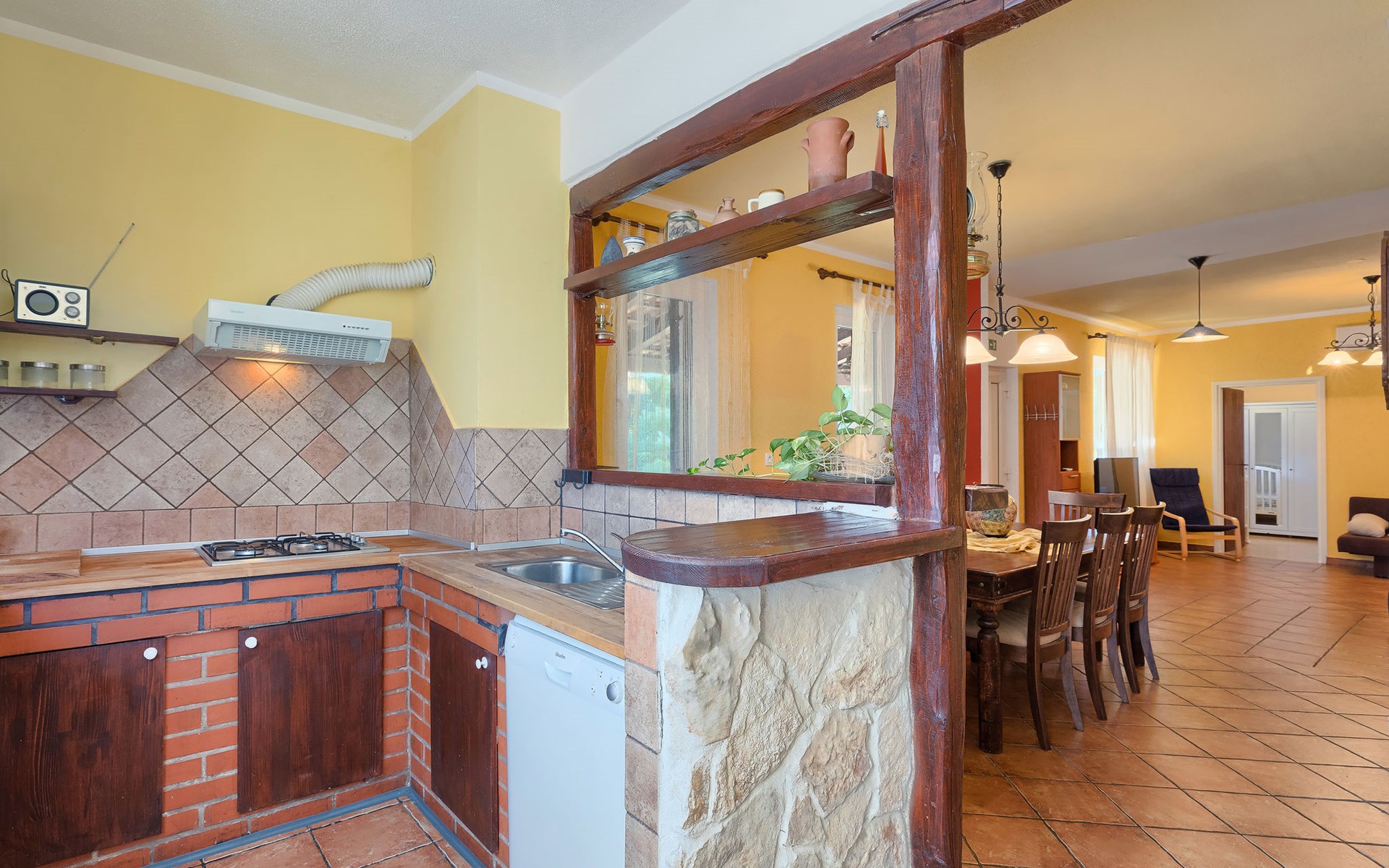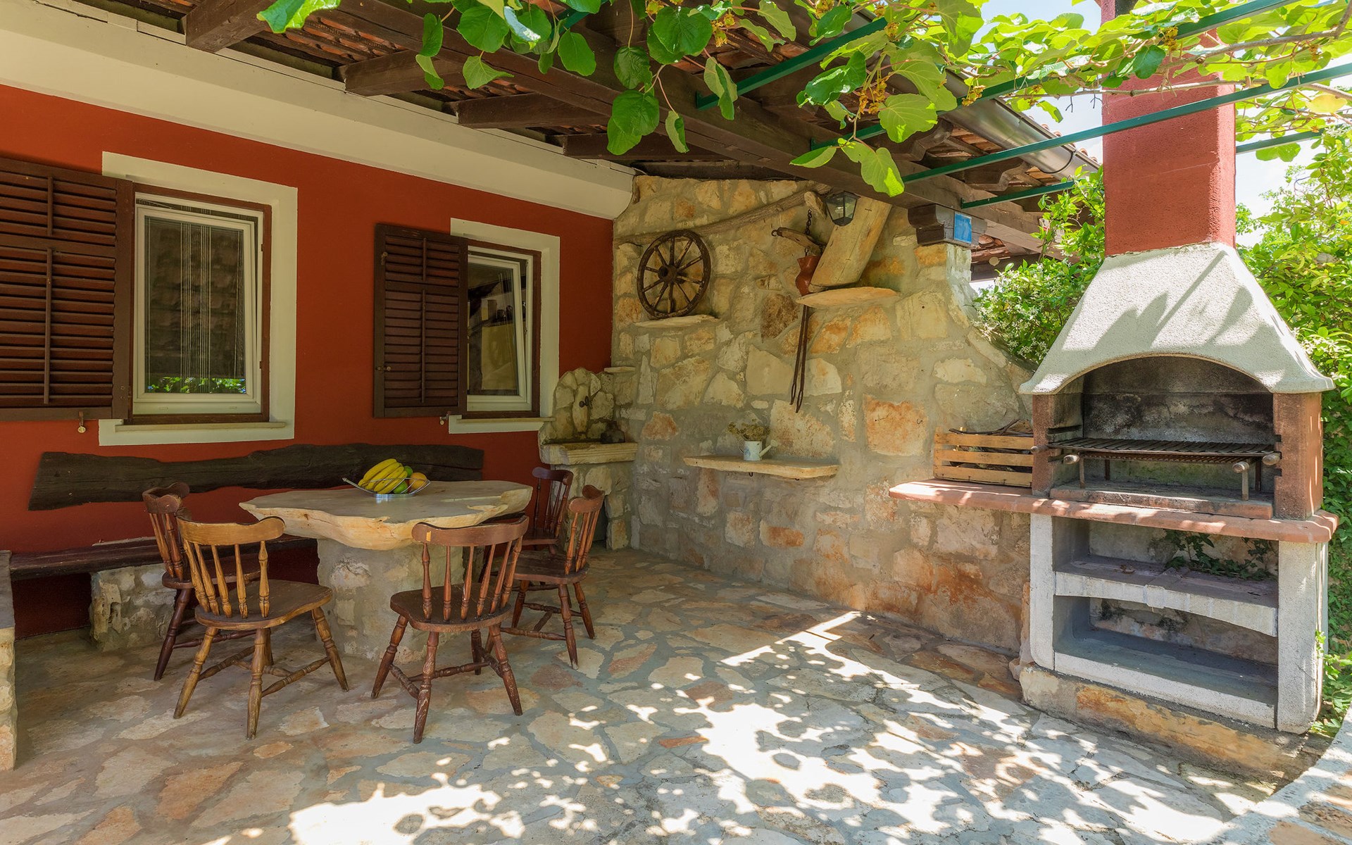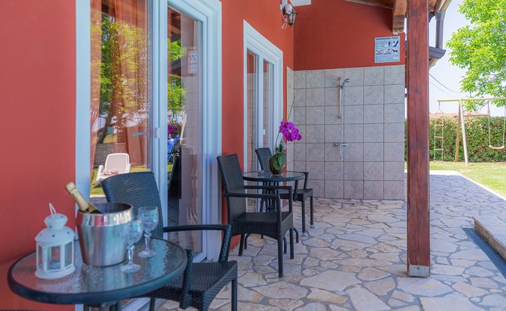 Plovanija 4 km van Buje: Eengezinswoning "Villa Renzo". In het gehucht Simonetija, 1 km van het centrum van Plovanija, 10 km van het centrum van Umag, rustige ligging, 5 km van zee, te midden van groen. Voor alleengebruik: terrein 3.000 m2 (omheind), tuin met gazon 1.000 m2 bomen, openluchtzwembad hoekig (3 x 8 m, 140 cm diepte, seizoensgebonden beschikbaarheid: 11.Mei. - 21.Sep.). Buitendouche, hot tub, barbecue, kinderspeelplaats (schommel). In het huis: internetaansluiting, sauna, biljart, wasmachine. Overdekte parkeerplaats bij het huis op het terrein. Winkel, restaurant 500 m, bushalte 3.9 km, kiezelstrand 5 km. Golfterrein (18 holes) 15 km, tennis 7 km, wandelroutes, vanaf het huis, fietspad 10 m. De eigenaar accepteert geen jeugdgroepen.