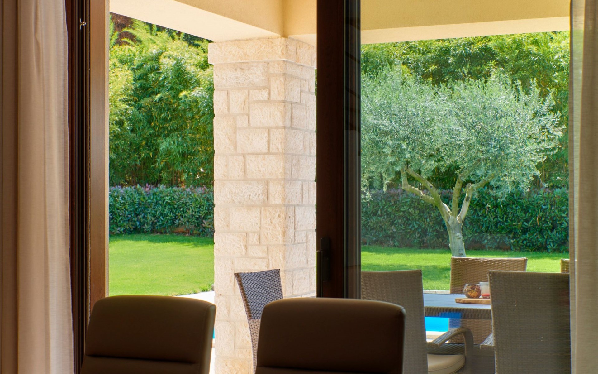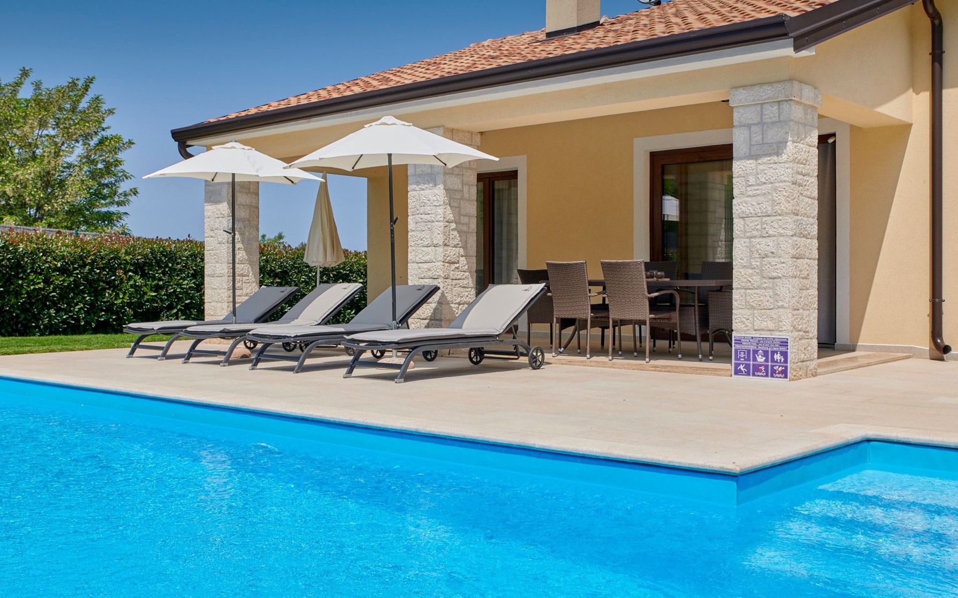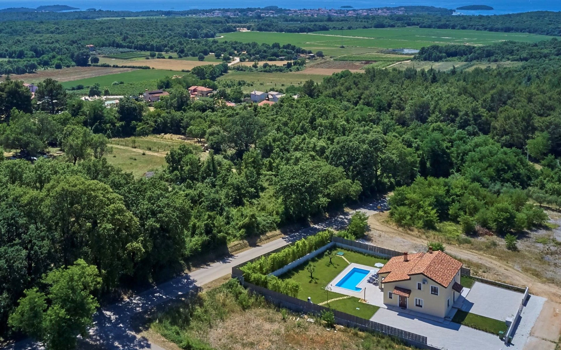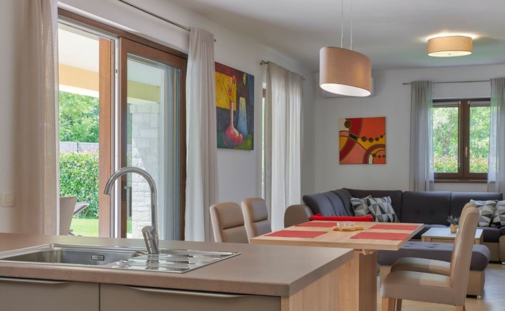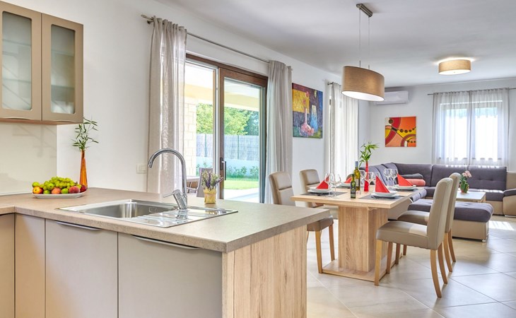Het gerenommeerde wijnhuis Damjanić is één van de toonaangevende wijnkelders in de regio en ligt op slechts 200 m van de villa. De toeristische badplaats Zelena Laguna ligt op 3,5 km afstand en biedt vele sport- en amusementsfaciliteiten (verhuur van waterskiliften, bootverhuur, etc.), en tot slot, op slechts 2,5 km afstand bevindt zich het grote waterpark Aquacolors.