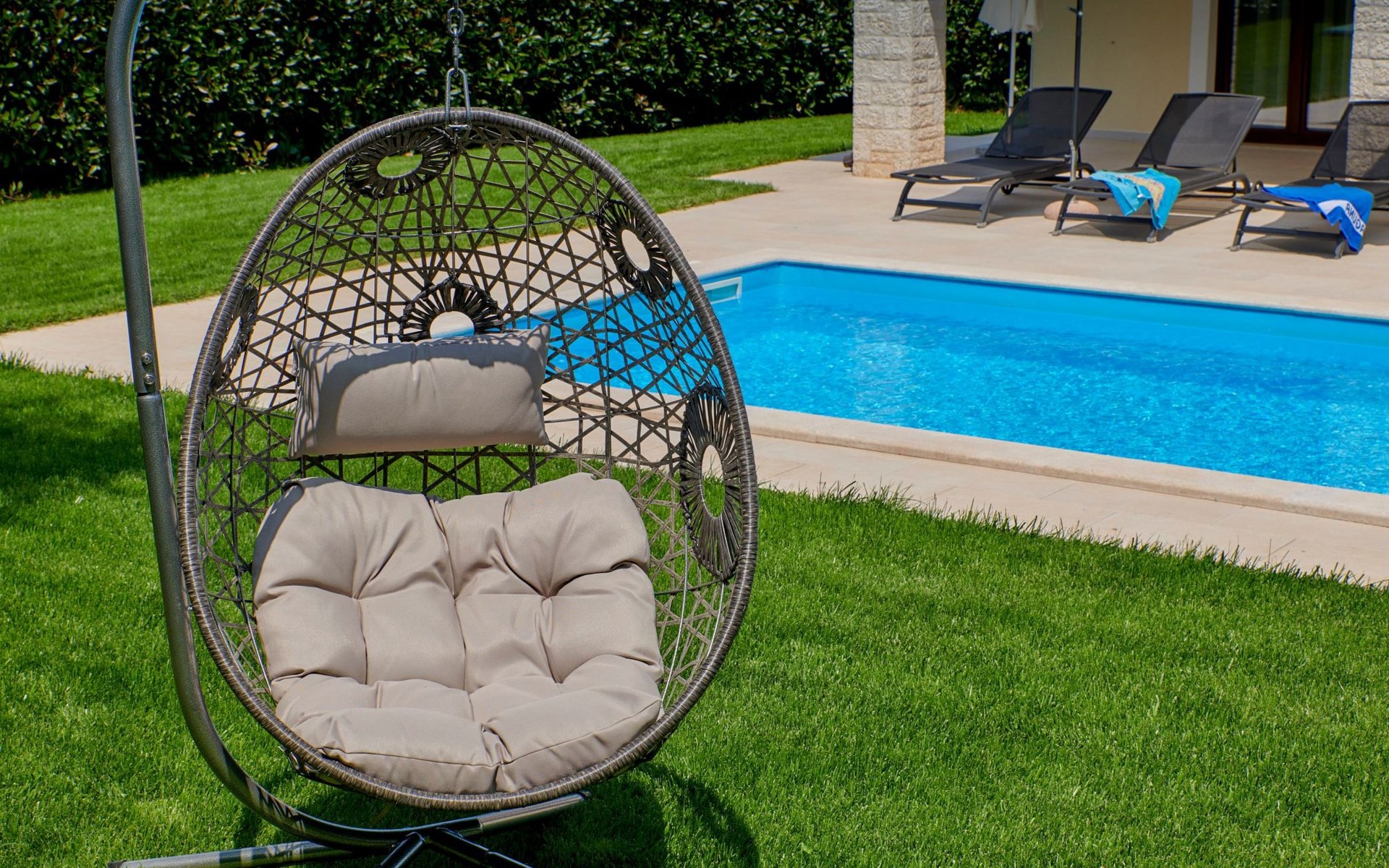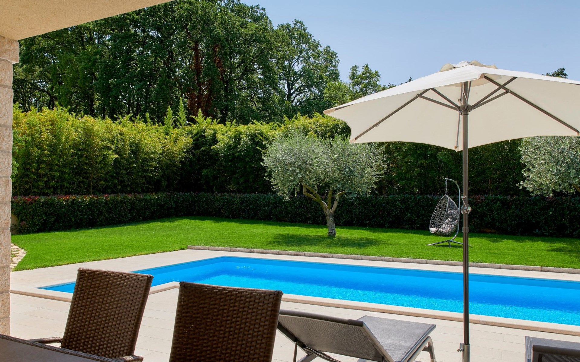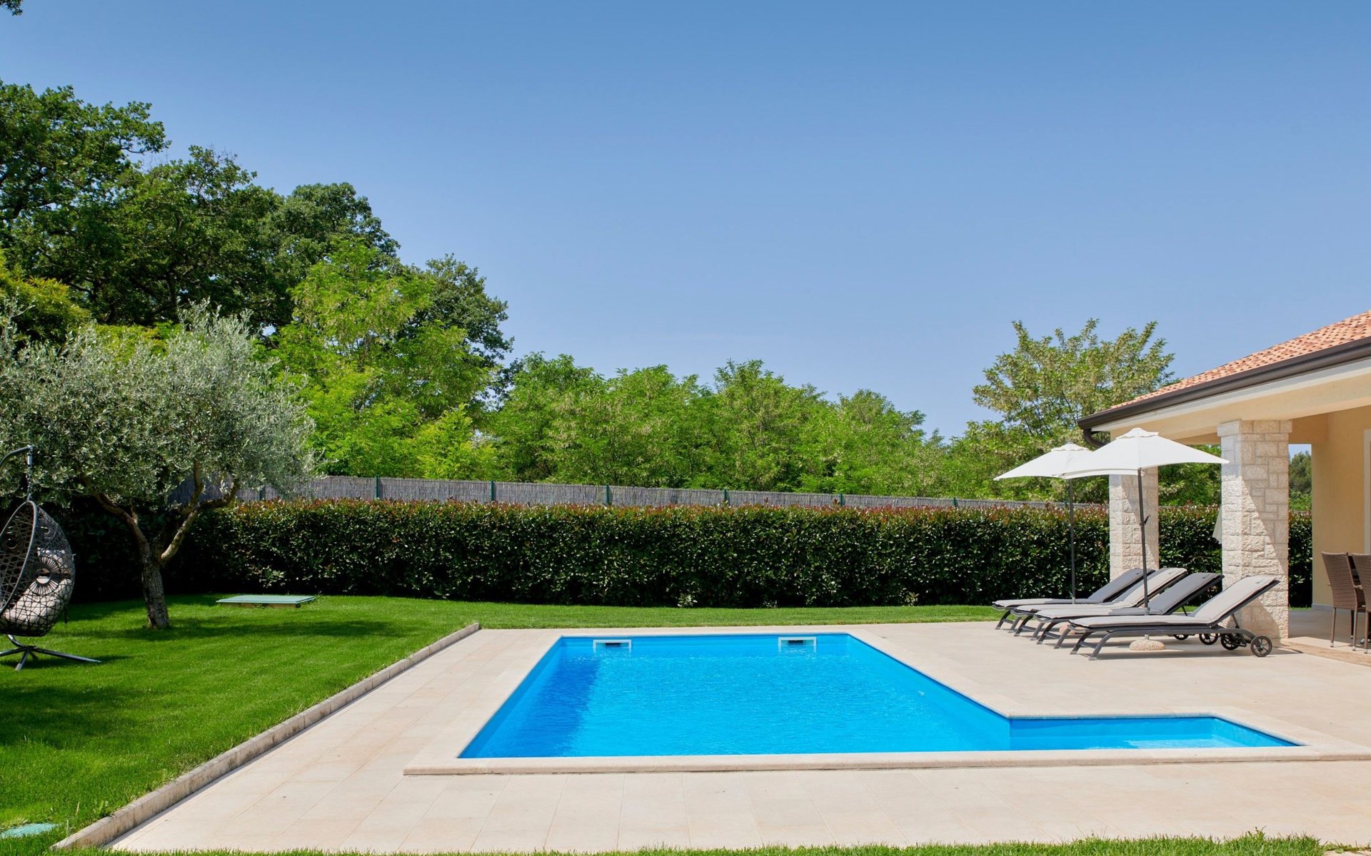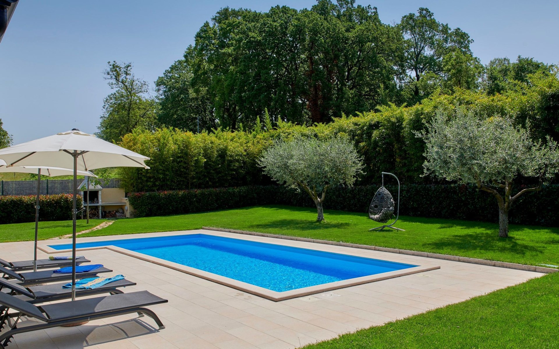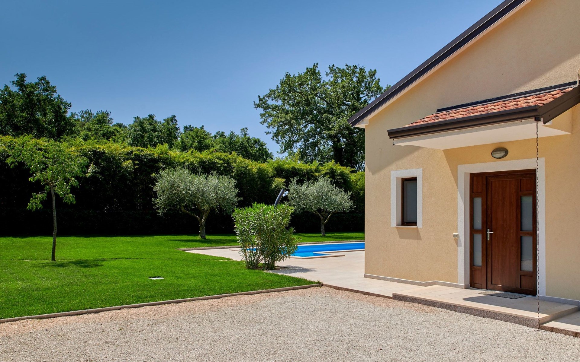 Het is voor exclusief gebruik van de gasten en biedt hen een zorgeloze en intieme vakantie omdat het op een rustige locatie buiten het dorp ligt.
