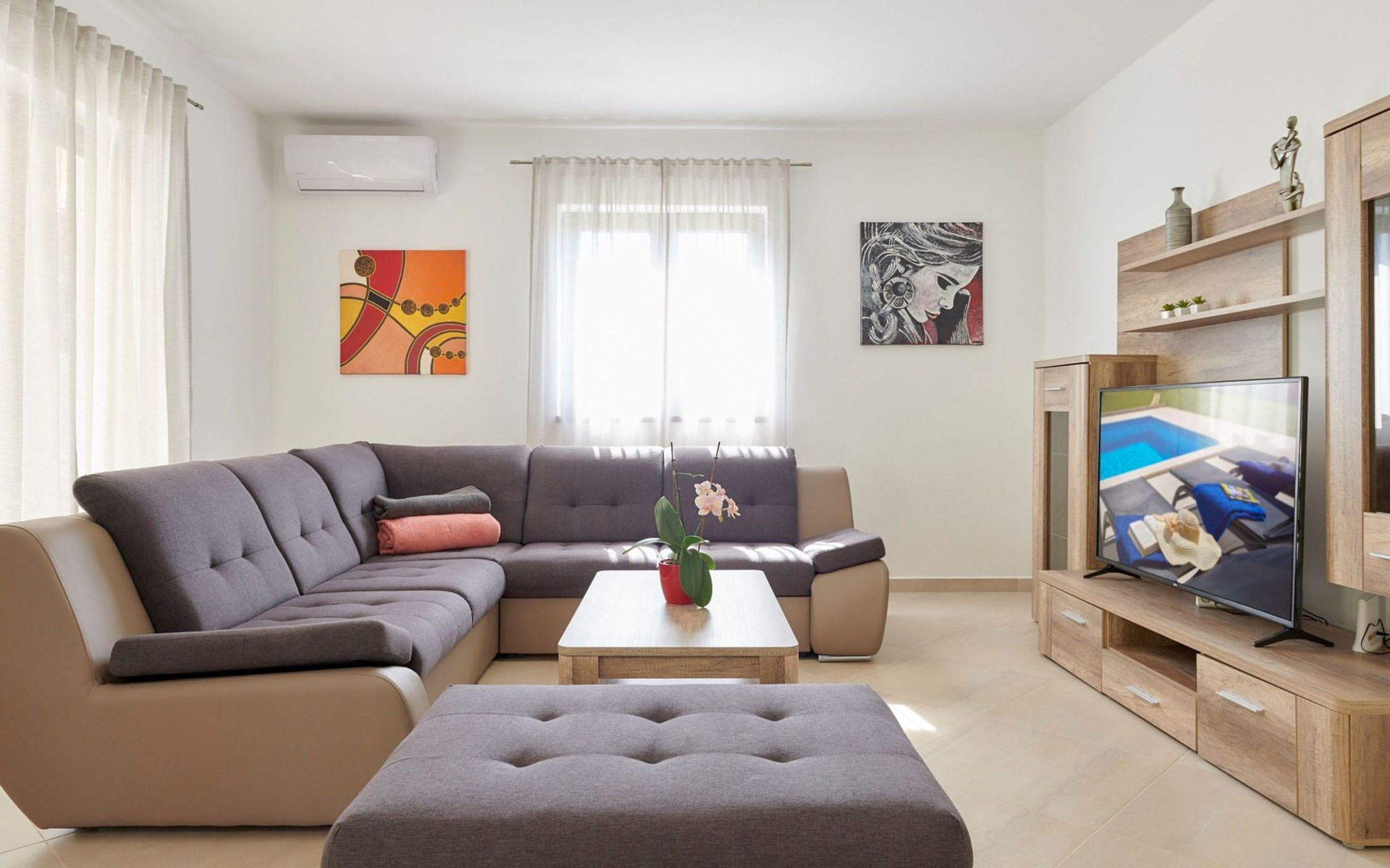 Villa Giovanna bestaat uit twee slaapkamers met airconditioning, twee badkamers met douche, een kleine was- en strijkruimte, een apart toilet, een eet- en woonkamer met airconditioning, een kleine berging en een volledig uitgeruste keuken met inductiekookplaat en vaatwasser.