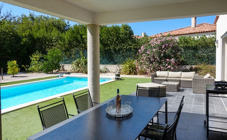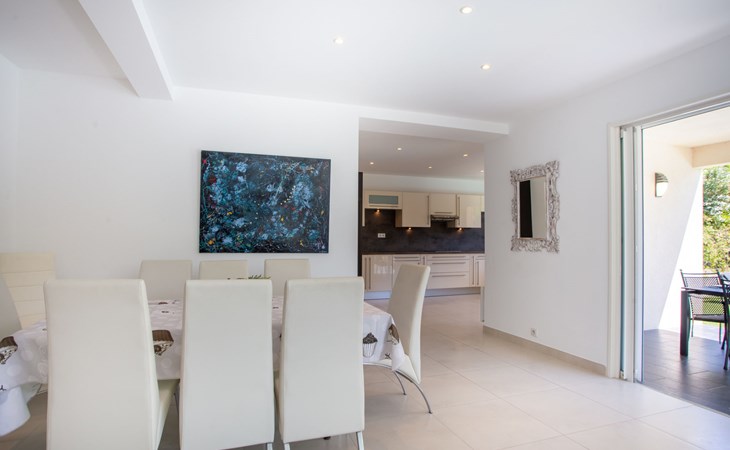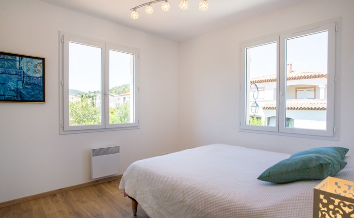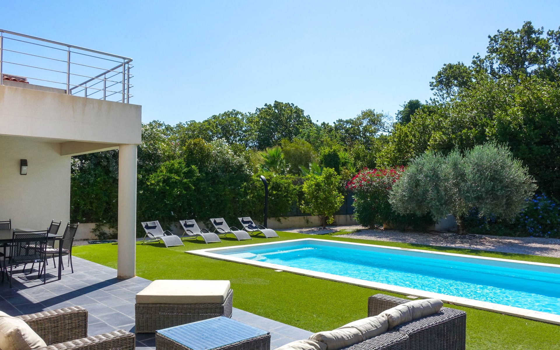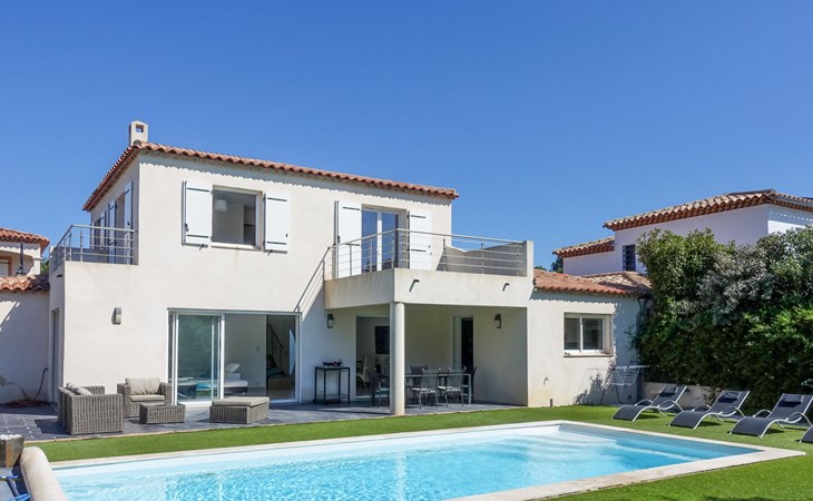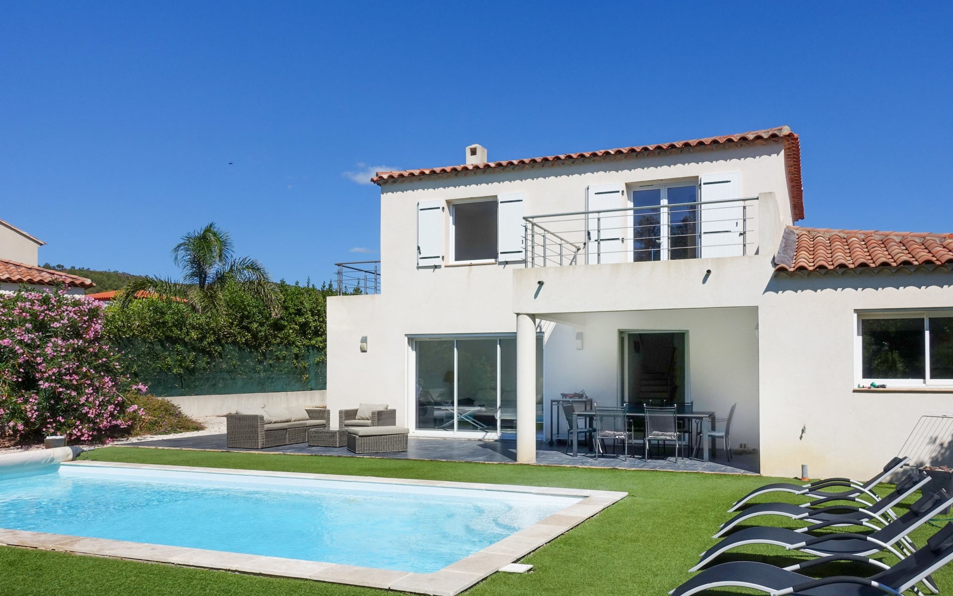 Bormes Les Mimosas: Comfortabele villa "Bastide de la Mer", van 2 verdiepingen, bouwjaar 2015. In de wijk La Favière, 550 m van zee, 550 m van het strand. Onderhoud zwembad door de eigenaar/tuinman. Voor alleengebruik: terrein 800 m2, openluchtzwembad hoekig, beveiligd (9 x 4 m, 150 - 150 cm diepte, seizoensgebonden beschikbaarheid: 01.Mei. - 30.Okt.) met alarminstallatie. Parkeerplaats (voor 2 auto's) op het terrein. Winkel 600 m, levensmiddelenwinkel, restaurant, bar, bakkerij, café 500 m, bushalte "Gare routière" 2.7 km, zandstrand "La Faviere" 2.7 km. Jachthaven 800 m, golfterrein (18 holes) 17 km. Attracties in de buurt: Magic World 26 km, Parc Olbius Riquier 22 km, Cavalaire 22 km, Hyères 22 km, Saint Tropez 40 km. Wandelgebied Sentiers du Littoral 3 km. De sleuteloverdracht vindt plaats bij het agentschap Interhome in Lavandou, 3 km.