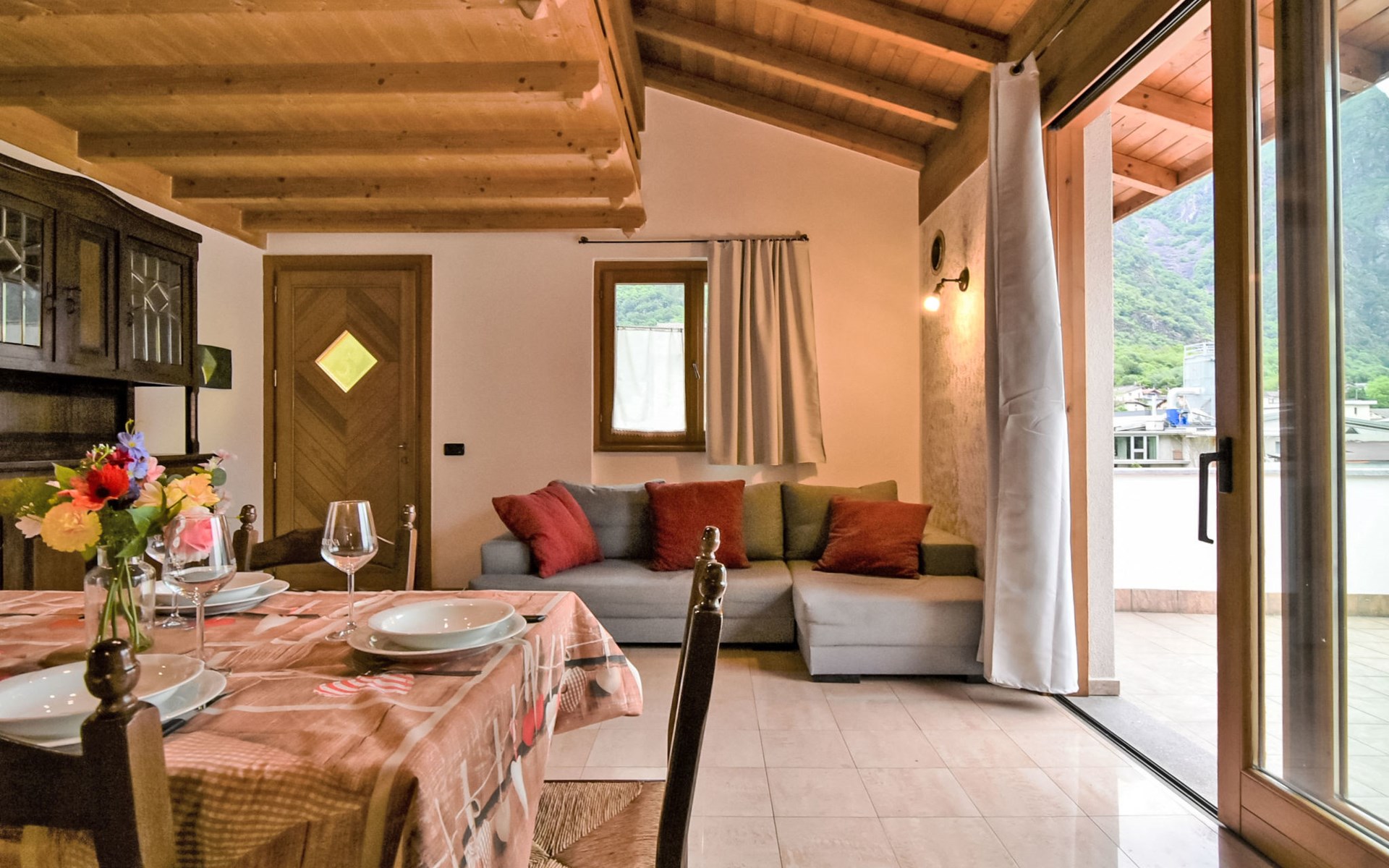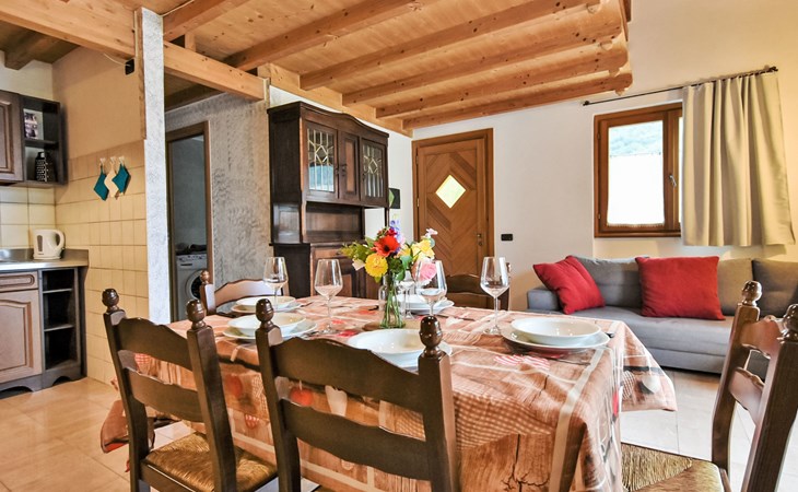 Klein, comfortabel appartementencomplex "Casa Elisa", 352 m boven zeeniveau, van 2 verdiepingen, vrijstaand. 2 appartementen in de woning. 5.5 km van het centrum van Chiavenna, rustige, zonnige ligging in een woonwijk, 2 km van de rivier, op het zuiden. In het huis: bergruimte voor fietsen, berging voor ski's, centrale verwarming. Parkeerplaats bij het huis, openbare parkeerplaatsen in de straat. Supermarkt 500 m, restaurant 50 m, bar 500 m, bushalte 450 m. Attracties in de buurt: Cascate della Boggia 3.2 km, Cascate dell' Acquafraggia 9 km, Passo di Maloja (CH) 37 km, Silvaplana (CH) 49 km, Saint Moritz (CH) 53 km. Bekende skigebieden kunnen gemakkelijk worden bereikt: Campodolcino 19 km, Madesimo 25 km. Bekende meren kunnen gemakkelijk worden bereikt: Lago di Mezzola 9 km, Lago di Como 20 km. Wandelgebied Sentiero Storico di Fondovalle, Traversata dei Monti, Sentiero Panoramico di Bregaglia.