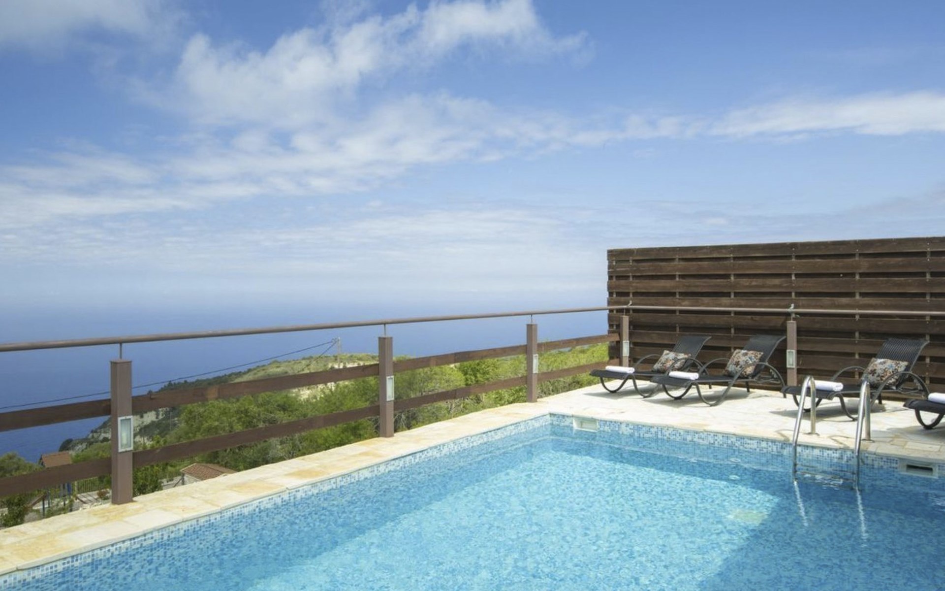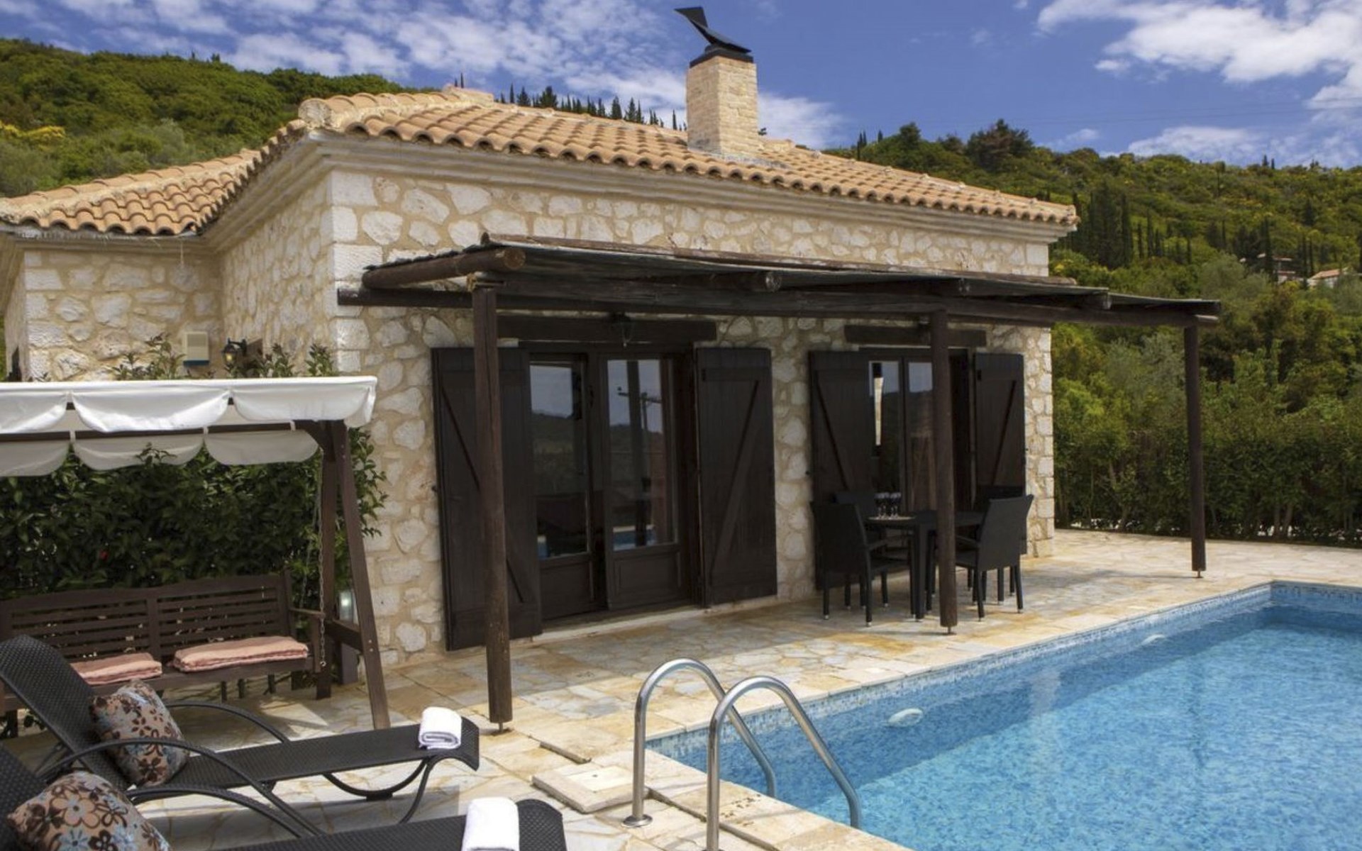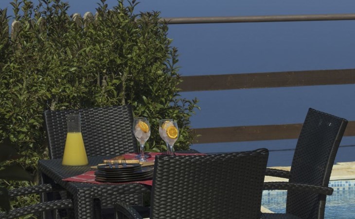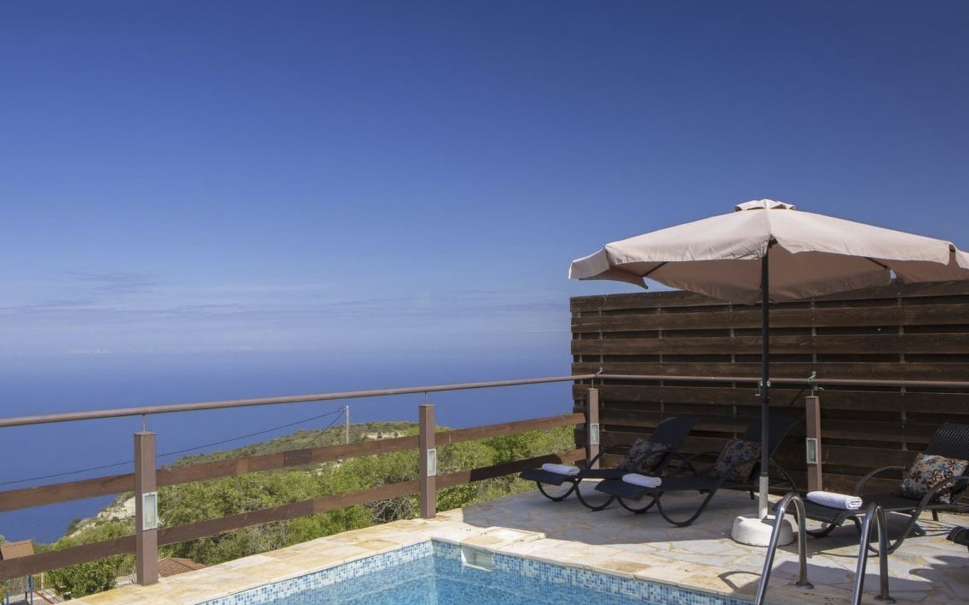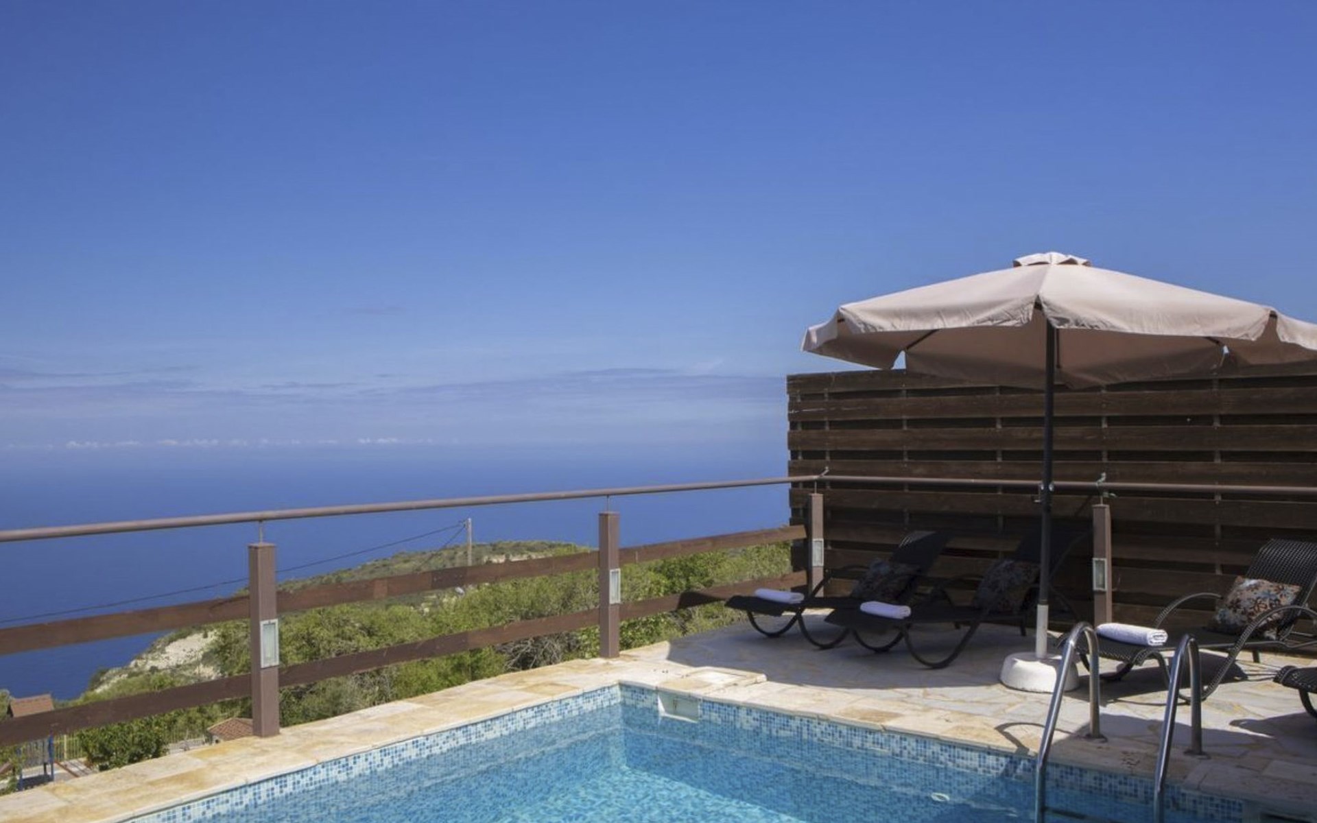 The villa can host up to 5 people. It has a comfortable living room with an open space fully equipped kitchen. The living room leads to the amazing private pool that offers a splendid sea view to the Ionian Sea. The guests can enjoy relaxing peaceful moments by the pool with their loved ones and appreciate the breathtaking sunsets the Ionian Sea has to offer.