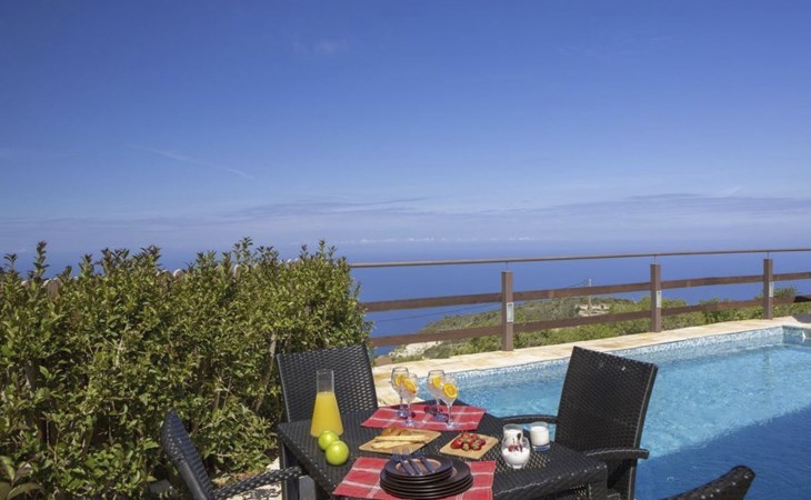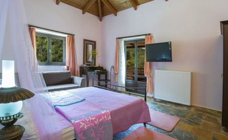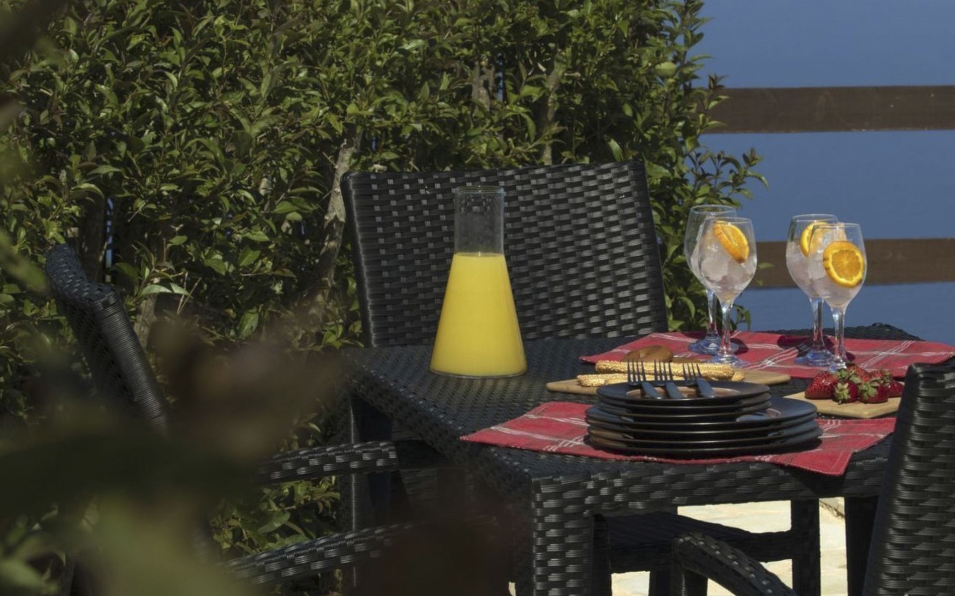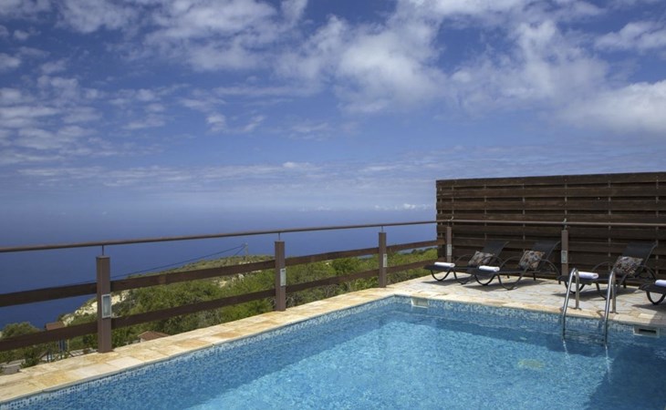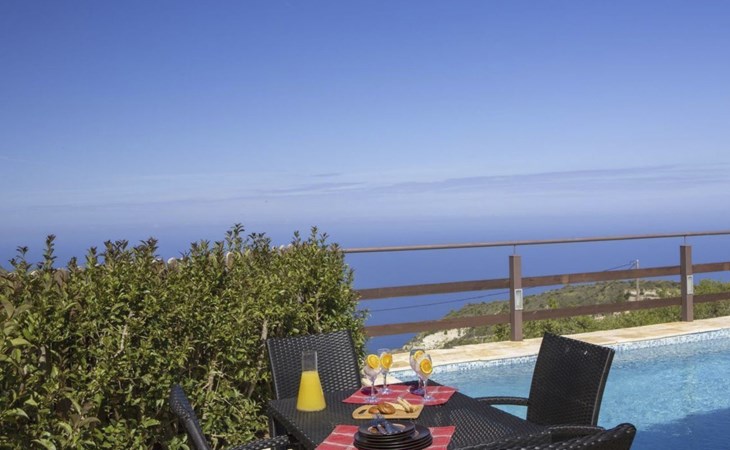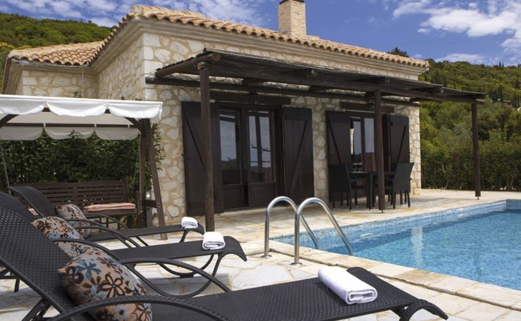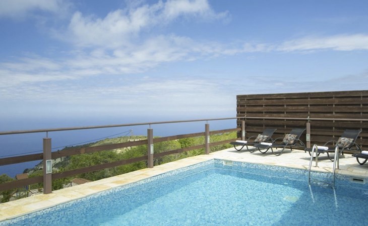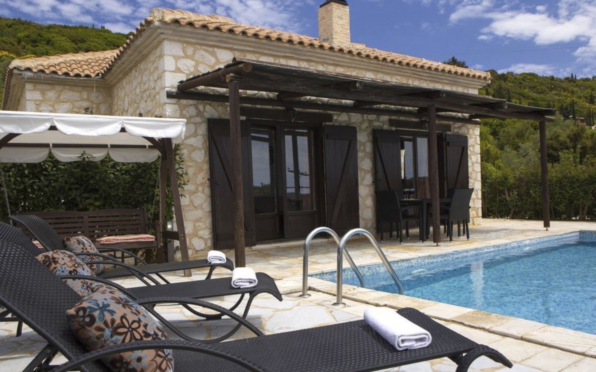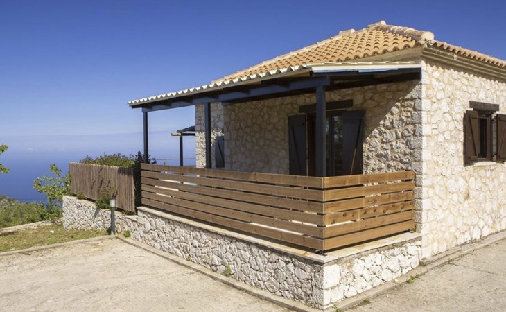 The villa can host up to 5 people. It has a comfortable living room with an open space fully equipped kitchen. The living room leads to the amazing private pool that offers a splendid sea view to the Ionian Sea. The guests can enjoy relaxing peaceful moments by the pool with their loved ones and appreciate the breathtaking sunsets the Ionian Sea has to offer.