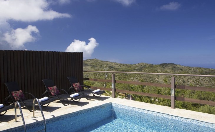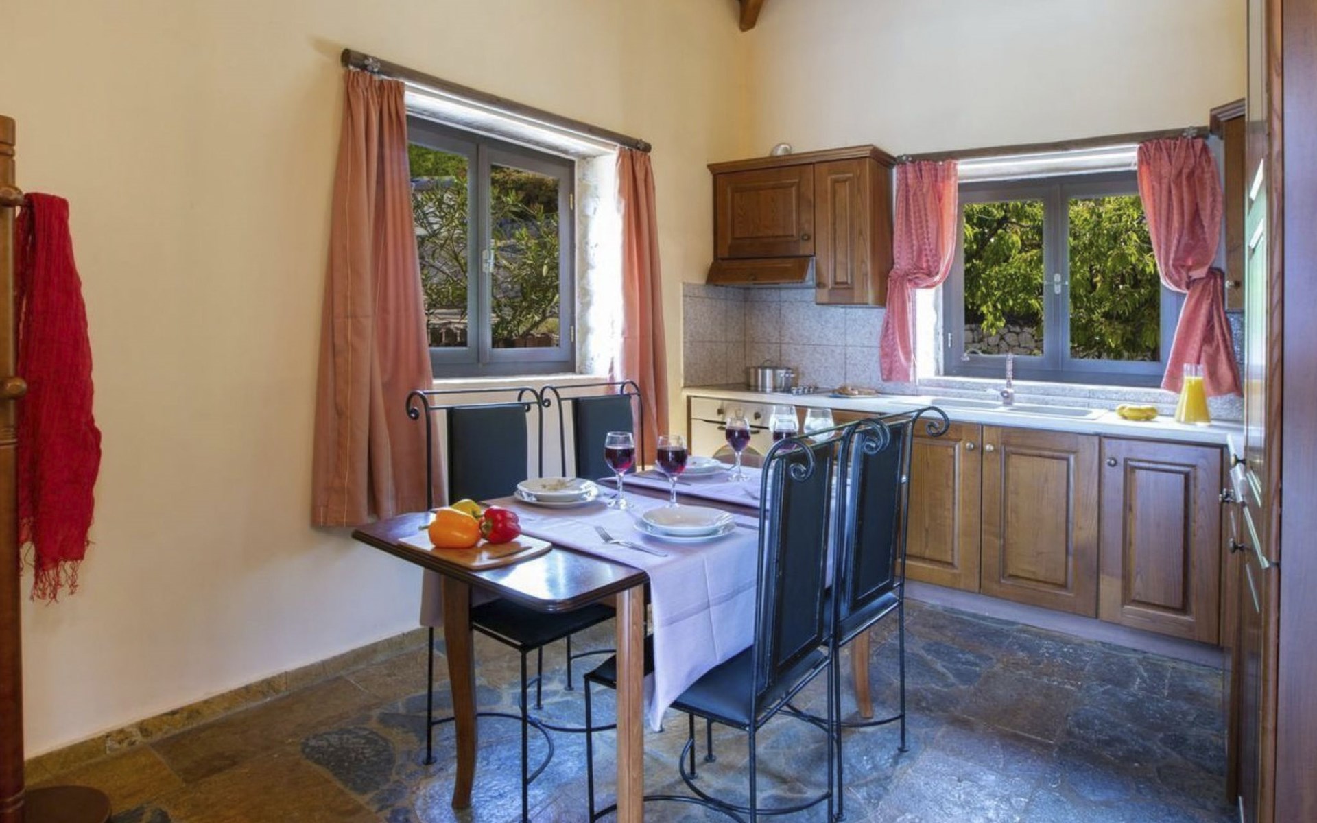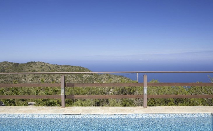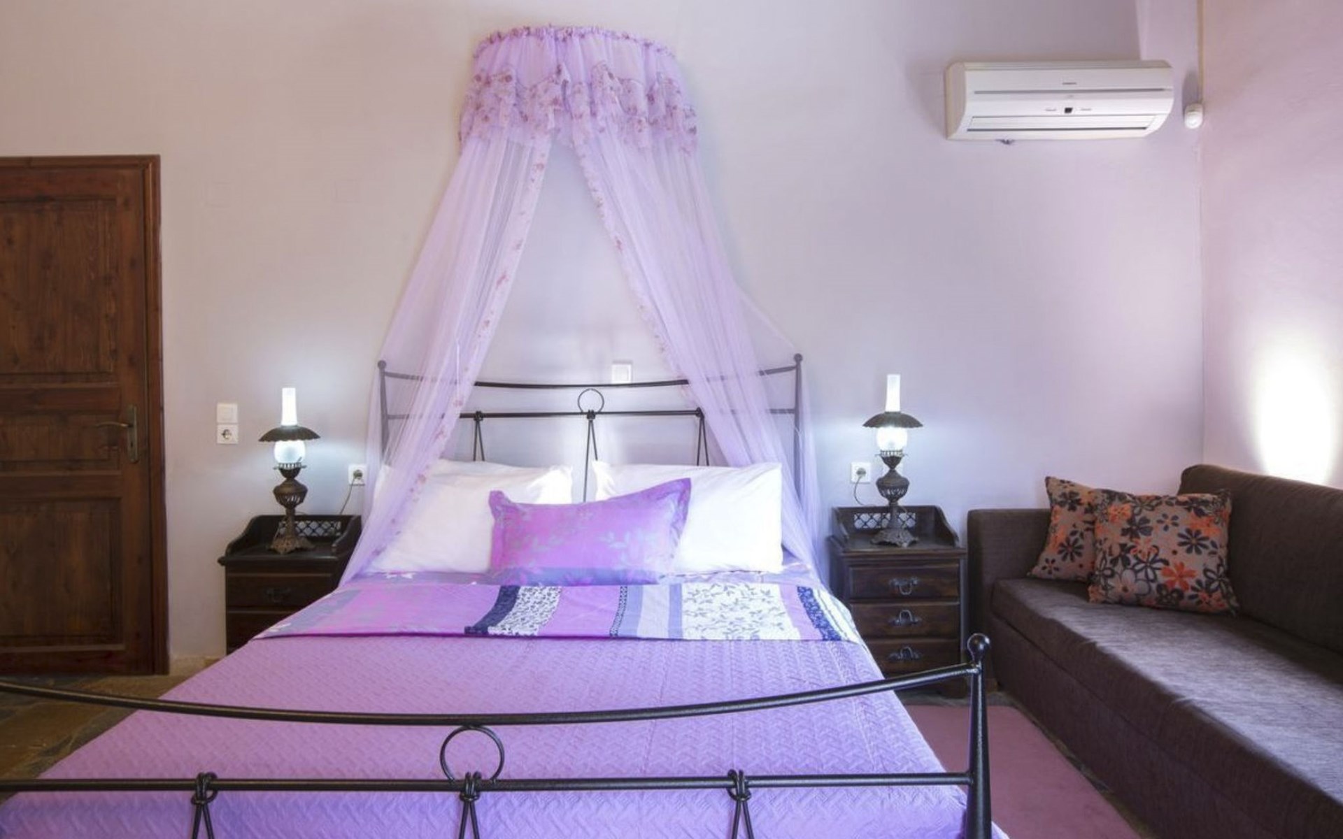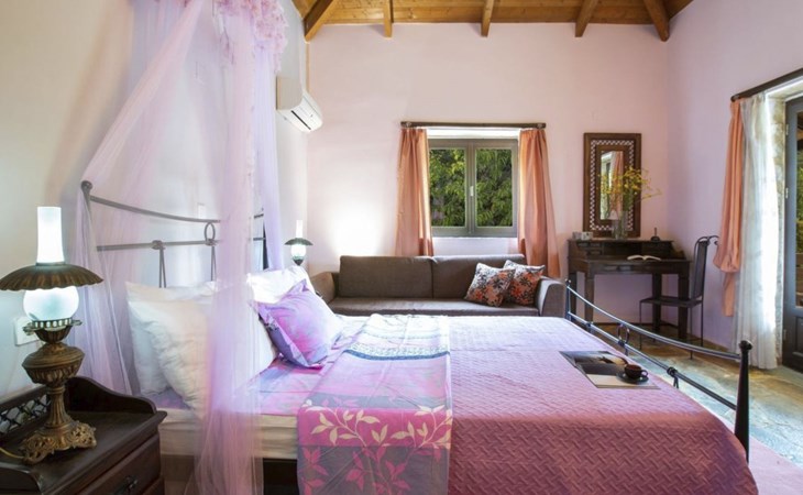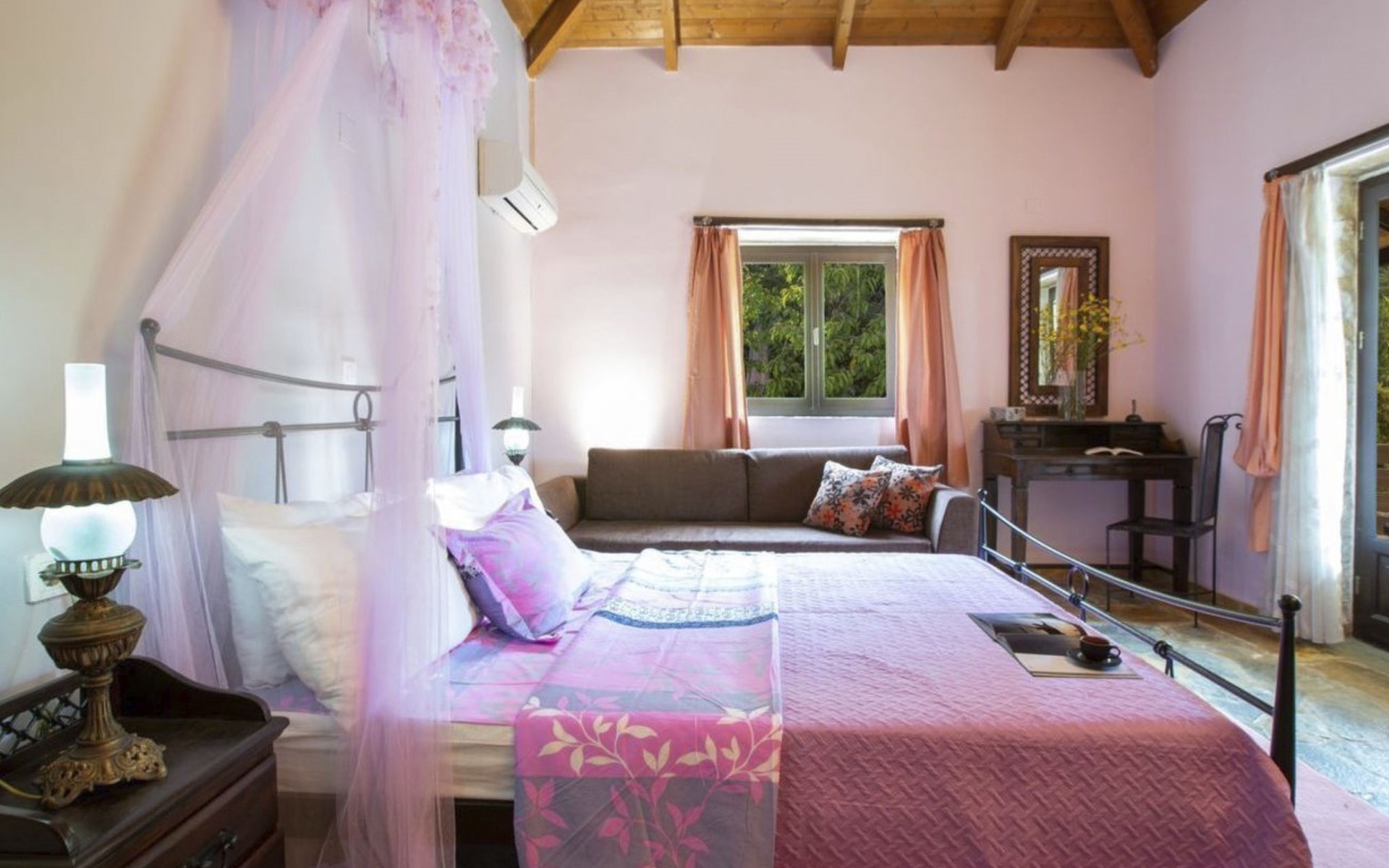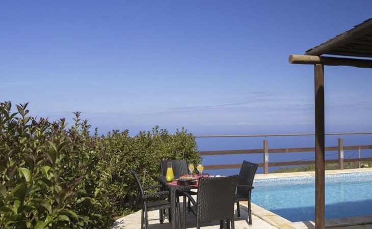 The villa can host up to 5 people. It has a comfortable living room with an open space fully equipped kitchen. The living room leads to the amazing private pool that offers a splendid sea view to the Ionian Sea. The guests can enjoy relaxing peaceful moments by the pool with their loved ones and appreciate the breathtaking sunsets the Ionian Sea has to offer.