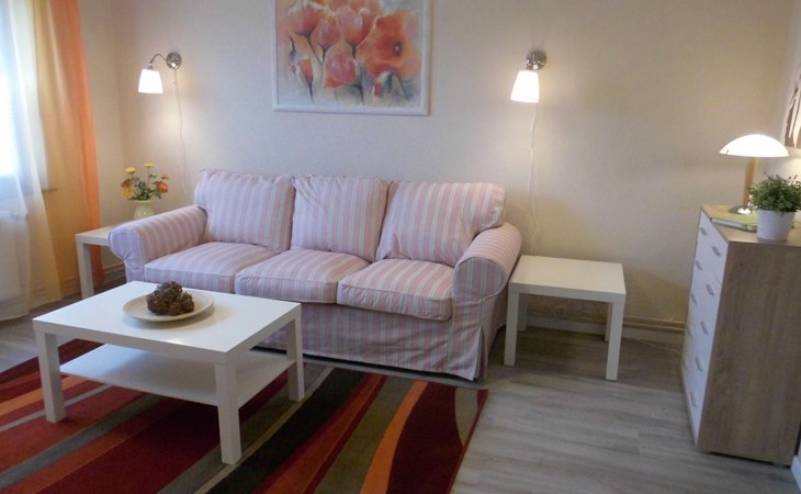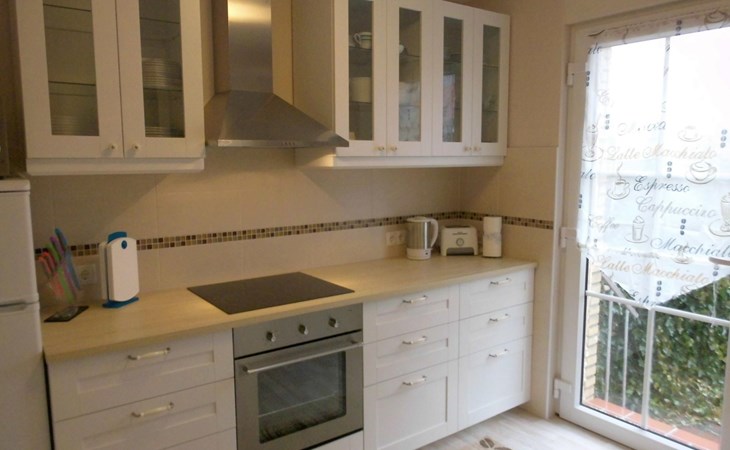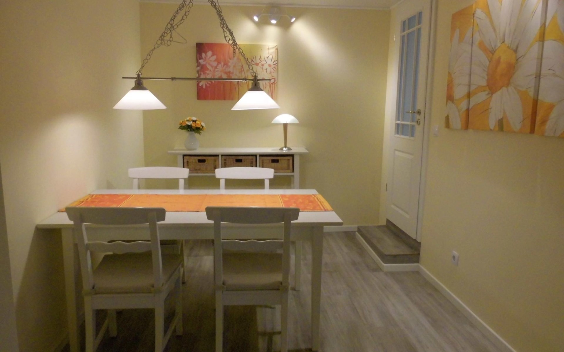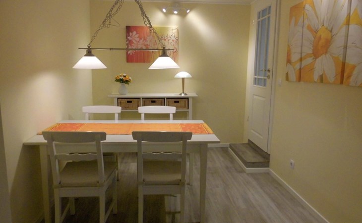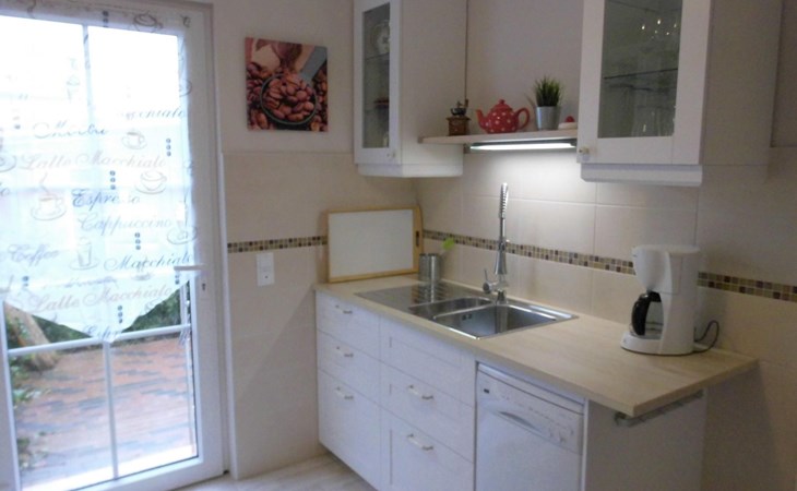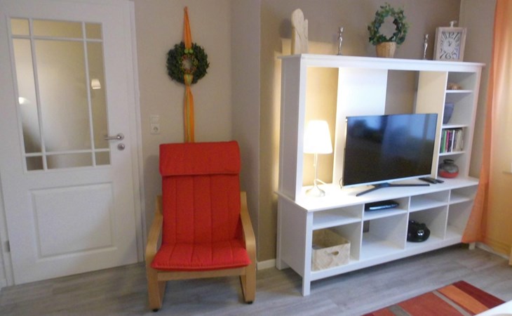The apartment has an outdoor area with a sitting corner with garden furniture, a parasol and a grill. A car parking space is available. Pets are allowed.It is about 10 minutes on foot to the pedestrian zone in Kappeln, with many little shops, local restaurants and a lovely old town inviting you to stroll around. You can go on boat trips on the Schlei and the Baltic Sea from the idyllic harbour. Kappeln with its beautiful surroundings is known from the ZDF television series “Der Landarzt”.