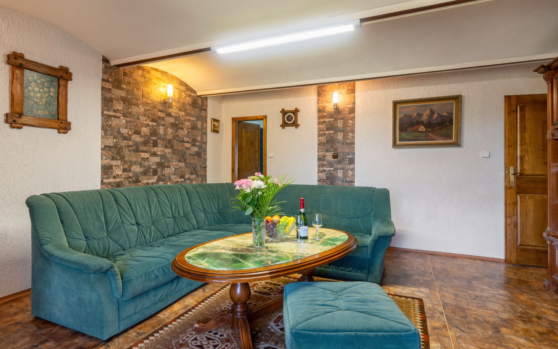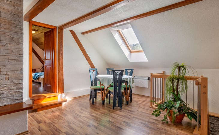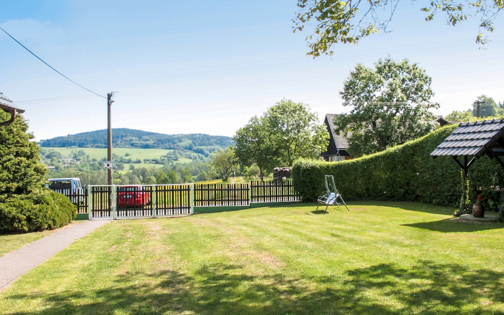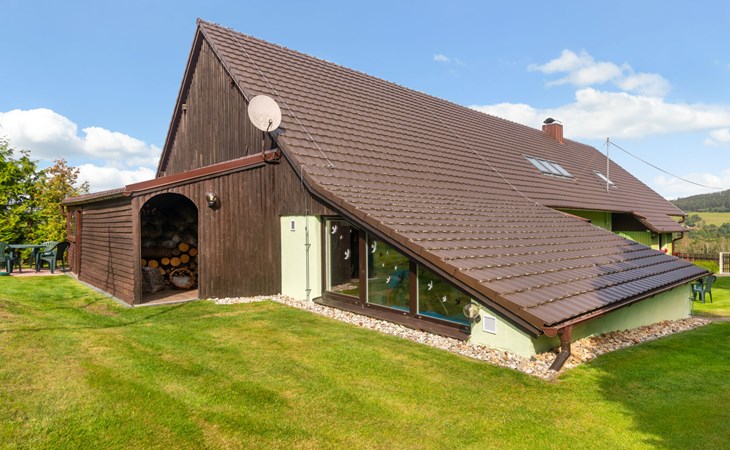 Zeer mooi landhuis "Haus Polivka", 400 m boven zeeniveau, omgeven door weiden en velden. In de plaats Hůrka u Němčic, 12 km van het centrum van Klatovy, 50 km van het centrum van Bayerisch Eisenstein, rustige, zonnige ligging, 15 km van het skigebied. Voor alleengebruik: terrein 3.200 m2 (omheind), gazon en bomen, weide, openluchtzwembad, overdekt zwembad verwarmd (6 x 3 m, 150 cm diepte, seizoensgebonden beschikbaarheid: 01.Jan. - 31.Dec.). Tennisbaan, tafeltennis, basketbal, volleybal, badminton, volleybalveld, terras, tuinmeubelen, barbecue, kinderspeelplaats (schommel). In het huis: sauna, biljart, speelkamer. Parkeerplaats (voor 6 auto's) bij het huis. Winkel 3 km, supermarkt 12 km, restaurant 12 km, bushalte "Němčice" 1 km, station "Klatovy" 12 km, openluchtzwembad 12 km, overdekt zwembad 12 km. Skilift 15 km, stoeltjeslift 40 km, skipisten 40 km, skiverhuur 40 km, skischool 40 km, kinderskischool 40 km.