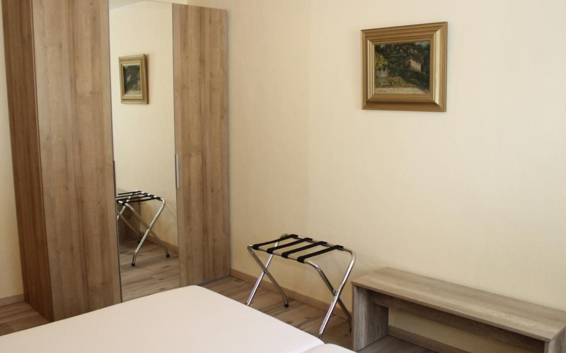 On 75 m² of living space you will find everything you need to recover from excursions, hiking or cycling tours in a modern holiday flat, including a large shower, a large sofa and two comfortable armchairs, TV, DVD player and hi-fi system, as well as a fridge, coffee machine, kettle, toaster, microwave, egg cooker, blender, electric cooker and oven. The holiday flat on the first floor offers space for 2 to 4 people (additional cot possible) and consists of a living room, bedroom, children's/bedroom, kitchen and bathroom with shower and WC. The flat near the Elbe was newly furnished in May 2019. In the separate wellness room you can work up a sweat in our infrared cabin or on the home trainer (additional service for a fee). Short descriptionOther : Non-smoking houseShort description 1Number of kitchens : 1SurroundingsSports facilities in the area : Mountaineering, climbing, mountain biking, cycling tours, riding arena / riding possibilities, rowing, sports centre, tennisSurroundings 1Excursion possibilities : Pirna is located between Dresden (via the motorway in 25 min. in the city centre) and the Saxon Switzerland National Park with the Bastei and the Rathen rock stage. In addition to Dresden with its wonderful excursion destinations such as the Frauenkirche, the Zwinger, the Semper Opera House, Dresden Castle, the Blue Wonder, the Great Garden with zoo and park railway, Pillnitz Castle is in the immediate vicinity (5 km) of the holiday flat. Other excursion destinations include the watchmaking town of Glashütte, the Königstein Fortress, the Grosssedlitz Baroque Garden, the castles in Stolpen and Hohenstein, the Bastei, the Rathen Rock Theatre and the Pirna GDR Museum.local description : Pirna is a beautiful small town between Dresden and Saxon Switzerland. The lovingly restored old town centre invites you to stroll and linger. Other sports and leisure activities : Cycling, skating, climbing / mountaineering, canoeing & boat trips, steamboat trips, hiking, shopping, Geibeltbad with bathing and sauna area, Elbe-Freizeitland Königstein, bobsleigh and summer toboggan run AltenbergGarden and outdoor facilitiesRecreational facilities at the property : Table tennisGarden equipment : Garden furniture available, barbecue, play equipment