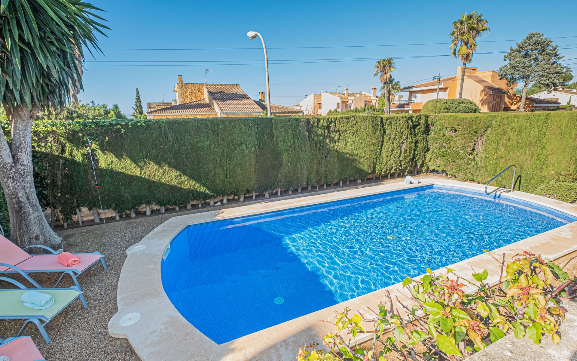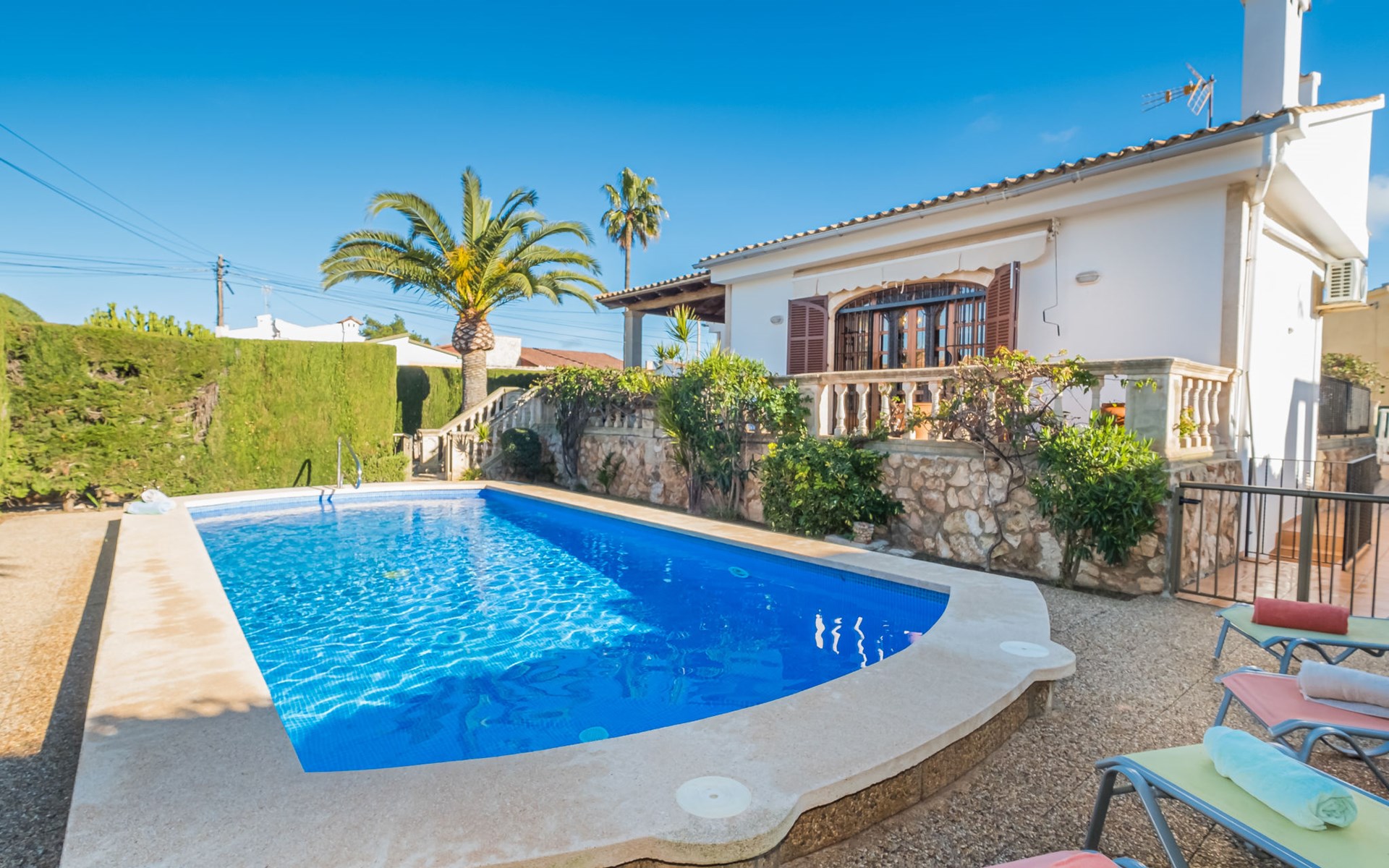 Bahía Azul 17 km van Llucmajor: Zeer groot, gezellige, comfortabele villa "Dofins Bahia Azul", gerenoveerd. In de wijk Bahía Azul, in de plaats Llucmajor, rustige, zonnige ligging villa wijk, 25 km van de bosrand, 800 m van zee. Voor alleengebruik: verzorgde tuin met gazon en planten, binnenplaats, openluchtzwembad hoekig (8 x 4 m, 100 - 220 cm diepte, seizoensgebonden beschikbaarheid: 01.Jan. - 31.Dec.). Patio, prieel, prieel, tuinmeubelen, barbecue, onderhoud zwembad door de eigenaar/tuinman. In het huis: internetaansluiting, Internet (WiFi), air-conditioning, wasmachine, droger. Parkeerplaats bij het huis op het terrein. Supermarkt 750 m, restaurant 650 m, bar 700 m, bakkerij 650 m, fietsverhuur 1 km, bushalte "Badia Gran (31112), 07609 Badia" 400 m, zandstrand "El Arenal" 9.5 km, rotsstrand "Playa Maioris" 4.2 km, baai 900 m. Jachthaven 9.5 km, jachthaven 9.5 km, golfterrein (18 holes) 15 km, tennis 550 m, wandelroutes 900 m vanaf het huis, fietspad. Attracties in de buurt: Sa Torre - Son Verí-Cala Blava-Cala Pí, Llucmajor Local Market Wednesdays 9-14h 15 km, El Arenal Can Pastilla 10 km, Palma de Mallorca 21 km, Es Trenc Beach 35 km, FAN Mallorca Shoping Center 17 km. Wandelgebied Santuari de Cura 20 km, Serra de Tramuntana 45 km. Auto noodzakelijk. Geschikt voor families, geschikt voor senioren. Het objekt is geschikt voor 6 volwassenen groepen jongeren uitsluitend op aanvraag. De eigenaar accepteert geen jeugdgroepen. Vliegveld 18 km van het huis. De omgeving is gevoelig voor geluidsoverlast. Gelieve geen lawaai te maken en de rust te bewaren.