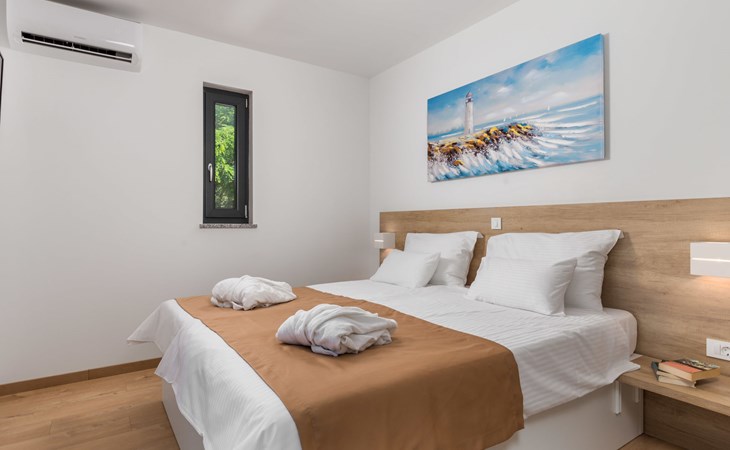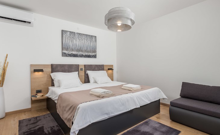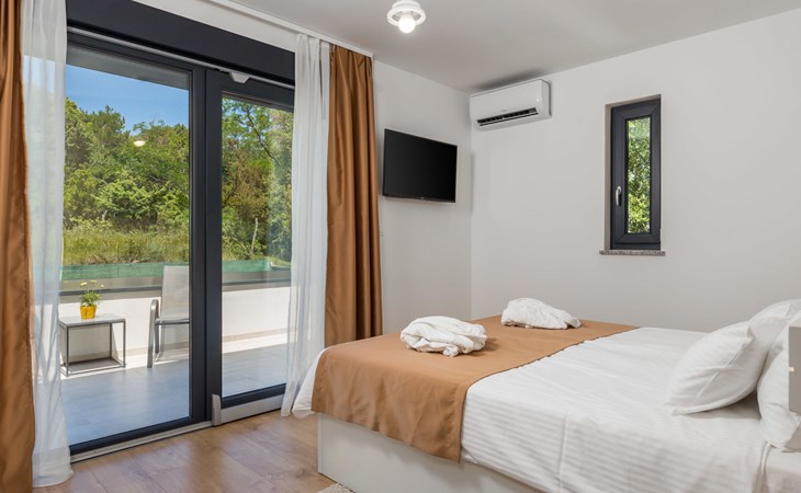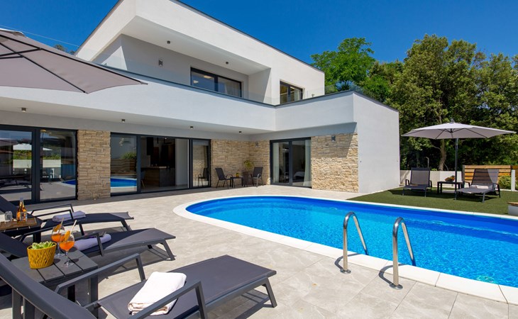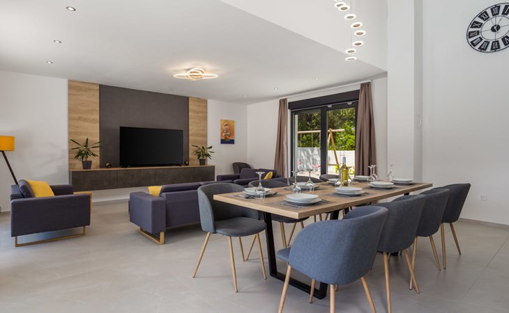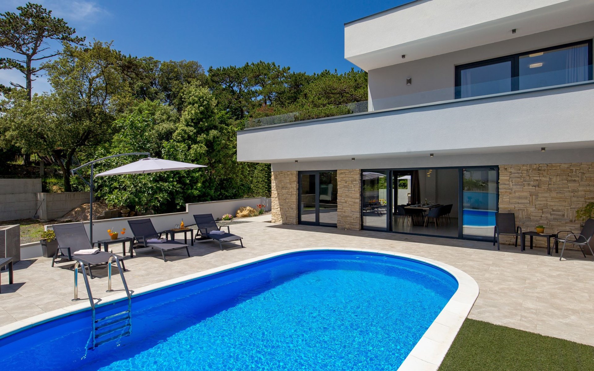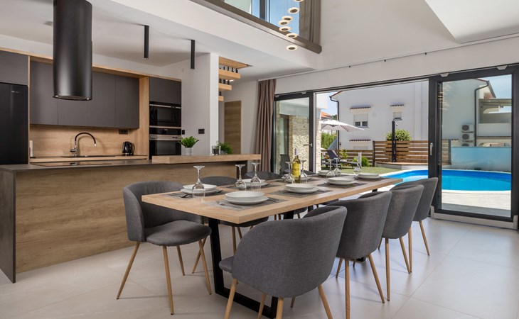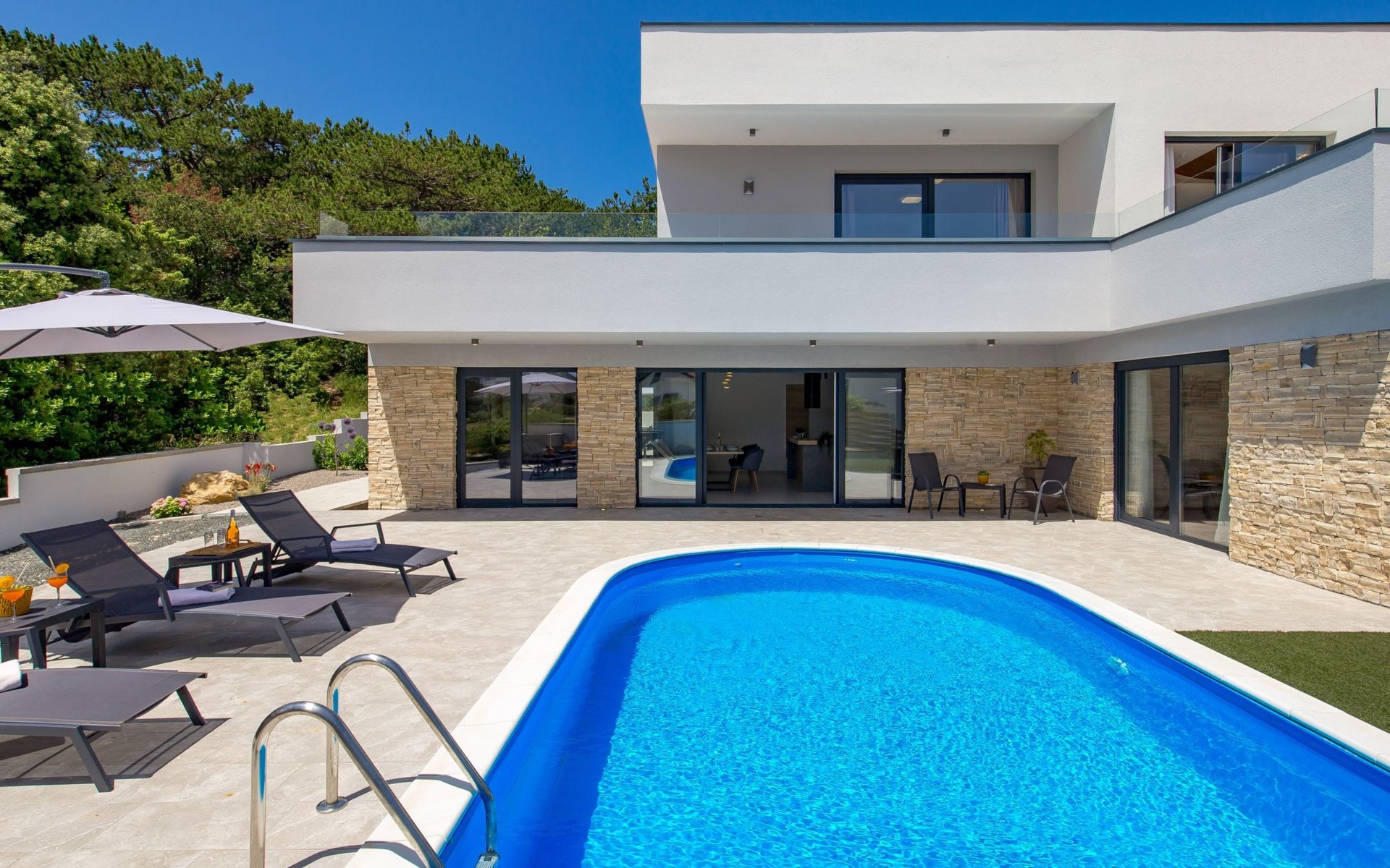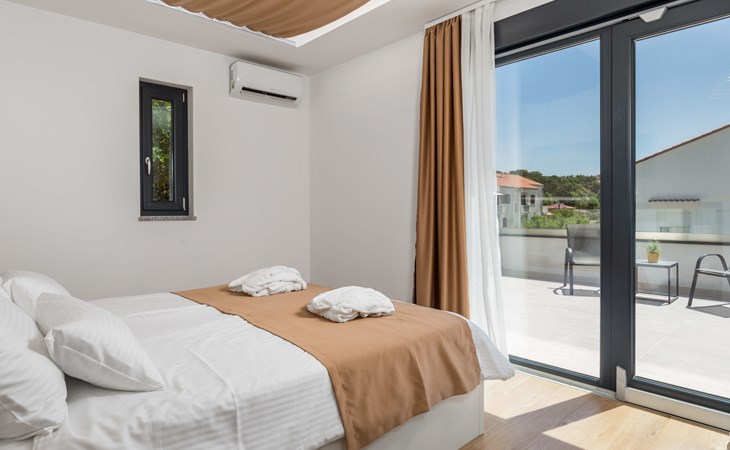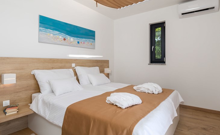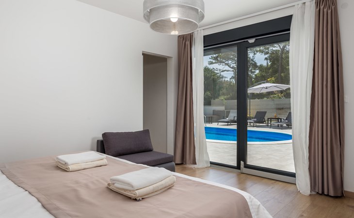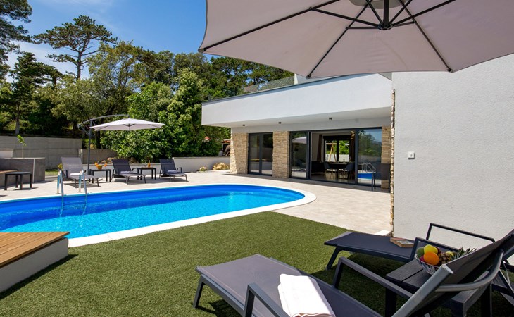 Villa "Pinnidae", van 2 verdiepingen, bouwjaar 2021. 1.3 km van het centrum van Lopar, 14 km van het centrum van Rab, van zee, 200 m van het strand. Voor alleengebruik: terrein 700 m2, openluchtzwembad verwarmd (32 m2, 140 cm diepte, seizoensgebonden beschikbaarheid: 15.Mrt. - 15.Nov.). Buitendouche, patio, barbecue, onderhoud zwembad door de eigenaar/tuinman. In het huis: internetaansluiting, sauna, hot tub, spa centrum, wasmachine. Parkeerplaats (voor 3 auto's) op het terrein. Winkel 700 m, supermarkt 1.5 km, restaurant 100 m, bushalte 550 m, veerboot 200 m, zandstrand 700 m, betonnen strand 200 m. Groepen jongeren uitsluitend op aanvraag. Vliegveld 60 km van het huis. Als er zwembad verwarming nodig is, is het noodzakelijk om dit 7 dagen van te voren aan te geven.