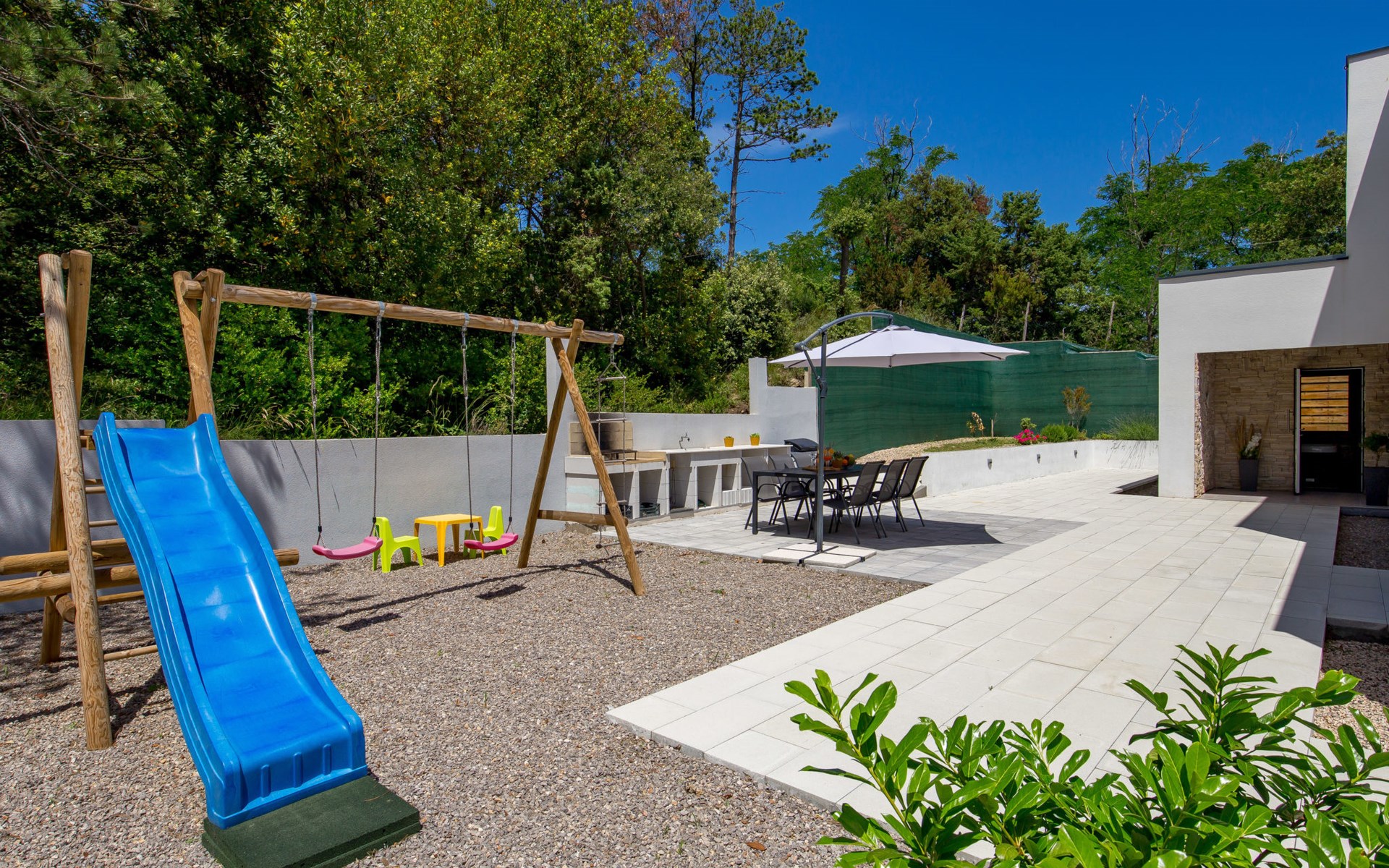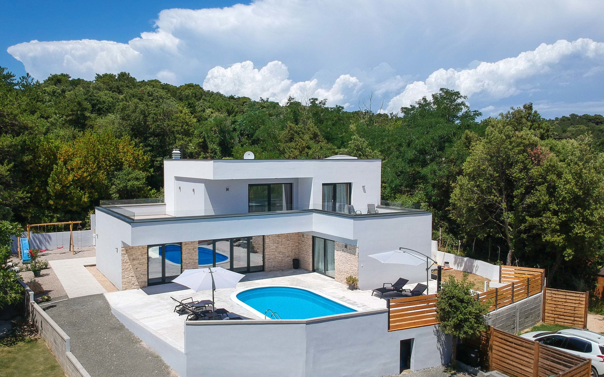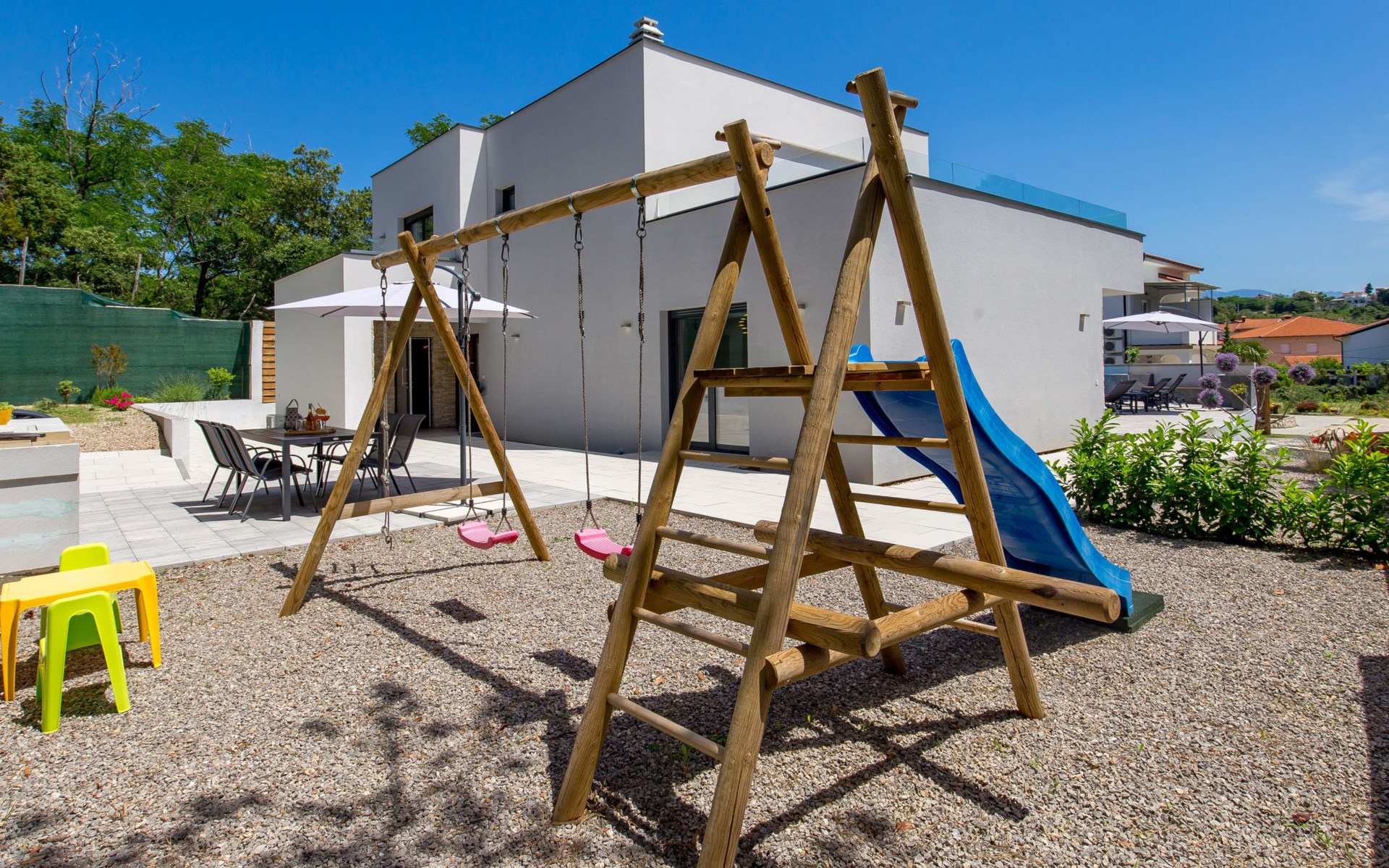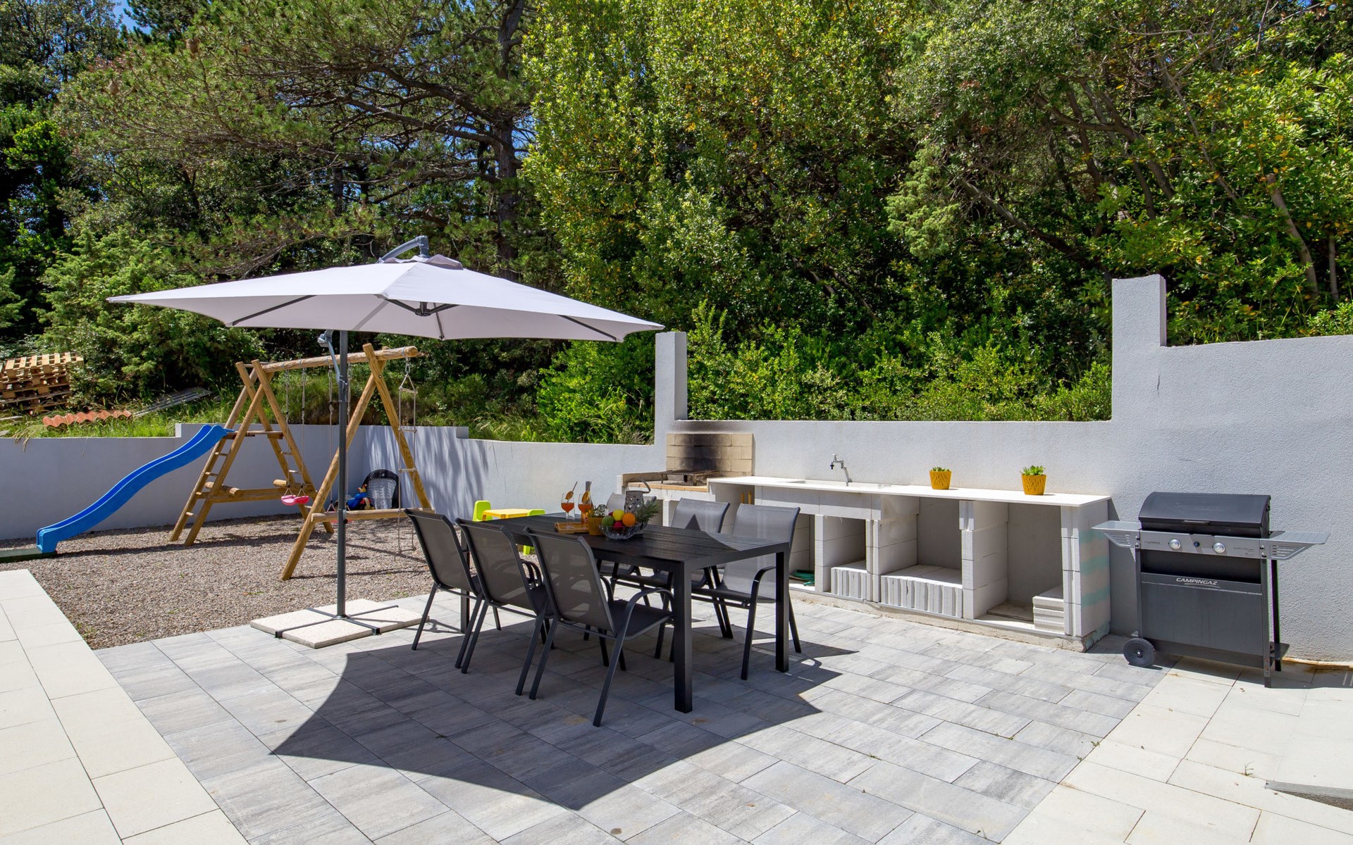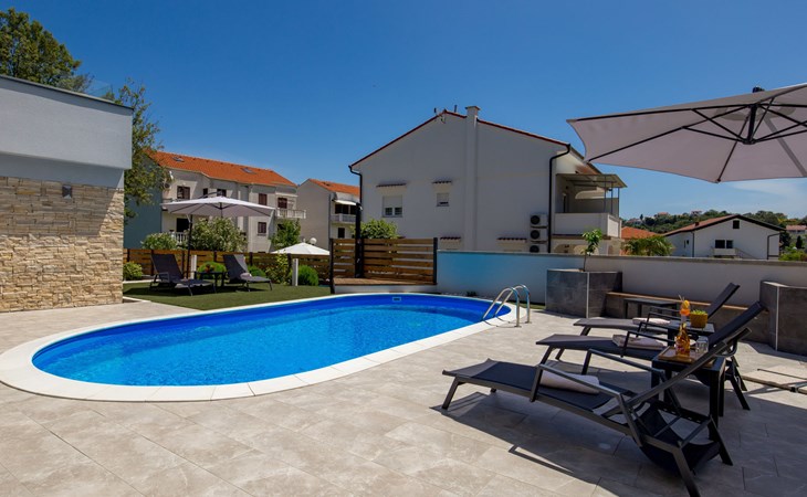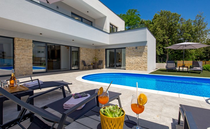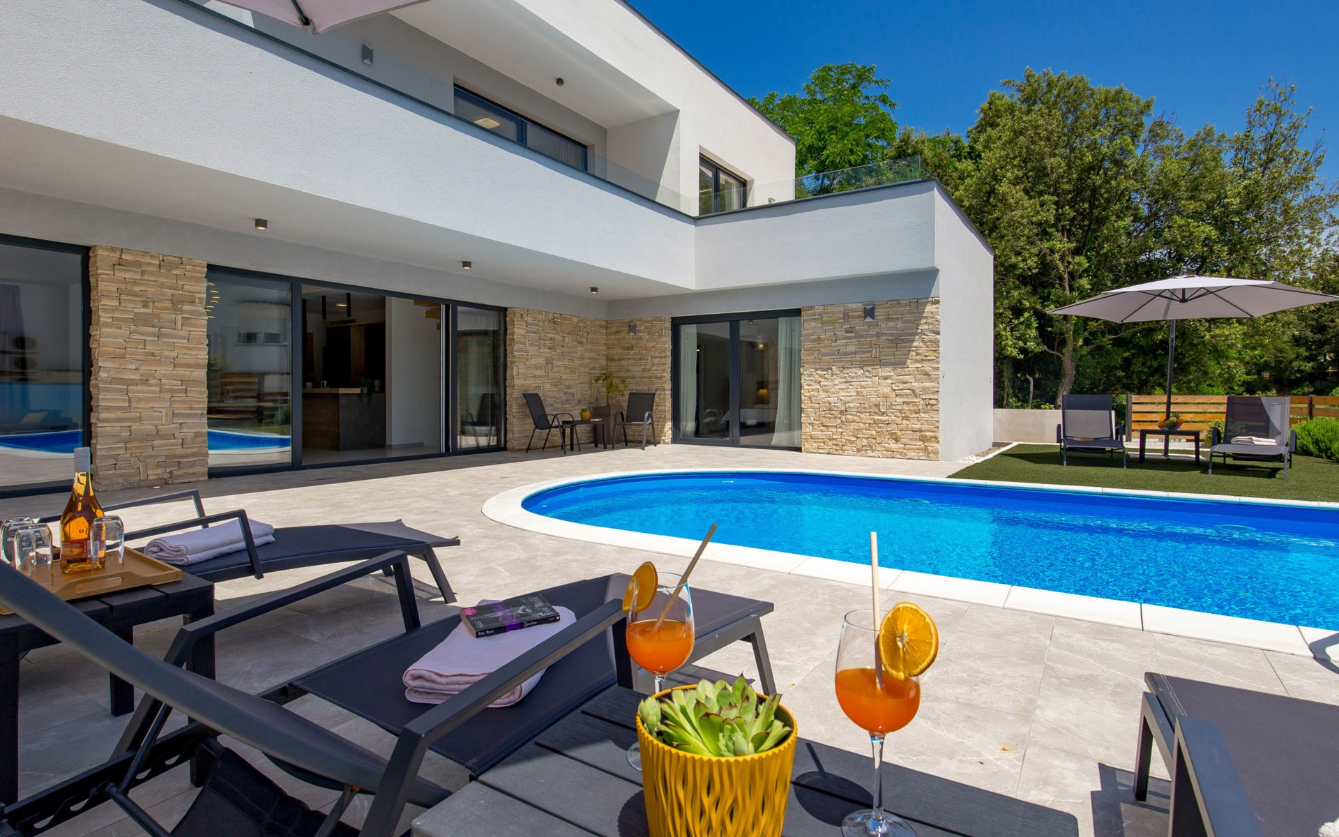 Villa "Pinnidae", van 2 verdiepingen, bouwjaar 2021. 1.3 km van het centrum van Lopar, 14 km van het centrum van Rab, van zee, 200 m van het strand. Voor alleengebruik: terrein 700 m2, openluchtzwembad verwarmd (32 m2, 140 cm diepte, seizoensgebonden beschikbaarheid: 15.Mrt. - 15.Nov.). Buitendouche, patio, barbecue, onderhoud zwembad door de eigenaar/tuinman. In het huis: internetaansluiting, sauna, hot tub, spa centrum, wasmachine. Parkeerplaats (voor 3 auto's) op het terrein. Winkel 700 m, supermarkt 1.5 km, restaurant 100 m, bushalte 550 m, veerboot 200 m, zandstrand 700 m, betonnen strand 200 m. Groepen jongeren uitsluitend op aanvraag. Vliegveld 60 km van het huis. Als er zwembad verwarming nodig is, is het noodzakelijk om dit 7 dagen van te voren aan te geven.