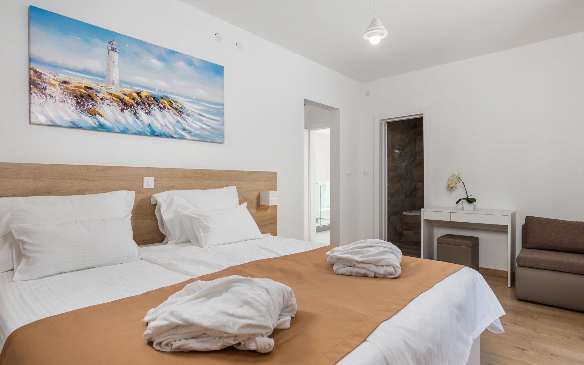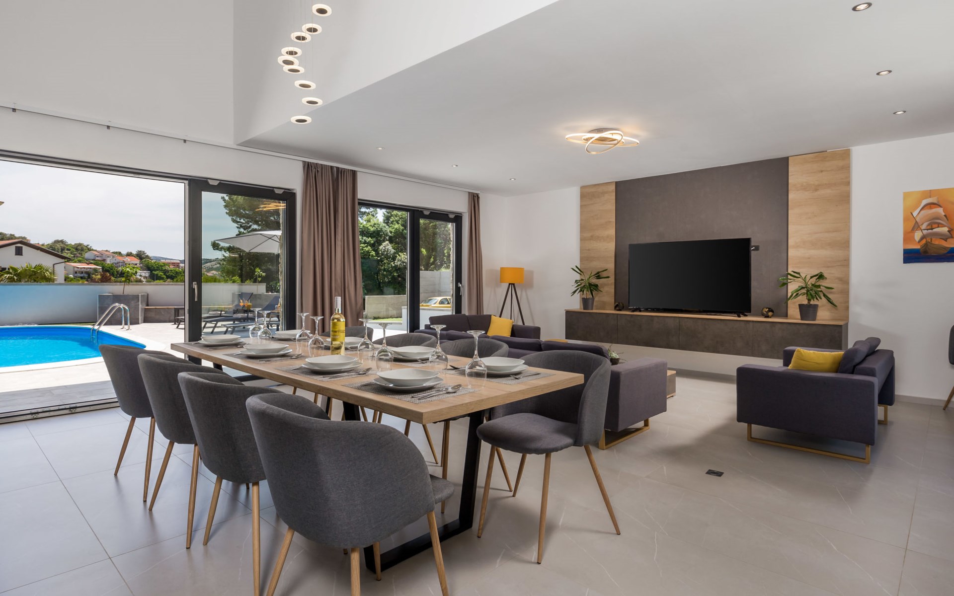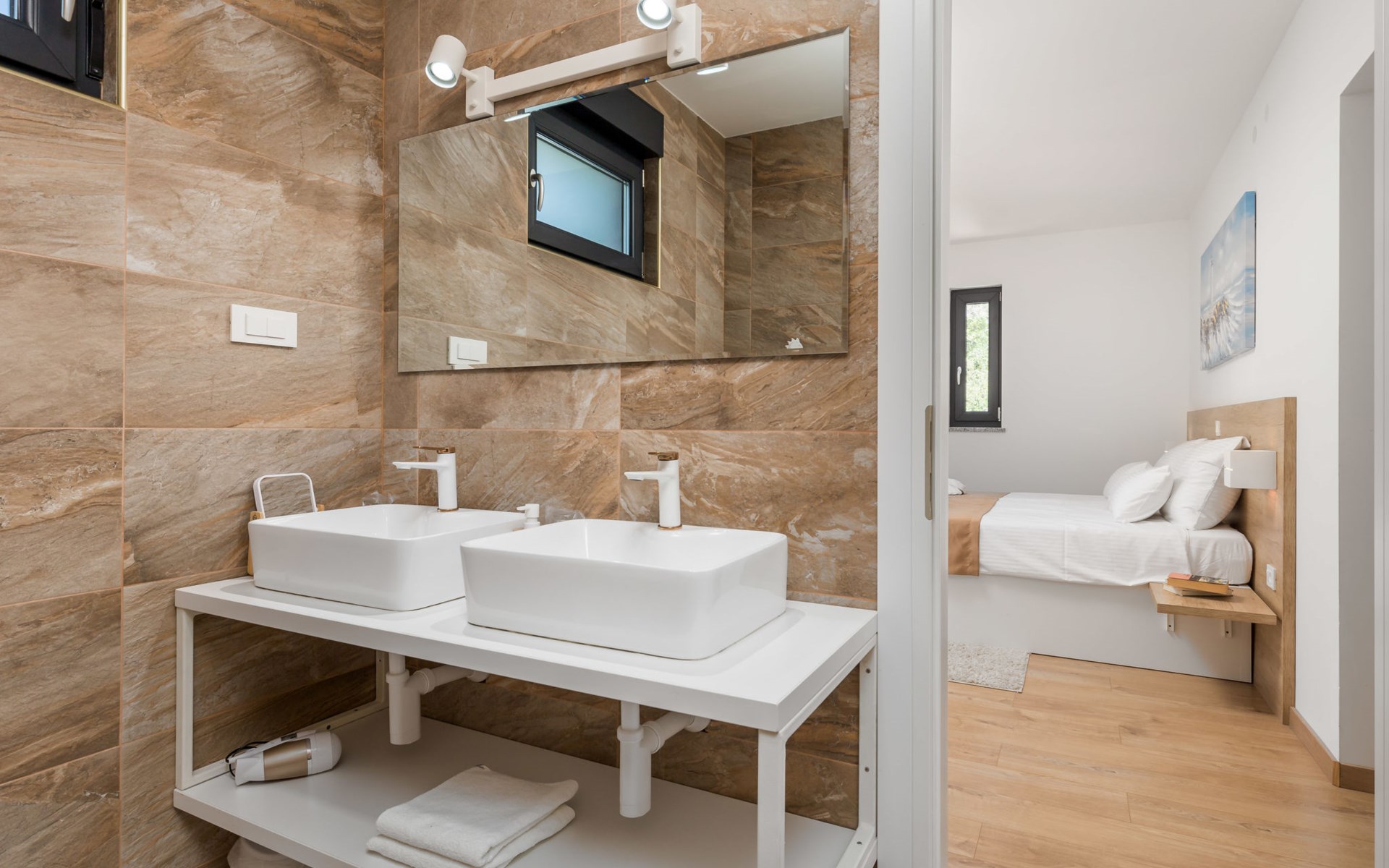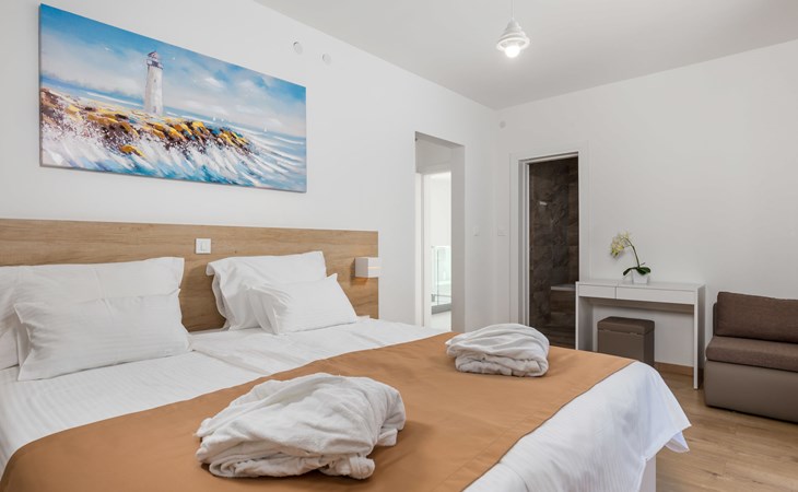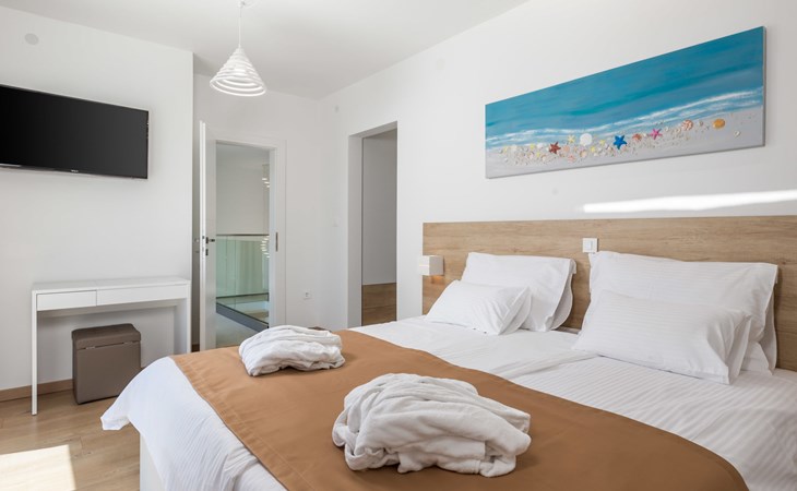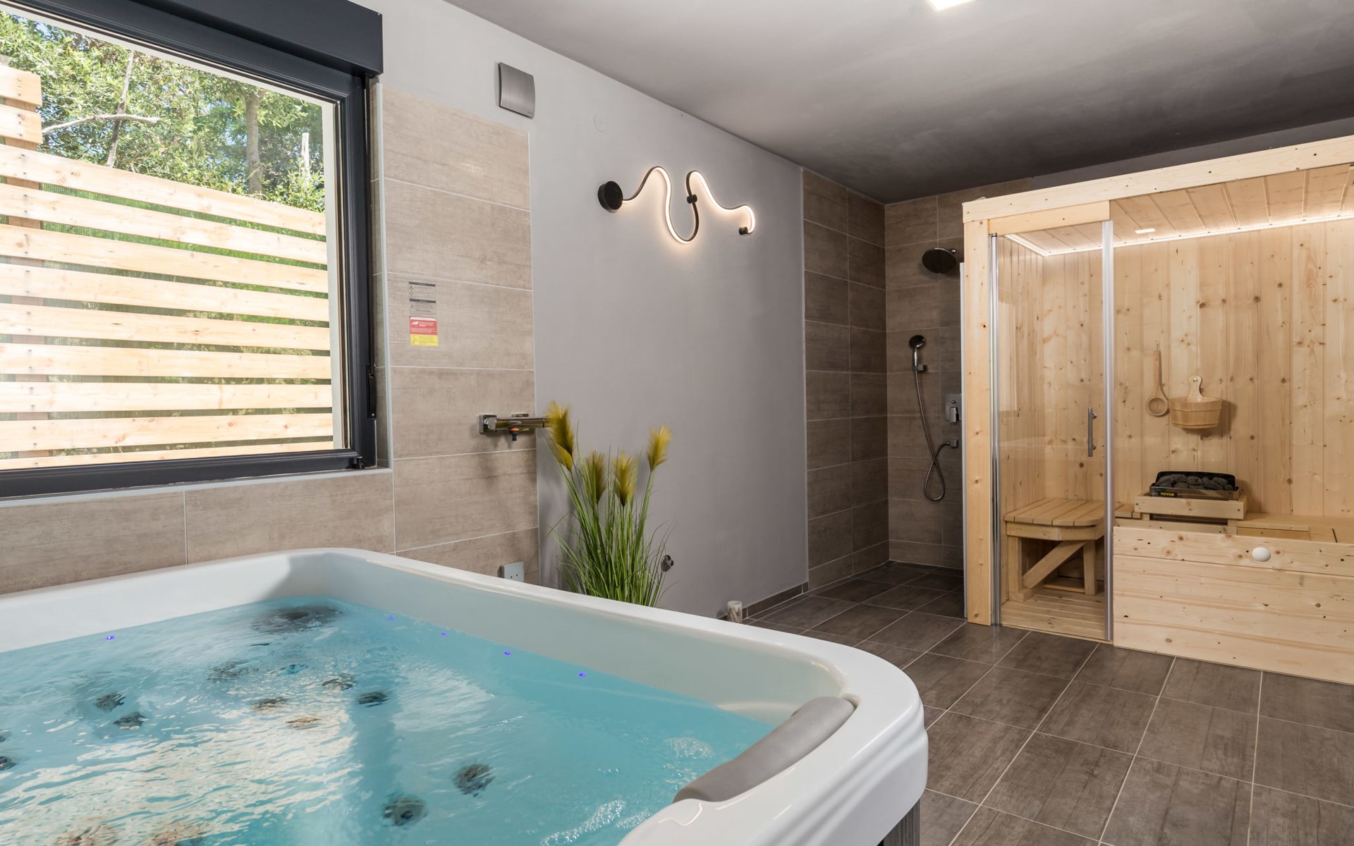 Villa "Pinnidae", van 2 verdiepingen, bouwjaar 2021. 1.3 km van het centrum van Lopar, 14 km van het centrum van Rab, van zee, 200 m van het strand. Voor alleengebruik: terrein 700 m2, openluchtzwembad verwarmd (32 m2, 140 cm diepte, seizoensgebonden beschikbaarheid: 15.Mrt. - 15.Nov.). Buitendouche, patio, barbecue, onderhoud zwembad door de eigenaar/tuinman. In het huis: internetaansluiting, sauna, hot tub, spa centrum, wasmachine. Parkeerplaats (voor 3 auto's) op het terrein. Winkel 700 m, supermarkt 1.5 km, restaurant 100 m, bushalte 550 m, veerboot 200 m, zandstrand 700 m, betonnen strand 200 m. Groepen jongeren uitsluitend op aanvraag. Vliegveld 60 km van het huis. Als er zwembad verwarming nodig is, is het noodzakelijk om dit 7 dagen van te voren aan te geven.