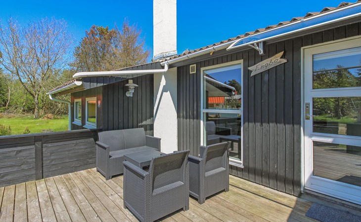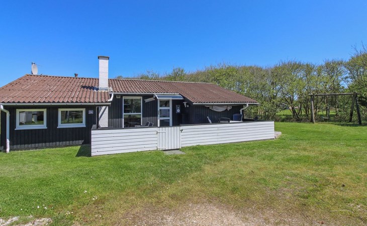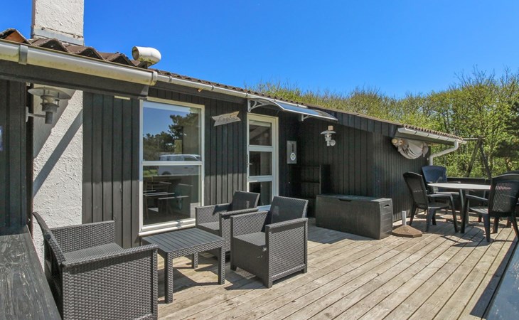 Eengezinswoning, bouwjaar 1985. 400 m van zee. Voor alleengebruik: wild terrein 750 m2. Terras (43 m2), kinderspeelplaats (schommel). In het huis: wasmachine, droger. Parkeerplaats bij het huis. Levensmiddelenwinkel 3.5 km. De eigenaar accepteert geen jeugdgroepen.
