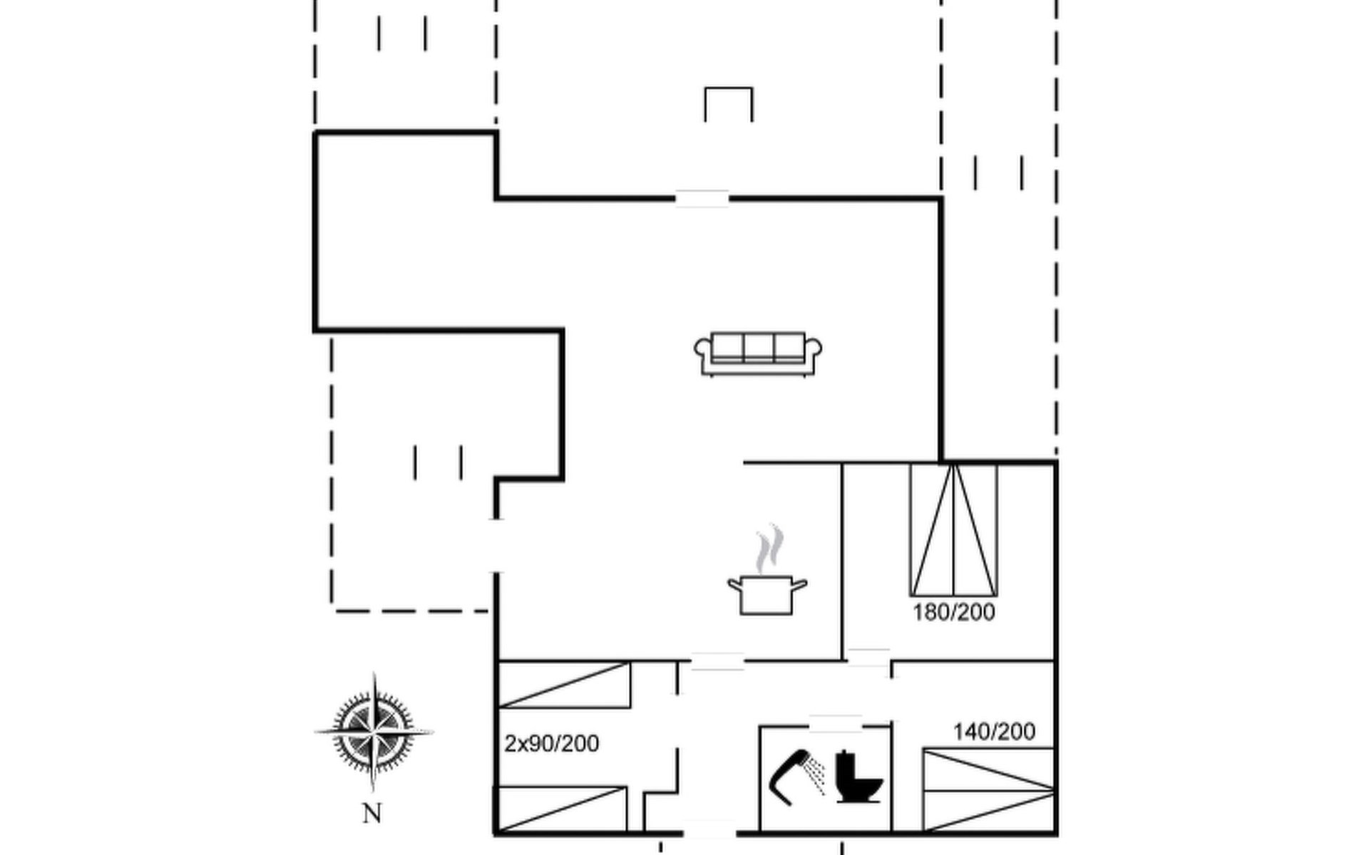 Eengezinswoning, bouwjaar 1986. 800 m van zee. Voor alleengebruik: wild terrein 1.565 m2. Terras (42 m2). In het huis: wasmachine. Parkeerplaats bij het huis. Levensmiddelenwinkel 500 m.