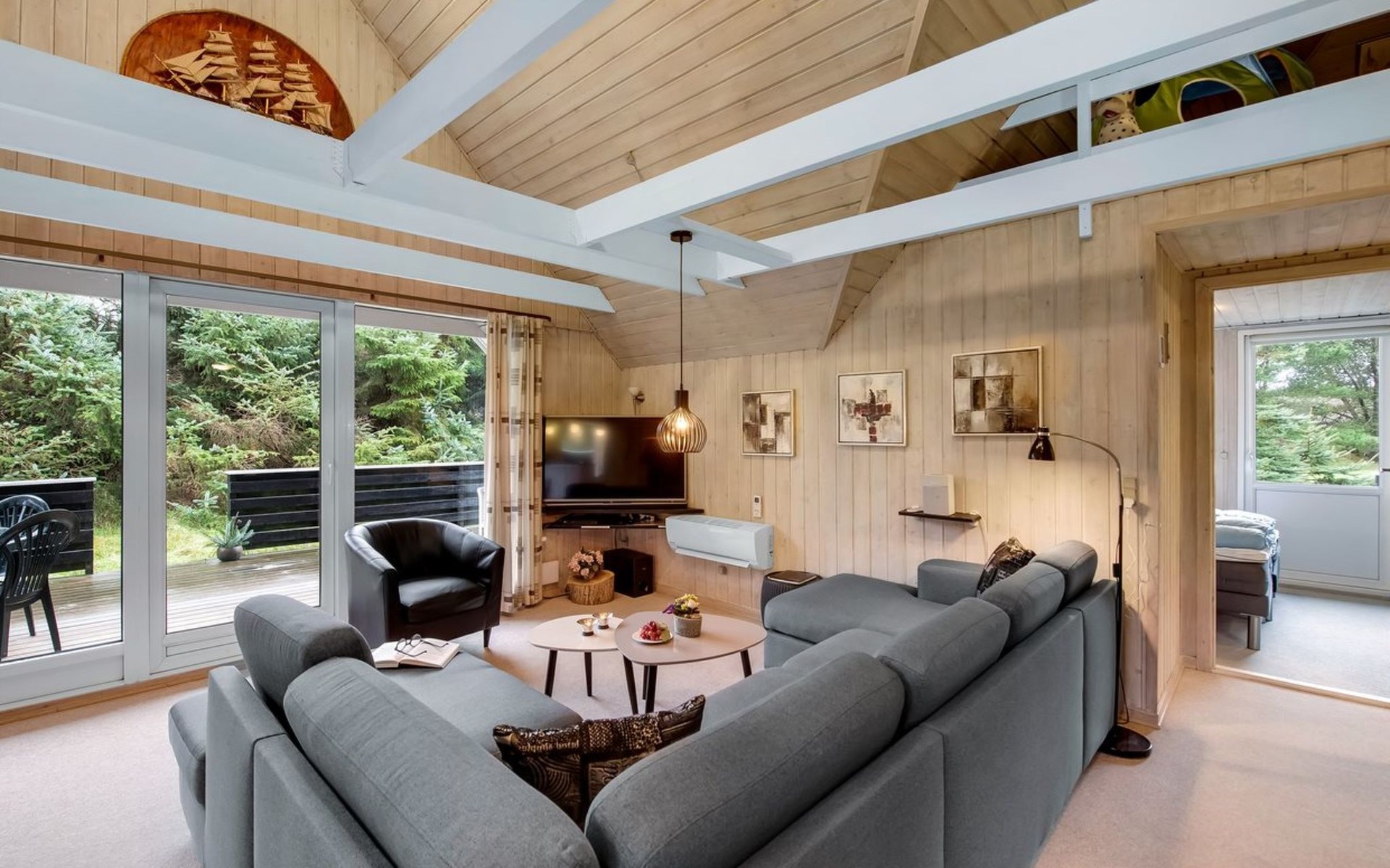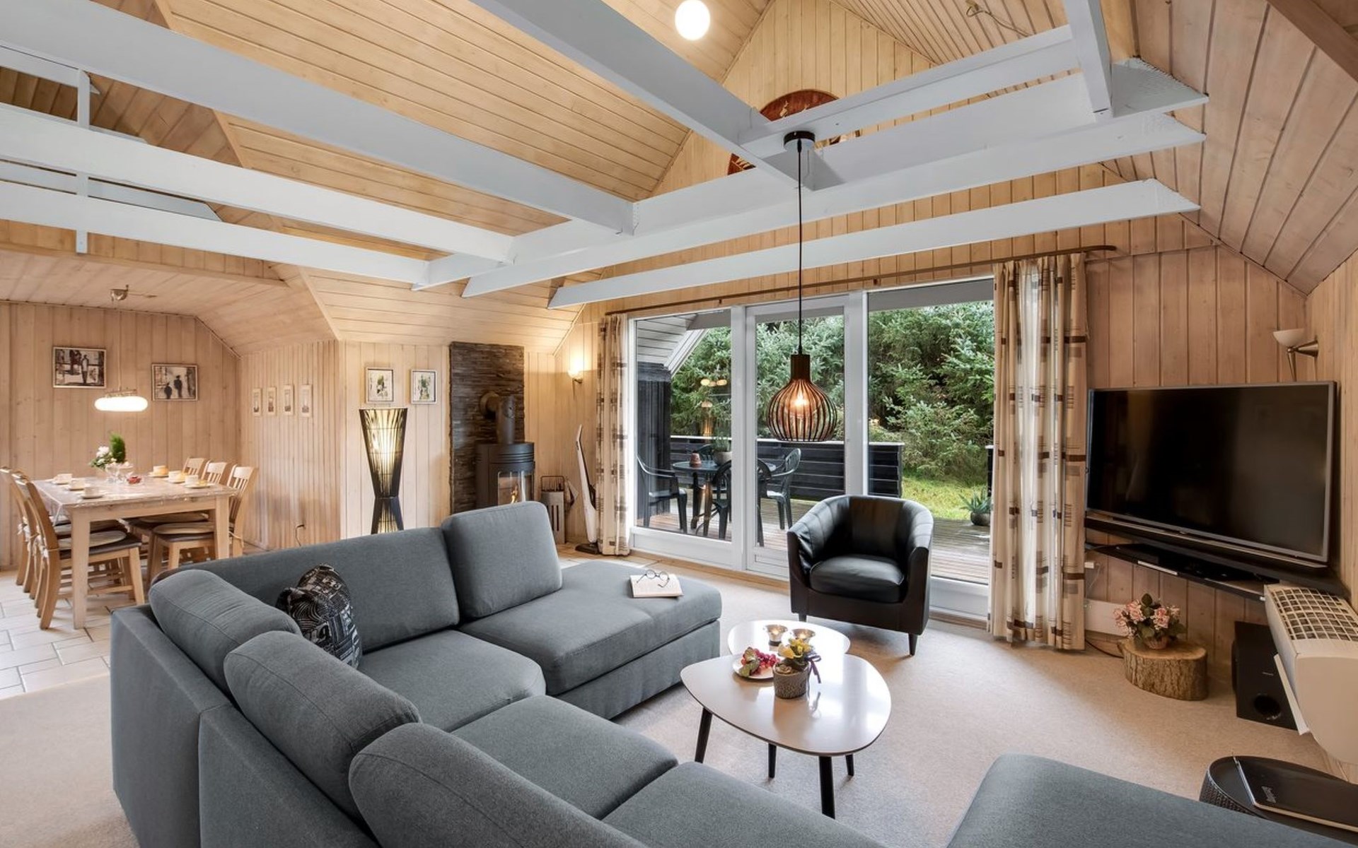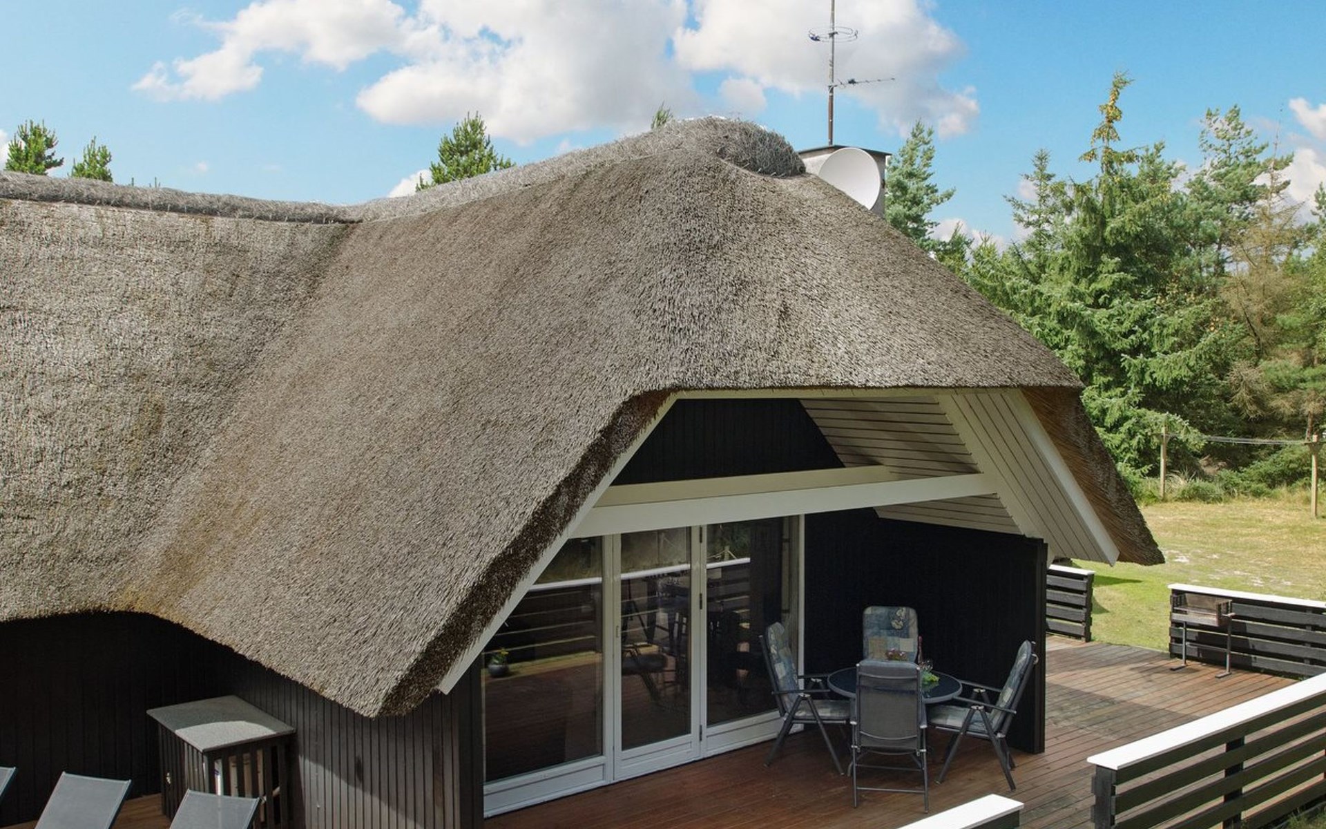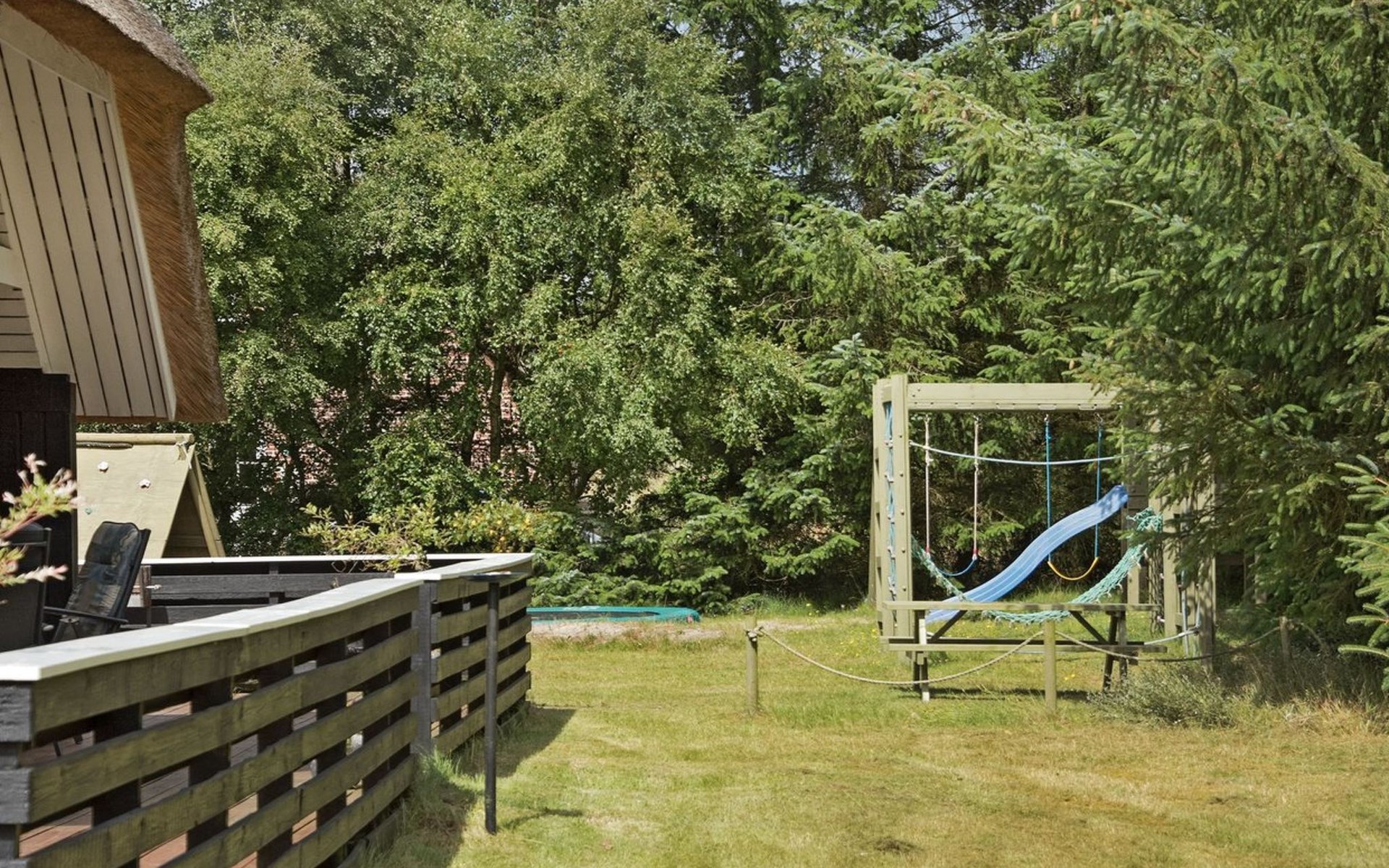 Eengezinswoning, bouwjaar 1985. 1.4 km van zee. Voor alleengebruik: wild terrein 1.580 m2. Terras (60 m2), kinderspeelplaats (glijbaan, schommel). In het huis: sauna, trampoline, wasmachine, droger. Parkeerplaats bij het huis. Oplaadstation. Levensmiddelenwinkel 1.5 km. De eigenaar accepteert geen jeugdgroepen.