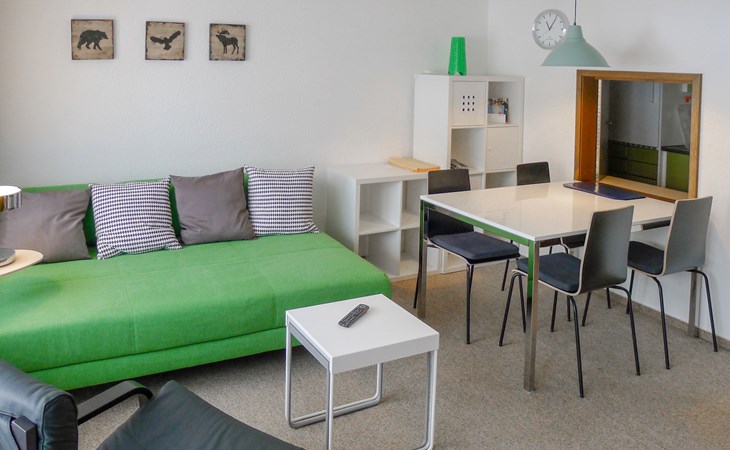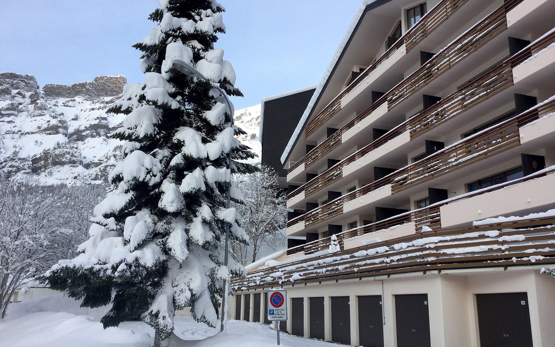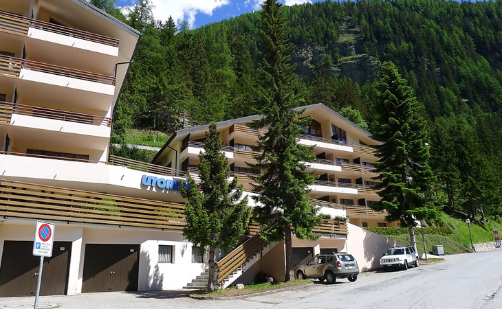 Residentie "Ringstrasse (Utoring)". In de plaats, 500 m van het centrum, 20 m van het skigebied. In het huis: bar, salon, tafeltennis, speelkamer, lift, bergruimte voor fietsen, berging voor ski's, centrale verwarming, wasmachine, droger (extra). Broodjesservice en drankjesservice. Toegangsweg tot aan het huis (bergweg). In de winter sneeuwkettingen aanbevolen, 's winters 4x4 aanbevolen. Parkeerplaats bij het huis, Openbare parkeergarage op 50 m, extra. Levensmiddelenwinkel, supermarkt, restaurant 500 m, bushalte "Leukerbad, Bristol" 250 m, openluchtzwembad 500 m, thermaalbad 300 m. Tennis 500 m, kabelbaan, ski faciliteiten, skipisten 20 m, rodelbaan, langlaufloipe 500 m, ijsbaan 1 km. Bekende skigebieden kunnen gemakkelijk worden bereikt: Leukerbad Torrent. Wandelgebied Gemmi 1 km. Het huis staat op een beboste helling op het zuidwesten, direct naast de Torrent-kabelbanen. Slechts een korte trappenweg scheidt het huis van het dalstation. Parkeermogelijkheid: in de winter parkeerplaats CHF35.00/week, garage CHF 70.00/week, in de zomer parkeerplaats gratis, garage CHF 35.00/week.