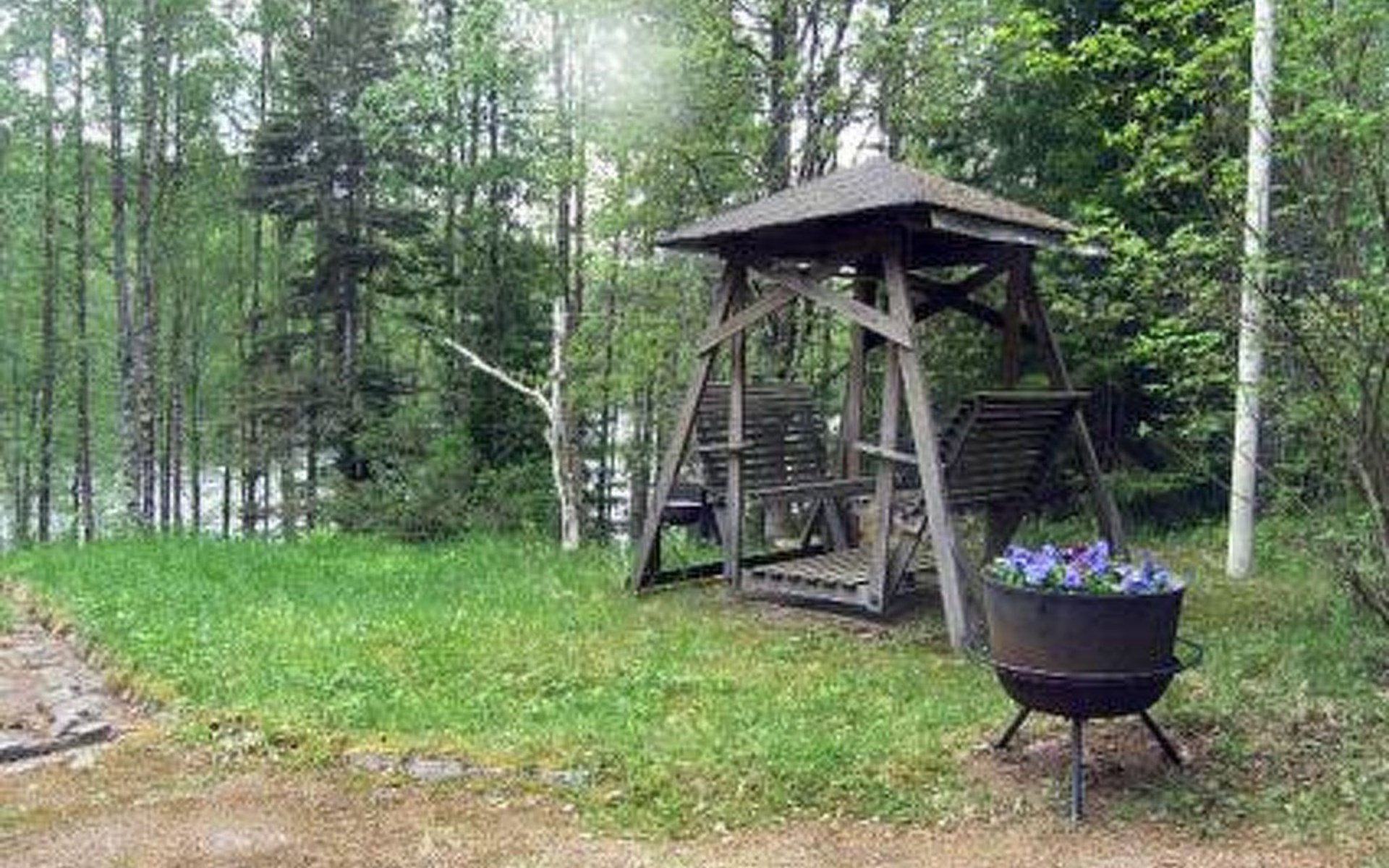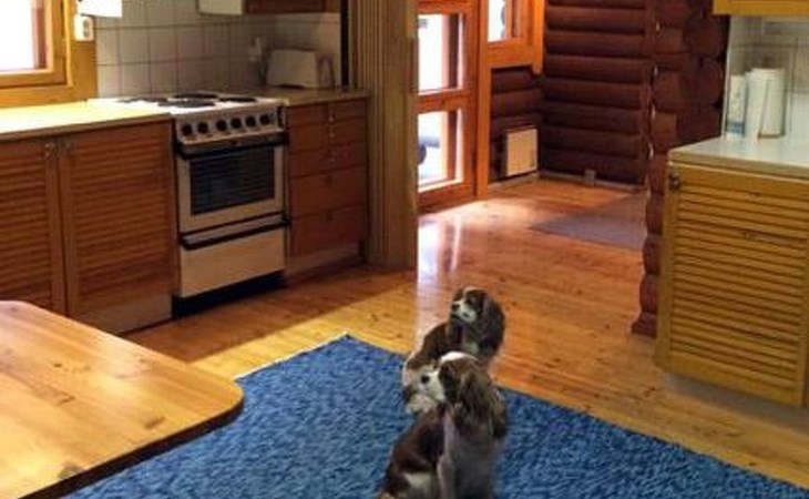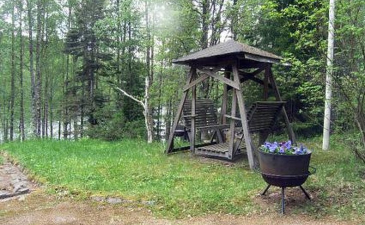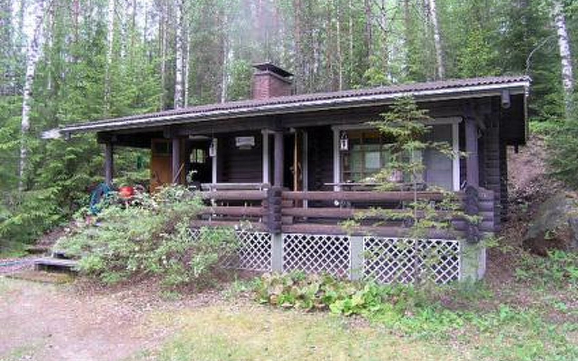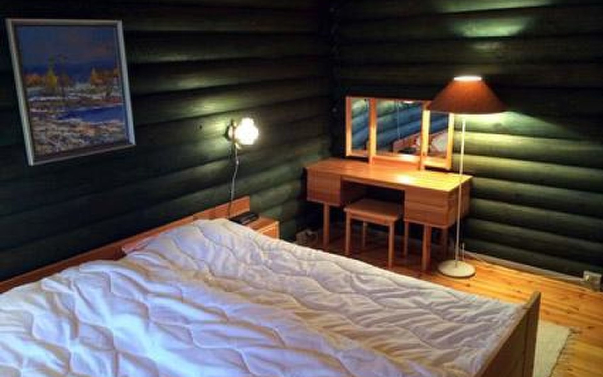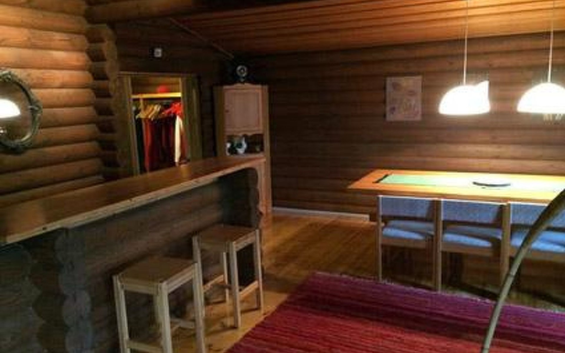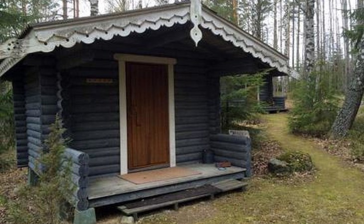 Round log cottage 1979, kitchen, living/dining room, bedroom with 2 beds, bedroom with a double bed, dressing room, bathroom, 2 showers, sauna, open terrace.