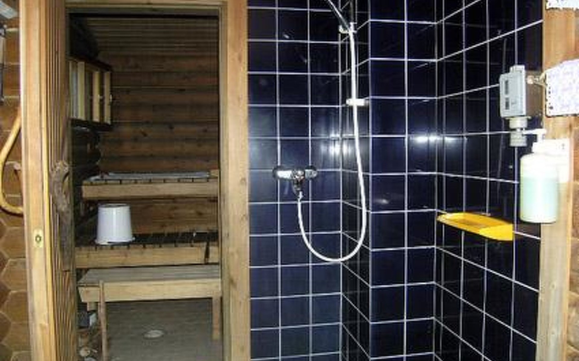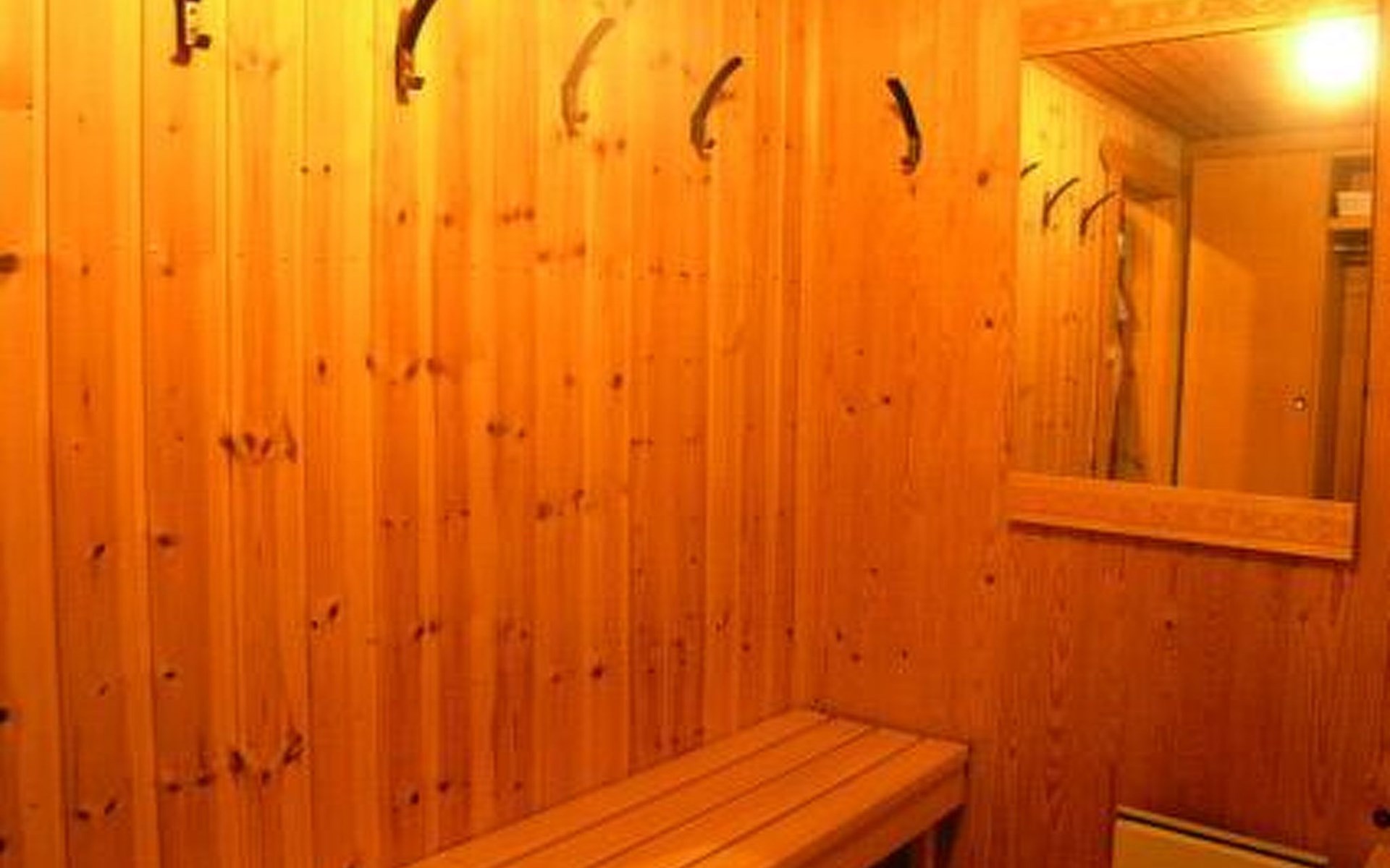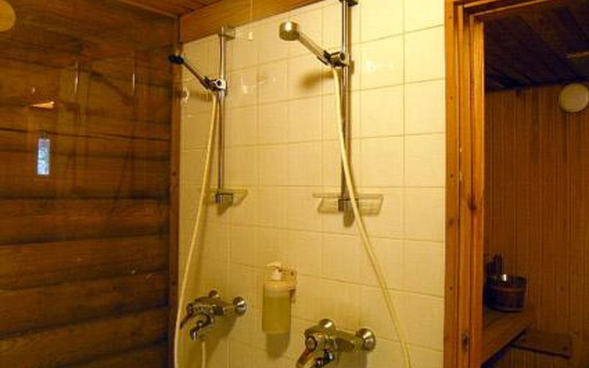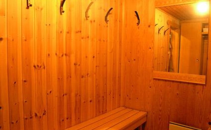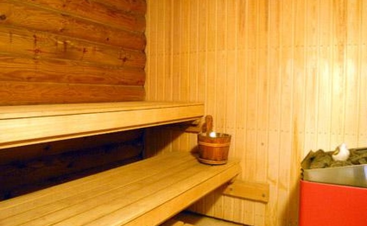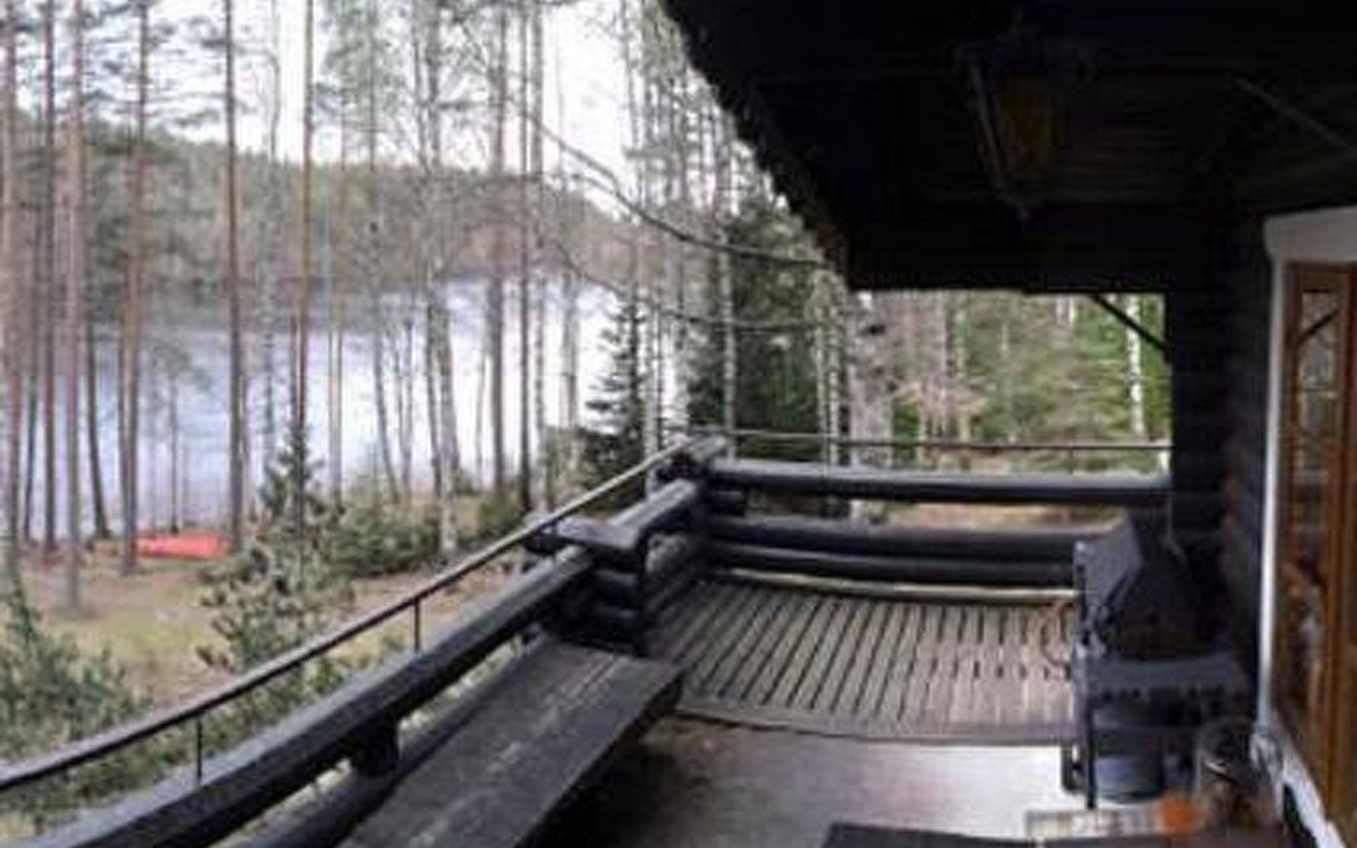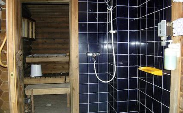 Lakeside sauna with living room with 2 beds, bathroom with 1 shower, sauna.