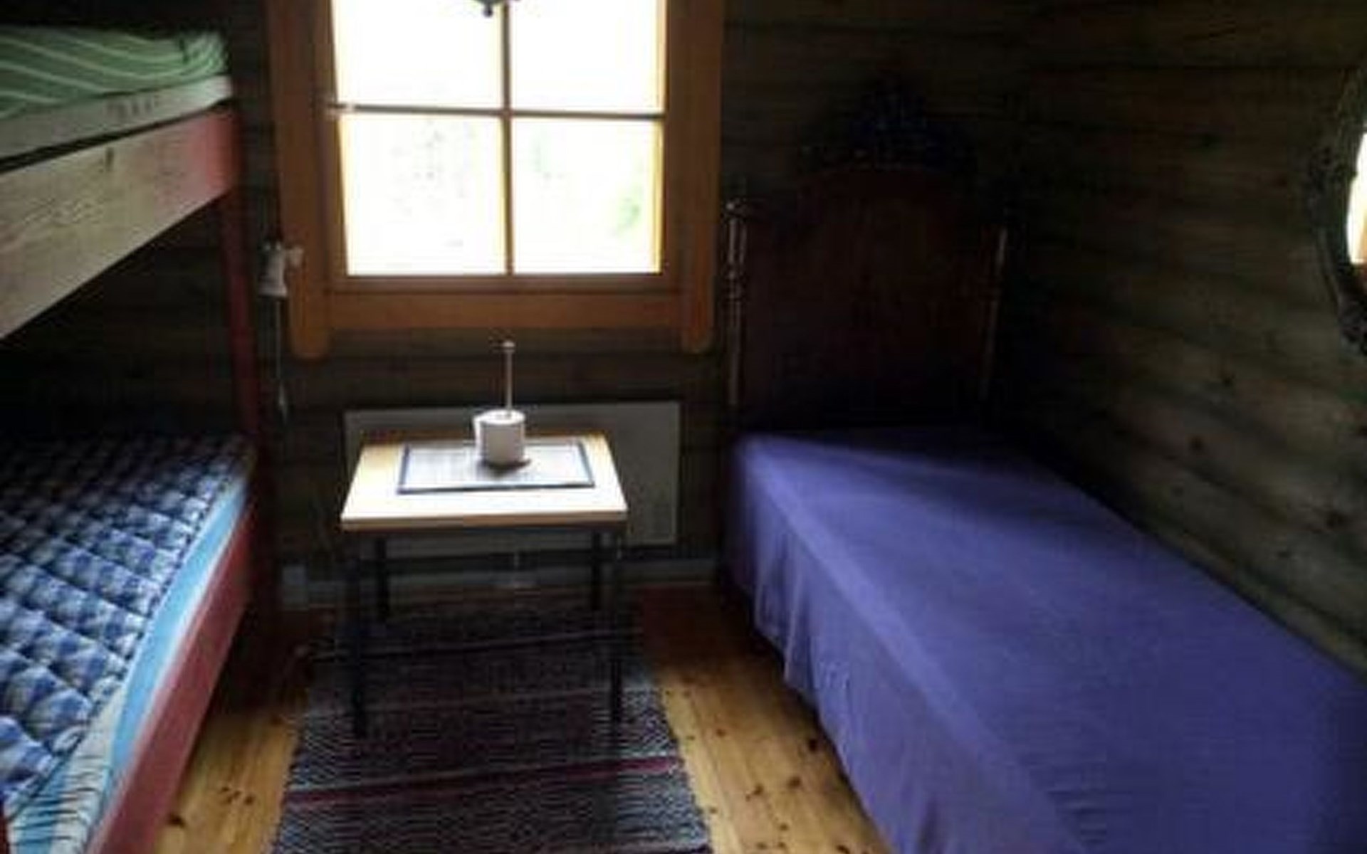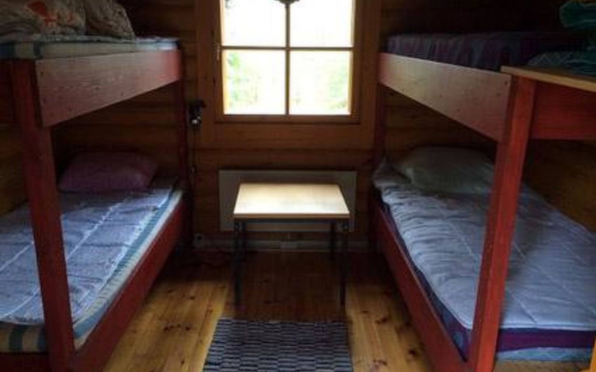 Sleeping hut, with a bunk bed and a bed. Sleeping hut with 2 bunk beds (beds are under-sized, suitable for children).