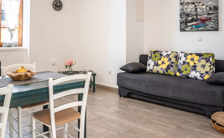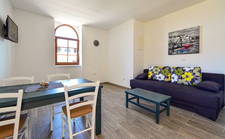 Appartementencomplex "Val", gerenoveerd in 2017. In het centrum van Sveti Juraj, zonnige ligging, 30 m van zee, 30 m van het strand. In het huis: internetaansluiting. Openbare parkeerplaatsen. Winkel 200 m, restaurant 20 m, bushalte 300 m, kiezelstrand 30 m.
